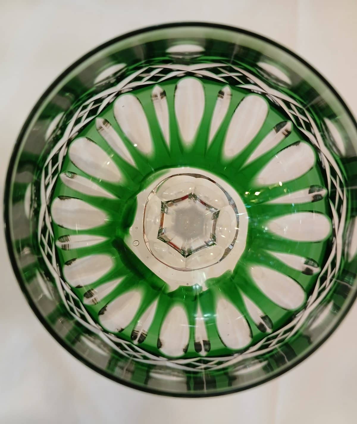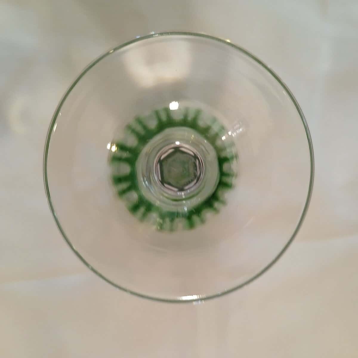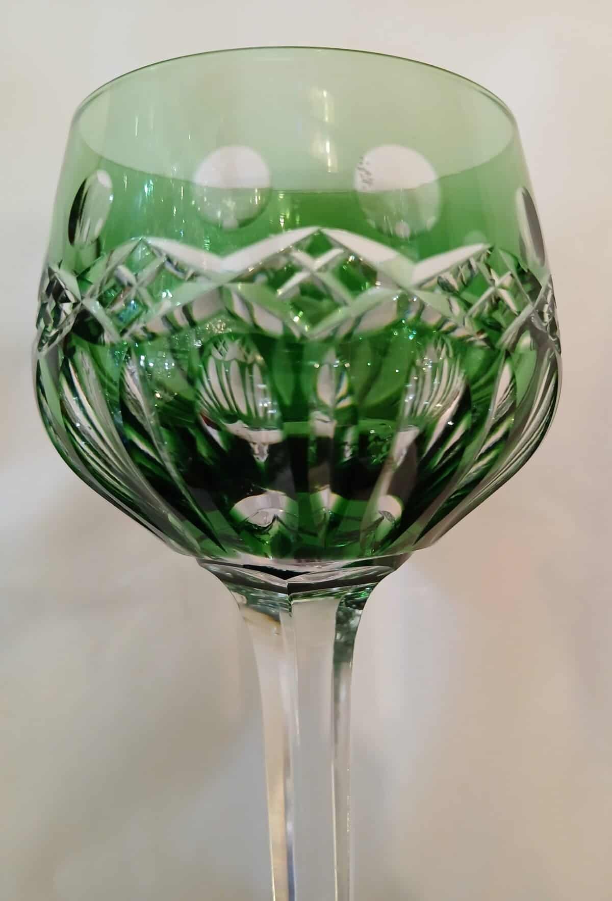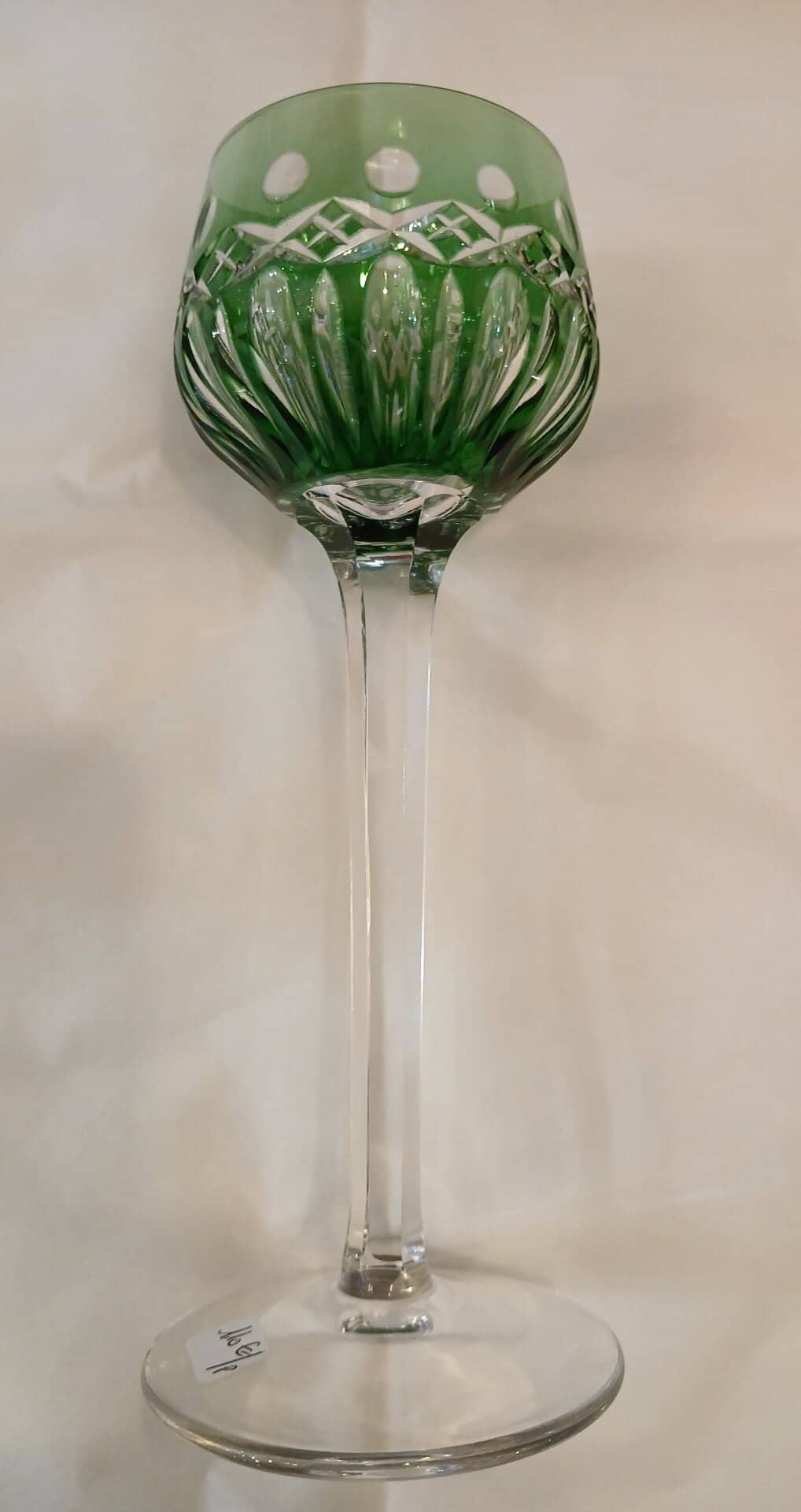 Grand verre roemer de la cristallerie Saint Louis signé sous le pied. H : 20 cm. Diamètre du buvant 6,5 cm. Diamètre du pied: 8 cm. Déjà présent dans le catalogue de 1948 avec des petites variantes. prix 100 €