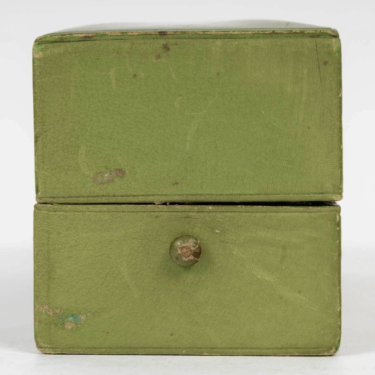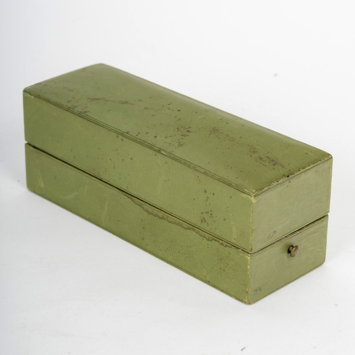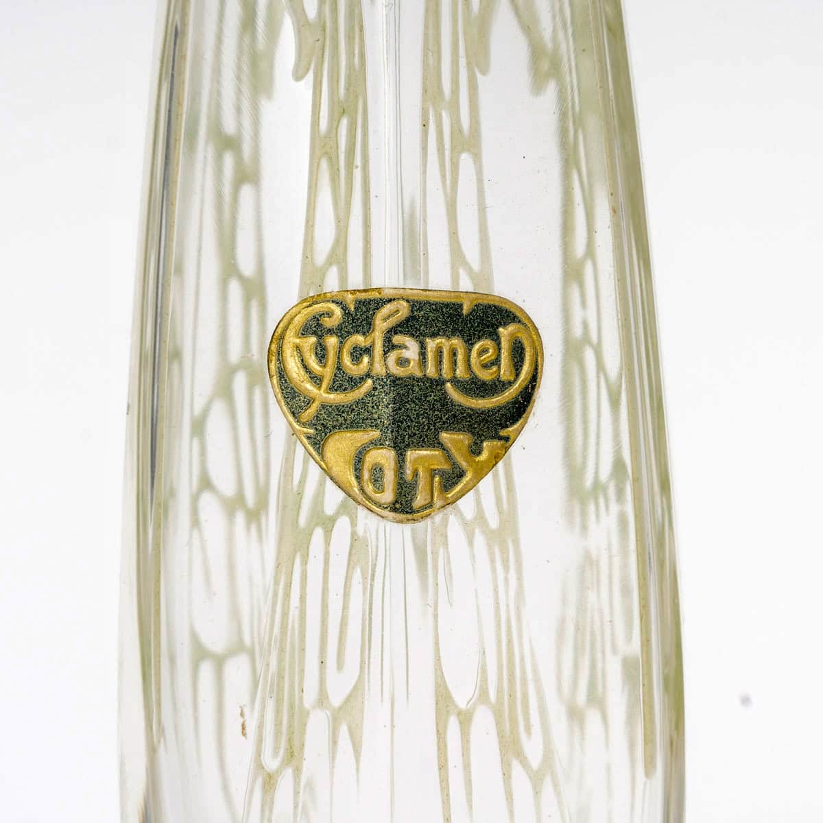Flacon « Cyclamen » en verre blanc patiné vert clair de René Lalique créé en 1909 pour Coty.