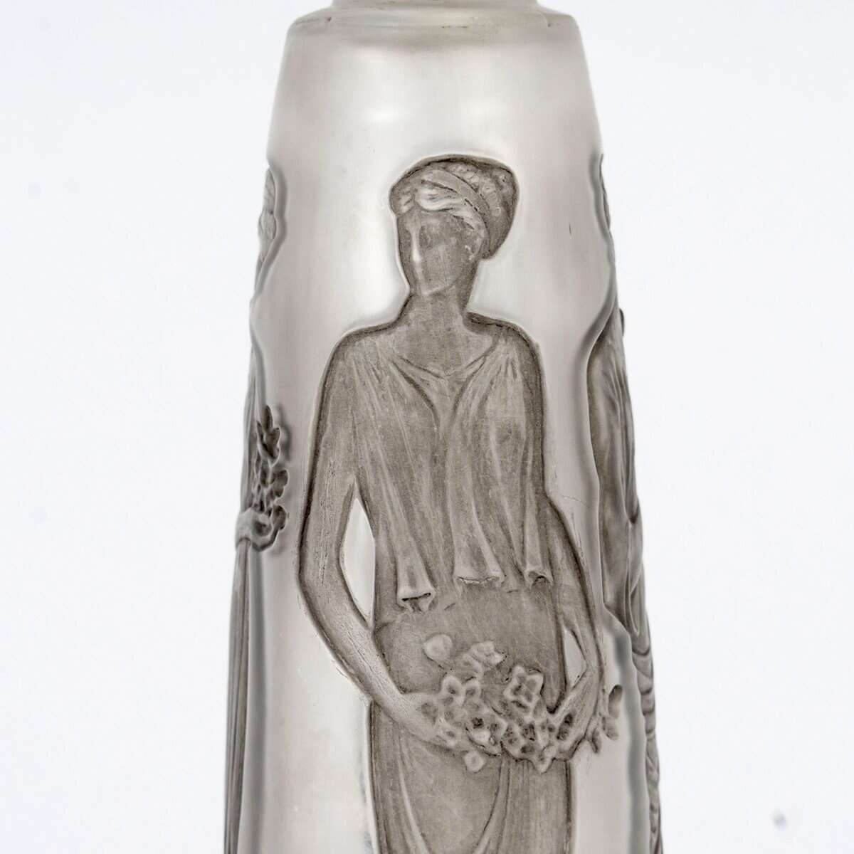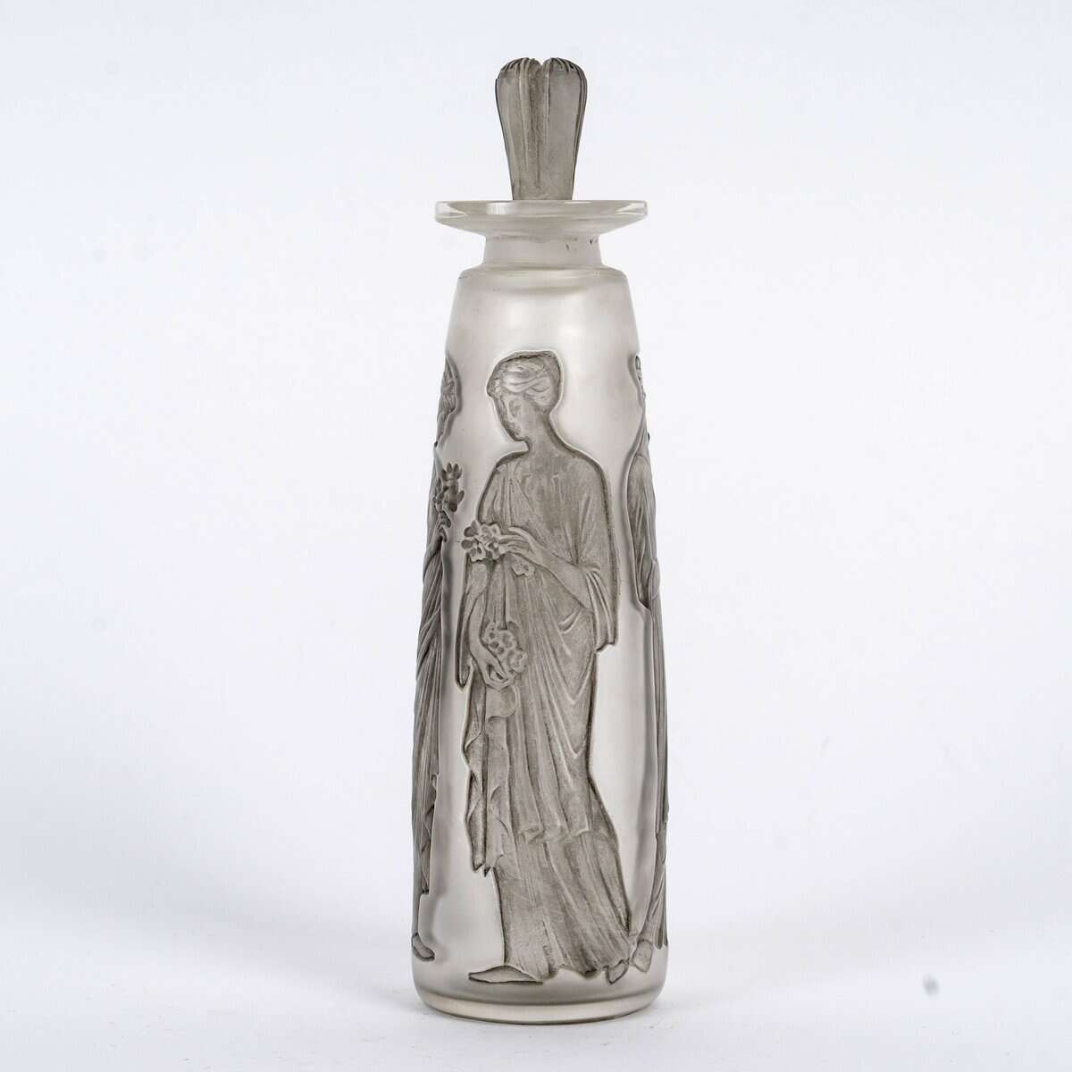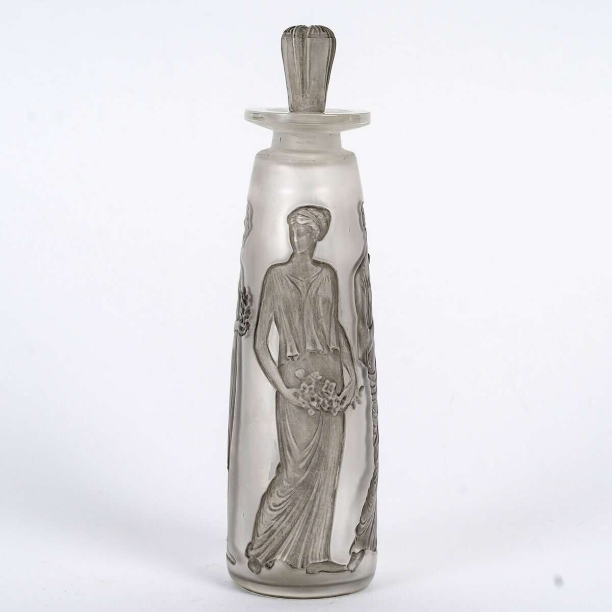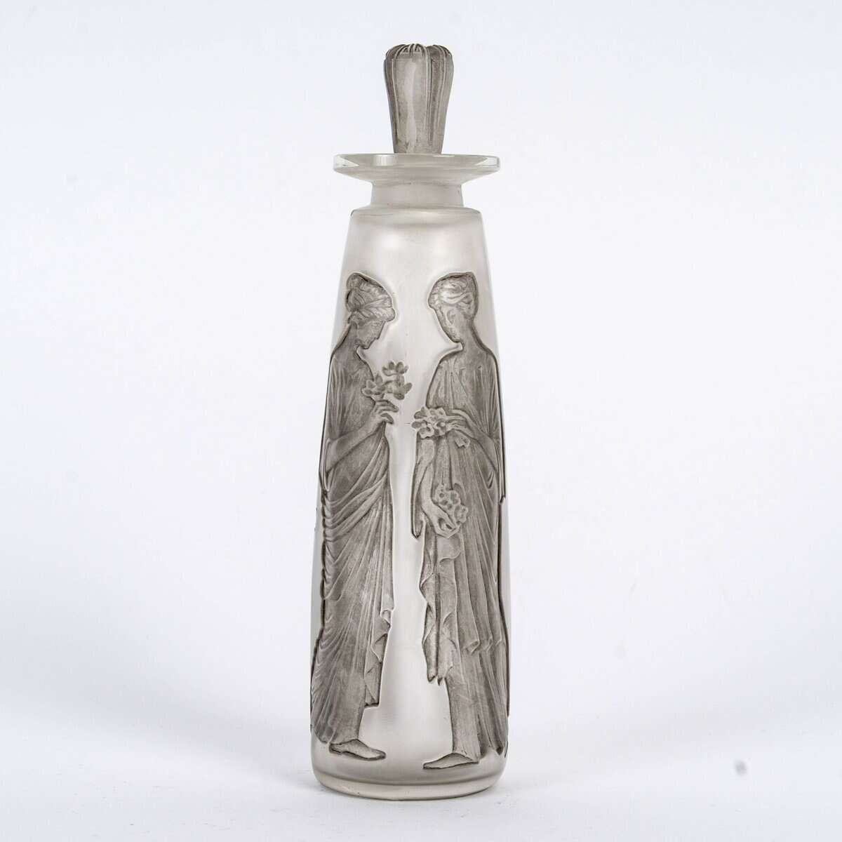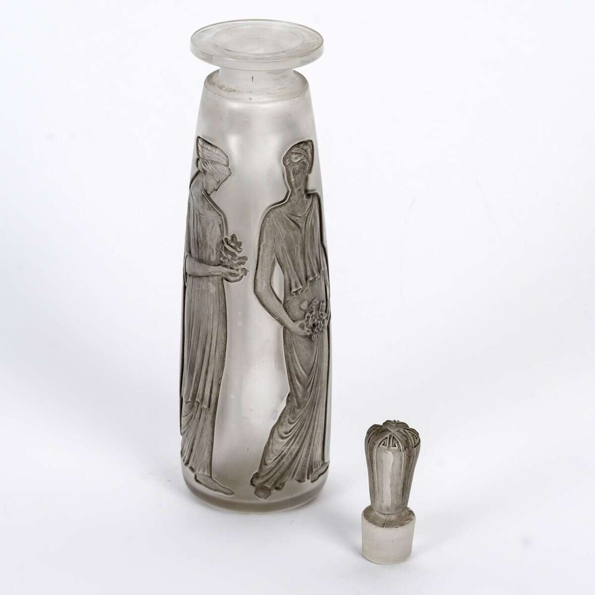 Flacon à Parfum « Ambre Antique » en vere blanc patiné gris de René Lalique créé en 1910 pour Coty.