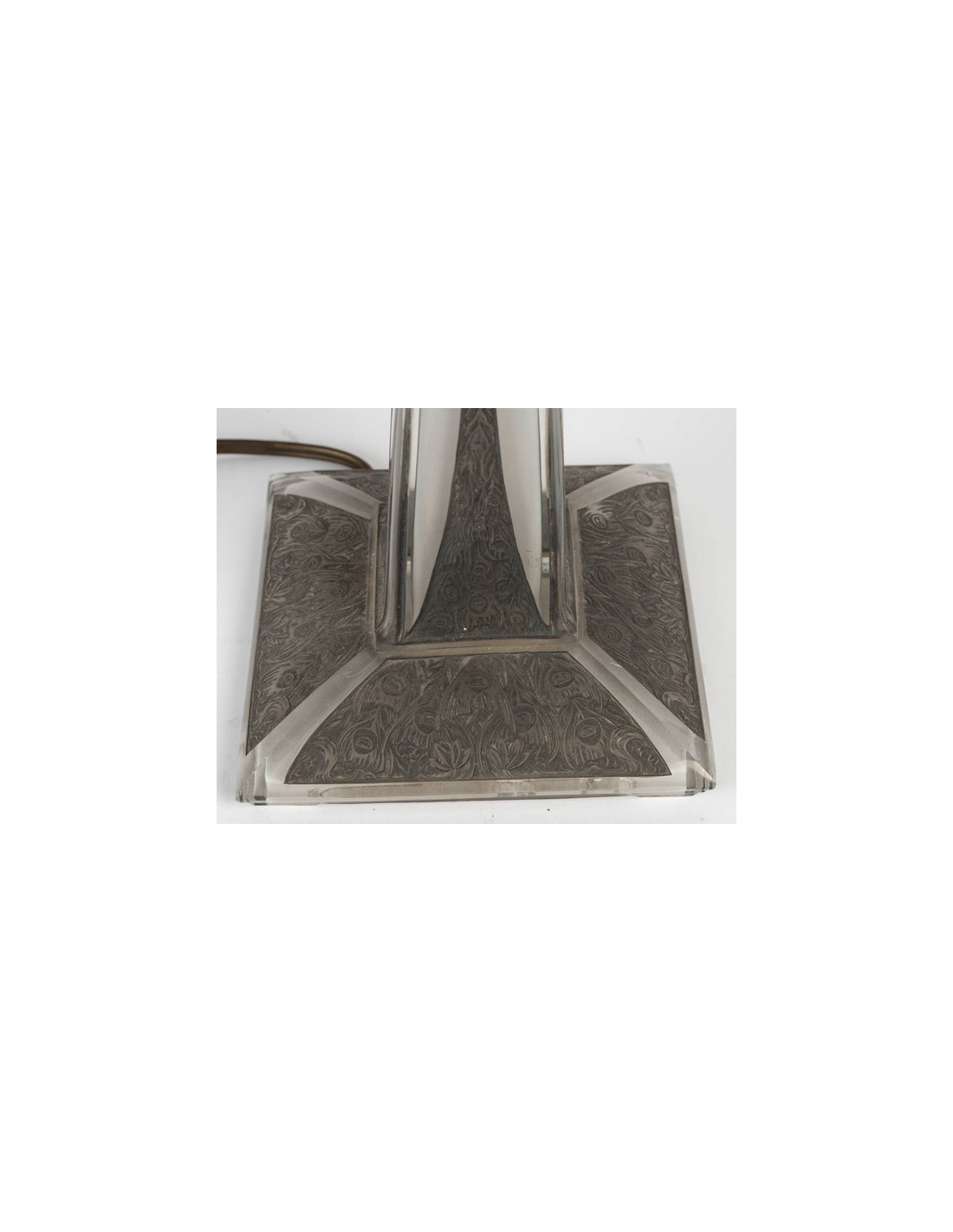 René Lalique (1860-1945), lampe « paons» en verre moulé-pressé patiné et gravé, monture en bronze,