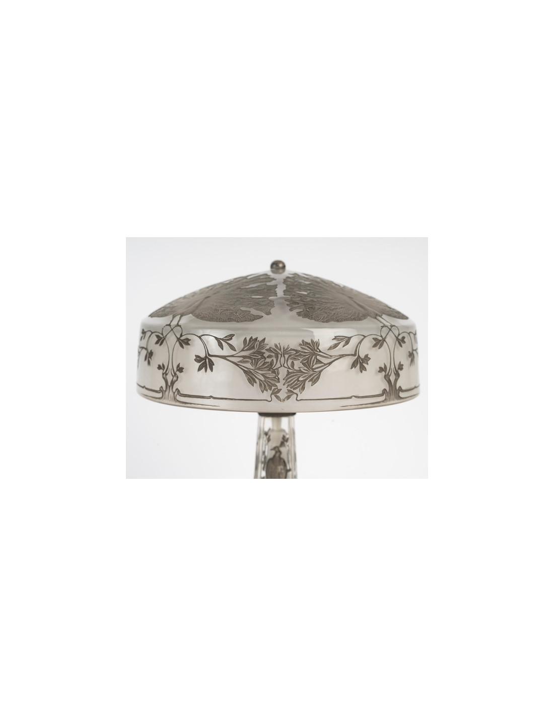 En 1910, René Lalique crée la lampe « Paons » en verre moulé-pressé patiné. Celle-ci présente l’oiseau sous différentes formes que cela soit sur l’abat-jour faisant la roue ou perché sur le pied de la lampe.