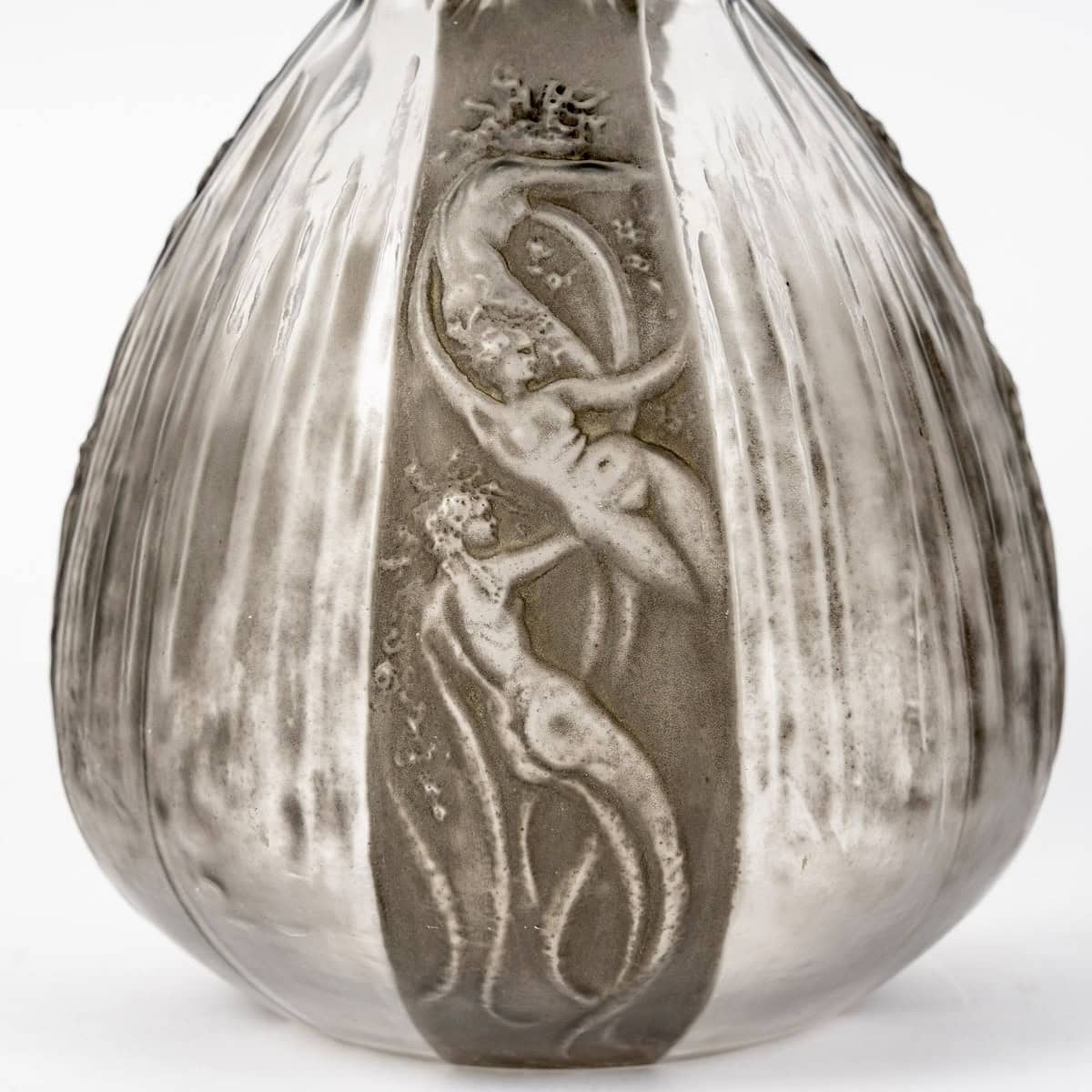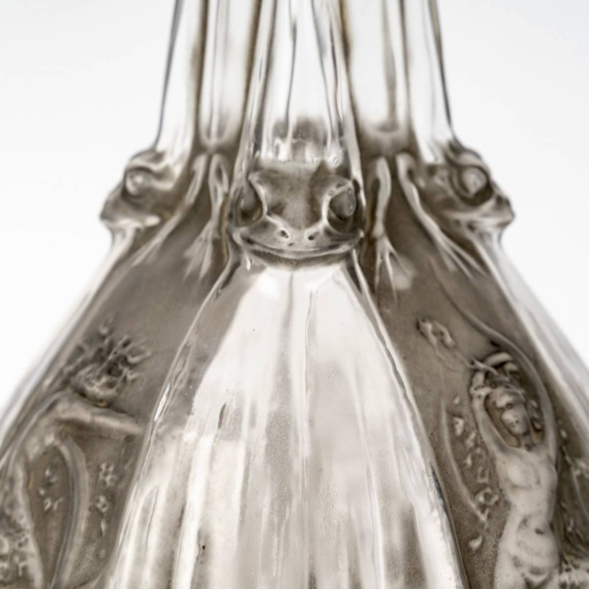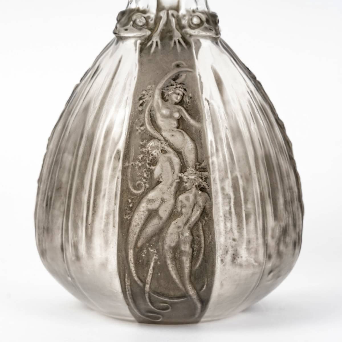 Carafe « Sirènes et Grenouilles » en verre blanc patiné gris de René Lalique créé en 1911.