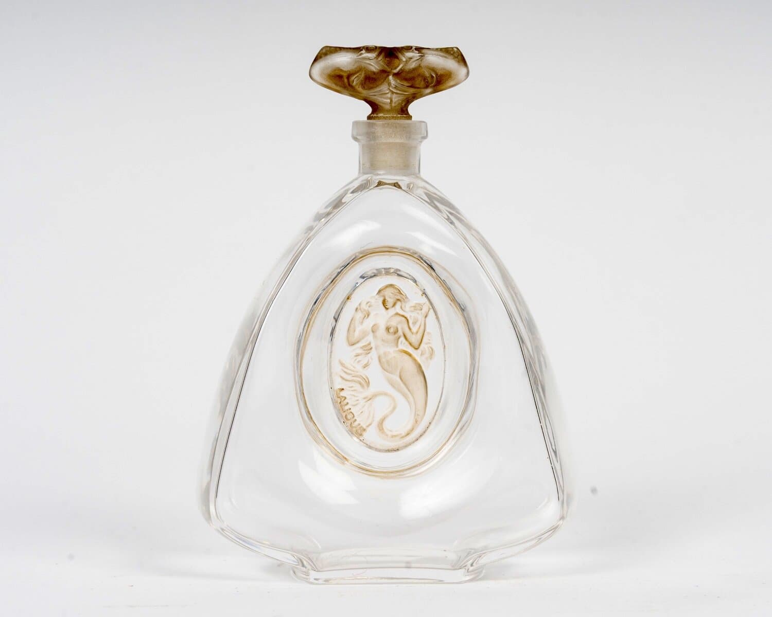 1912 René Lalique – Flacon La Sirène Verre Blanc Patiné Sépia pour Burmann