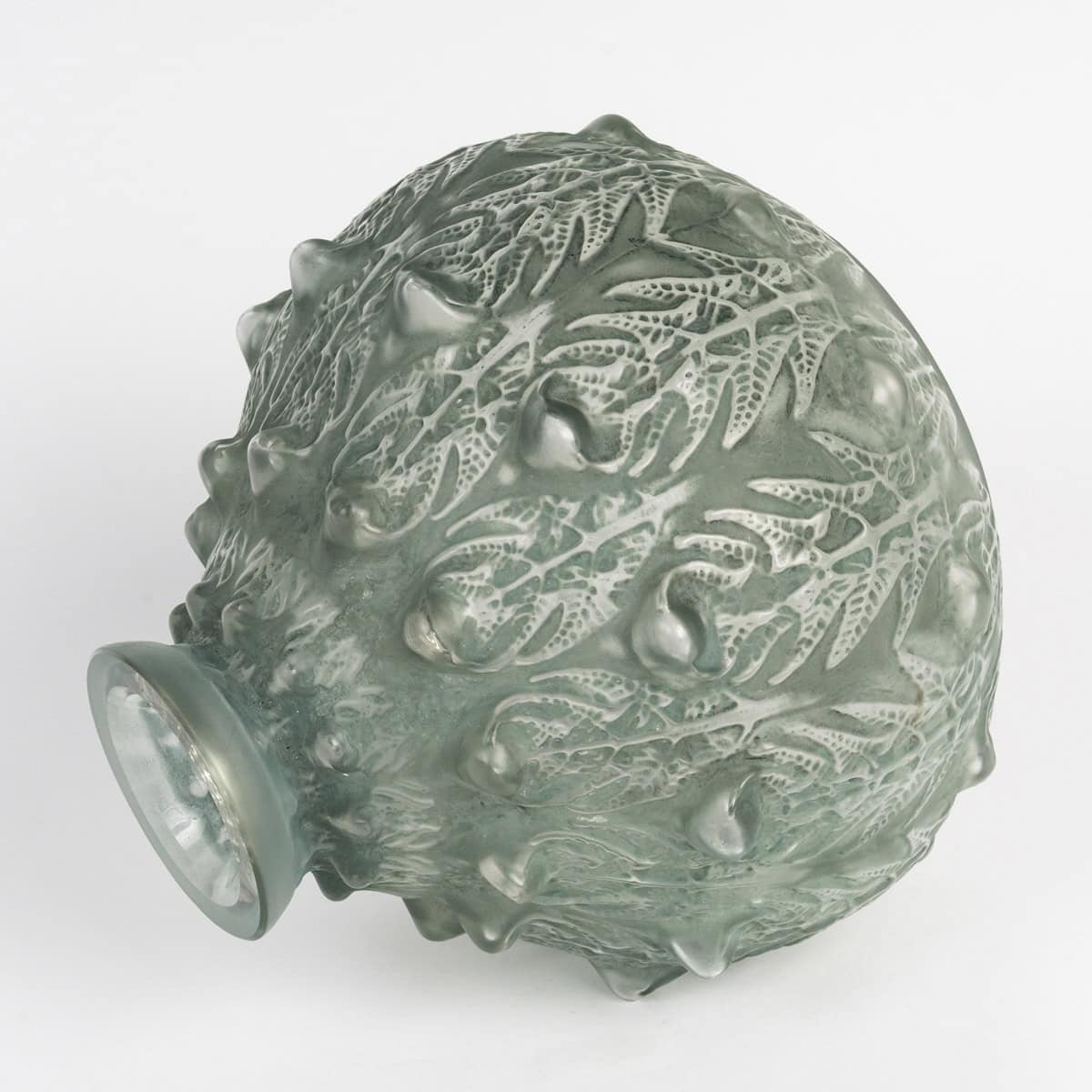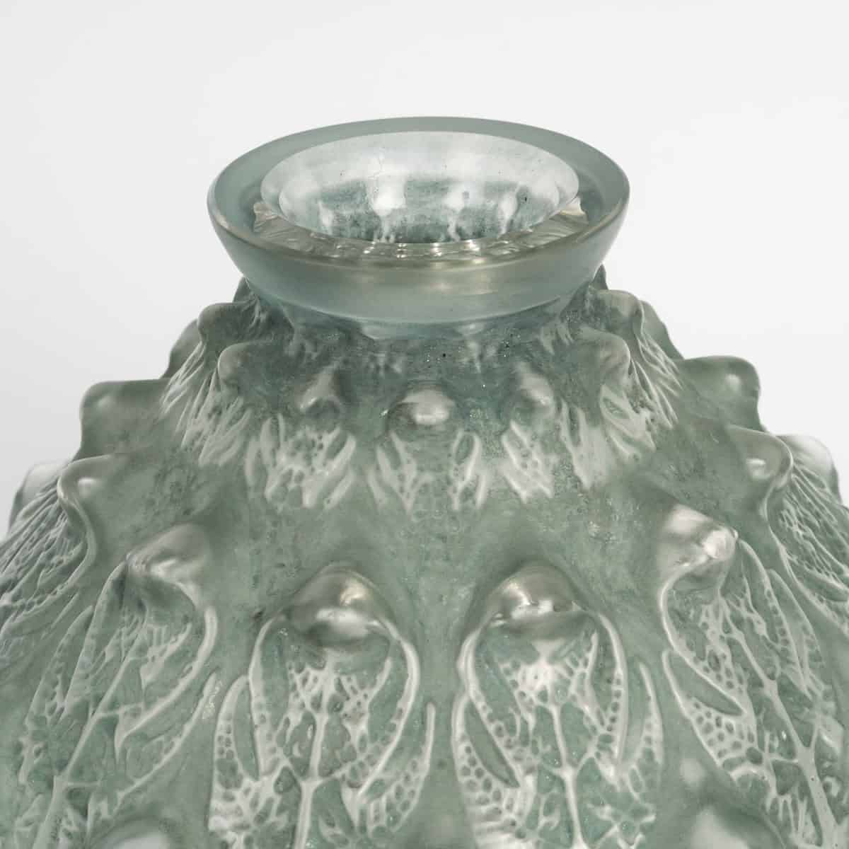 Vase « Fougères » en verre blanc patiné vert de René Lalique créé en 1912.