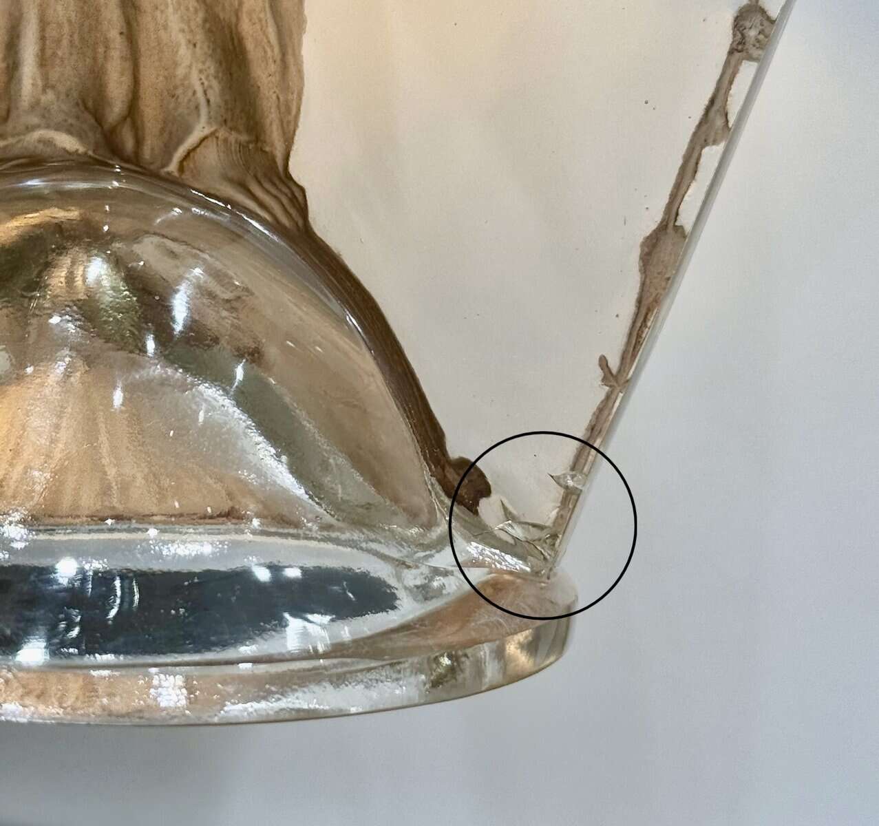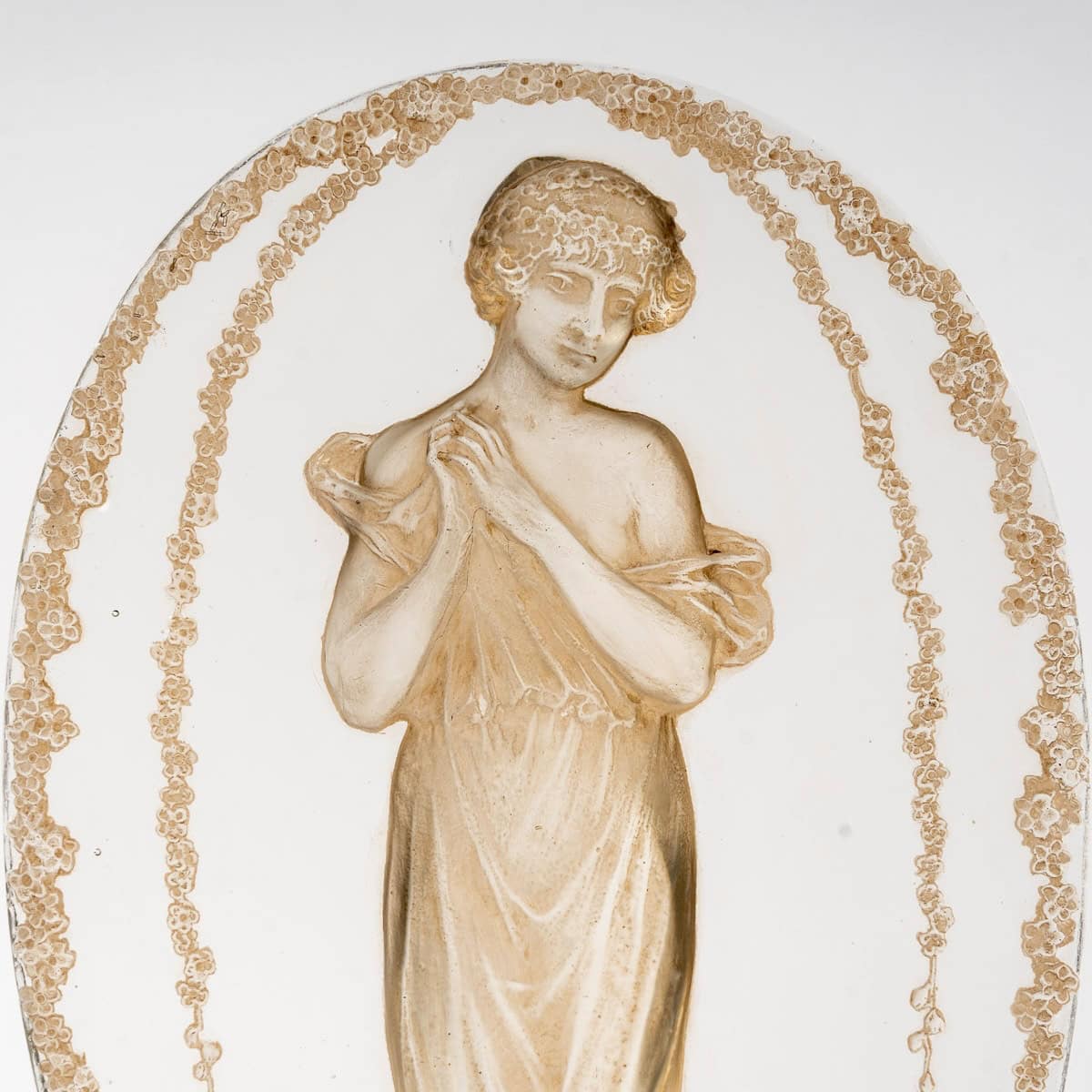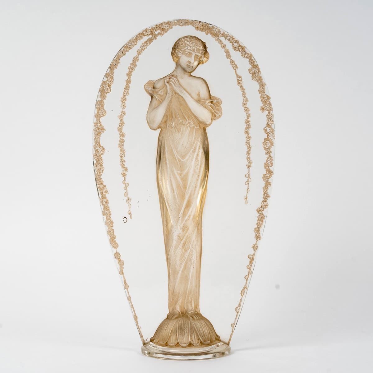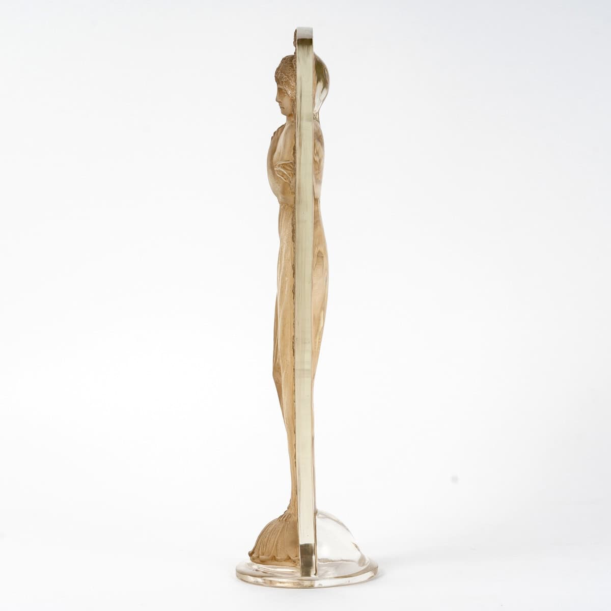 1919 René Lalique – Statuette Grande Ovale Tête Penchée Verre Blanc Patiné Sépia