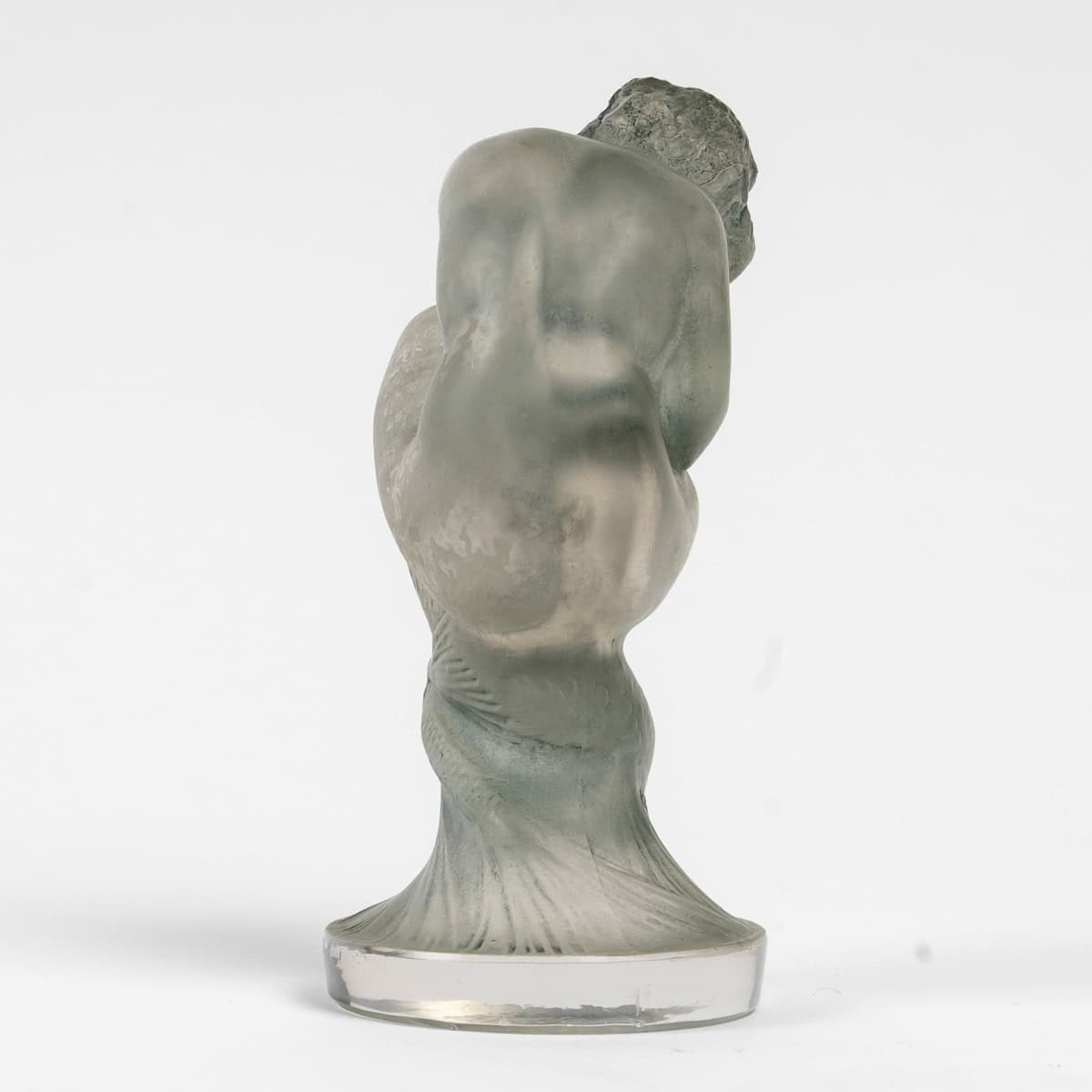 Mascotte Automobile Statuette « Sirène » en verre blanc patiné bleu gris de René Lalique créée en 1920.