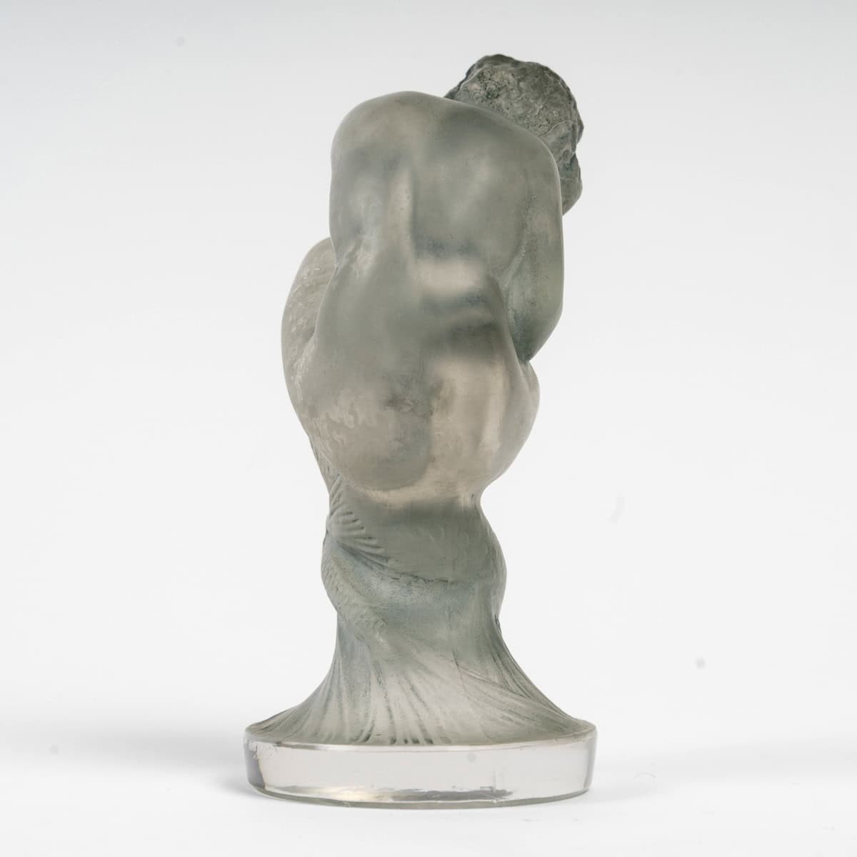 1920 René Lalique – Mascotte Automobile Statuette Sirène Verre Blanc Patiné Bleu Gris
