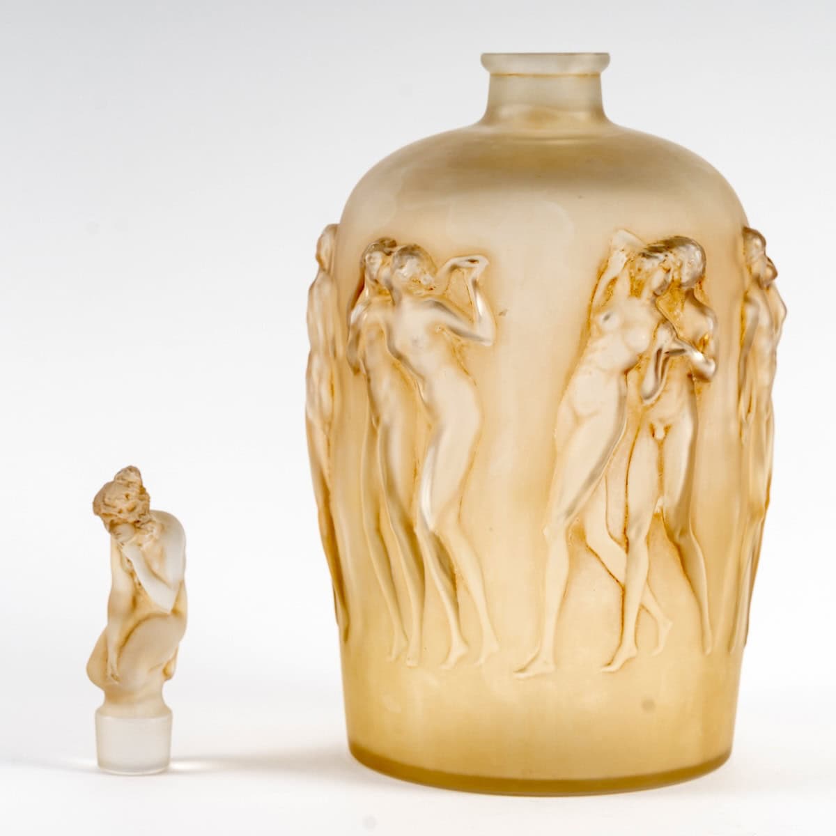 1920 René Lalique – Vase 12 Douze Figurines avec Bouchon Verre Blanc Patiné Sépia
