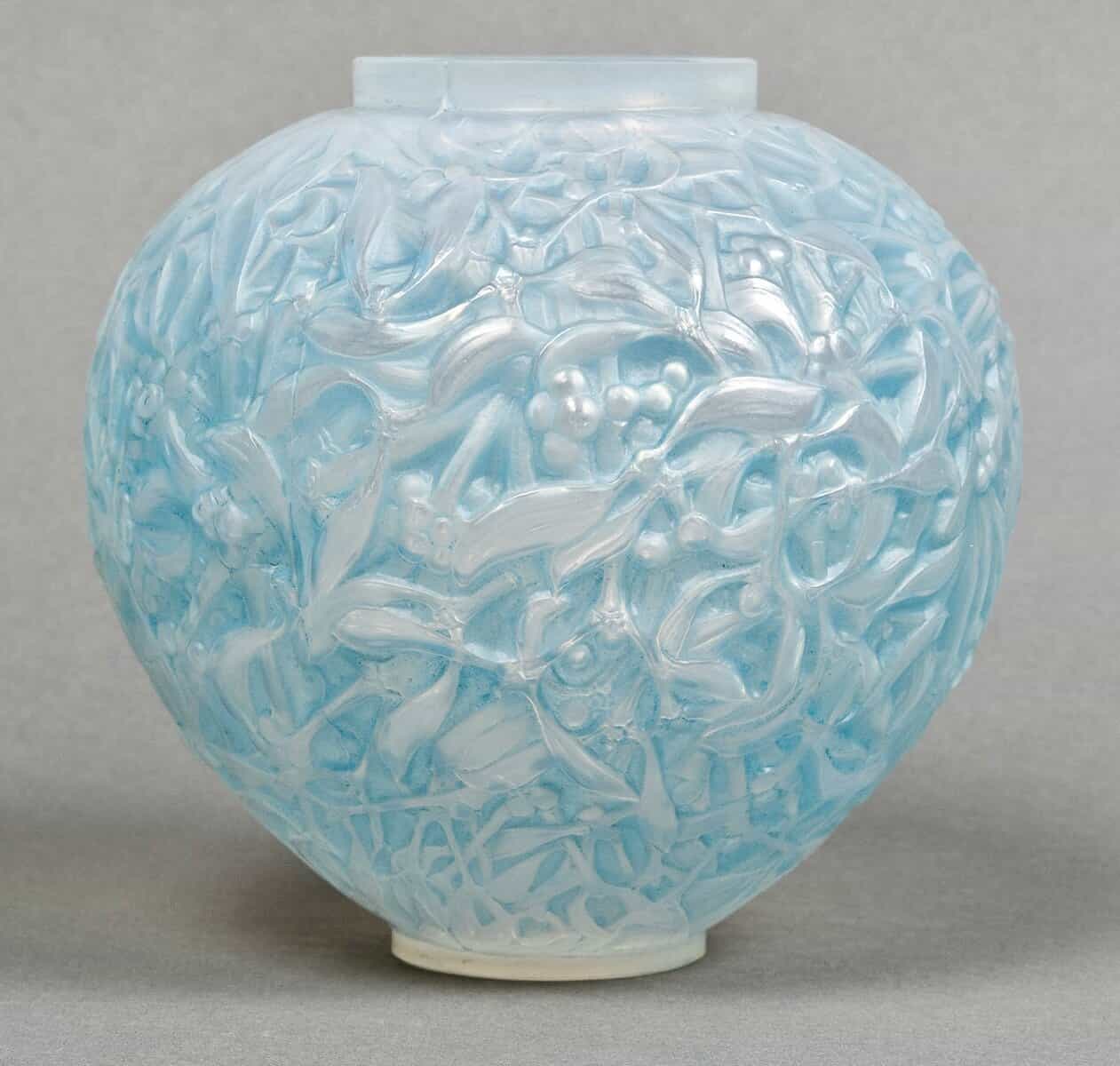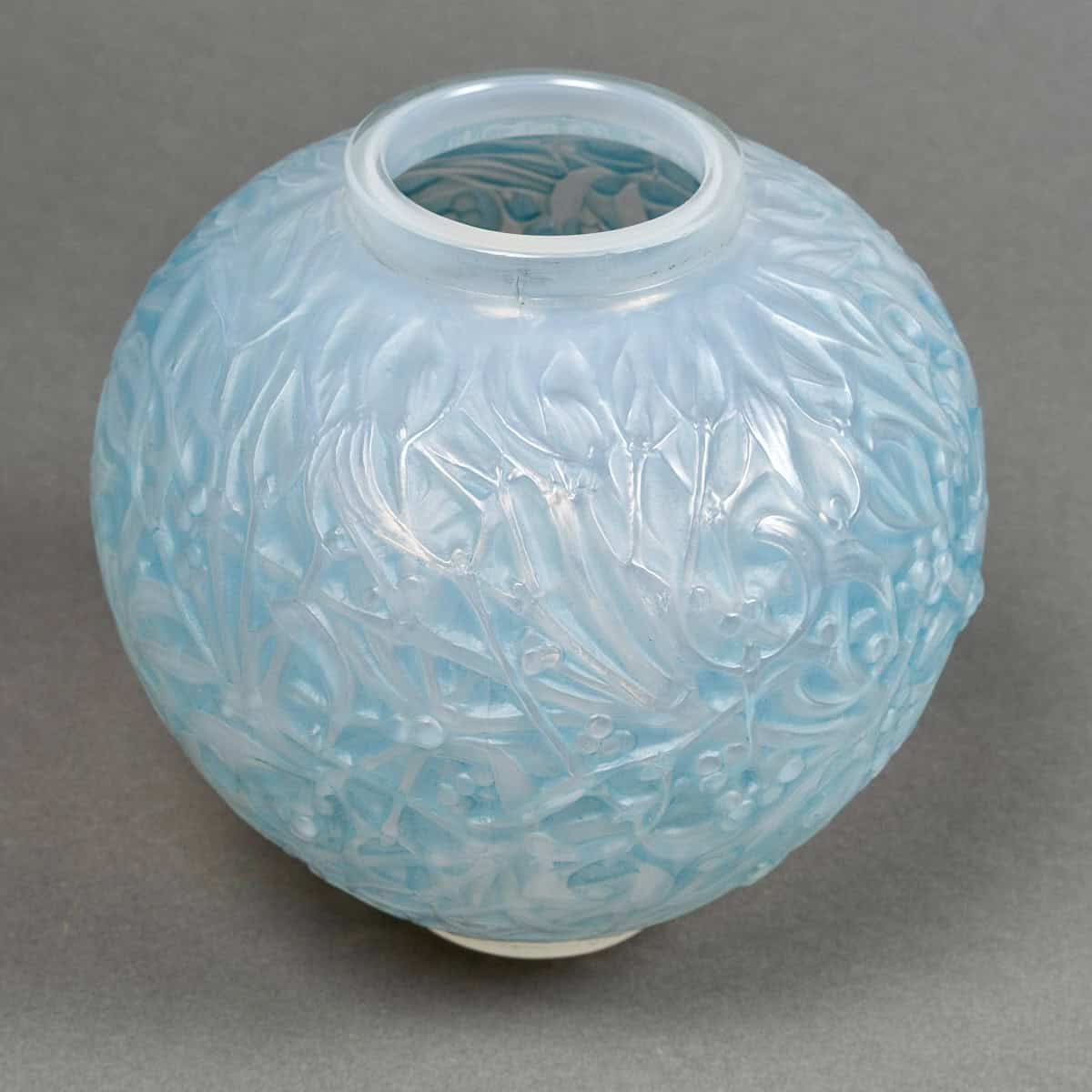 Vase « Gui » en verre opalescent patiné gris de René Lalique créé en 1920.
