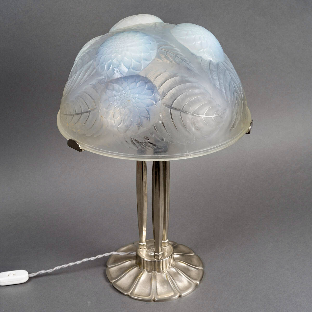 Lampe « Dahlias » en verre opalescent créée par René Lalique en 1921.