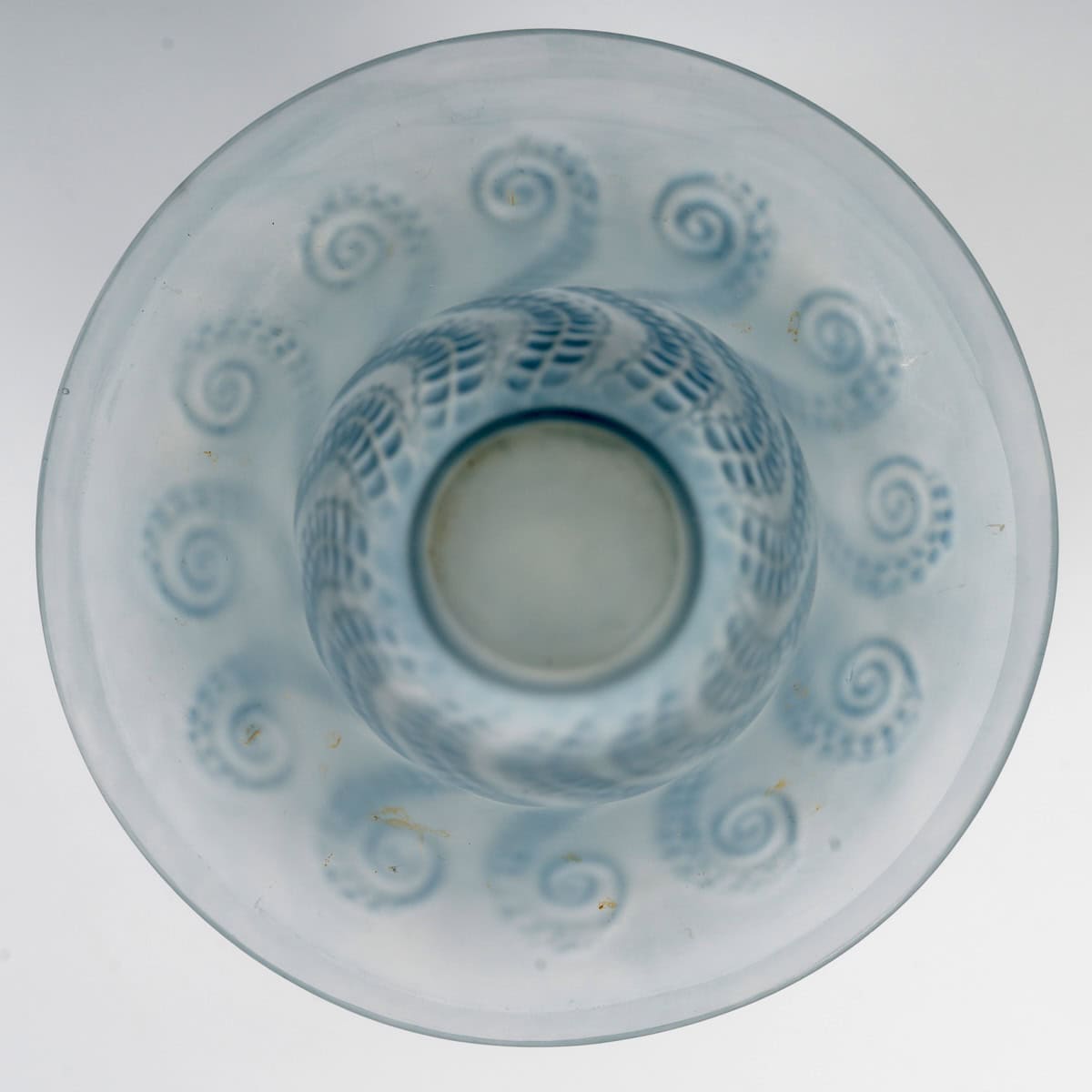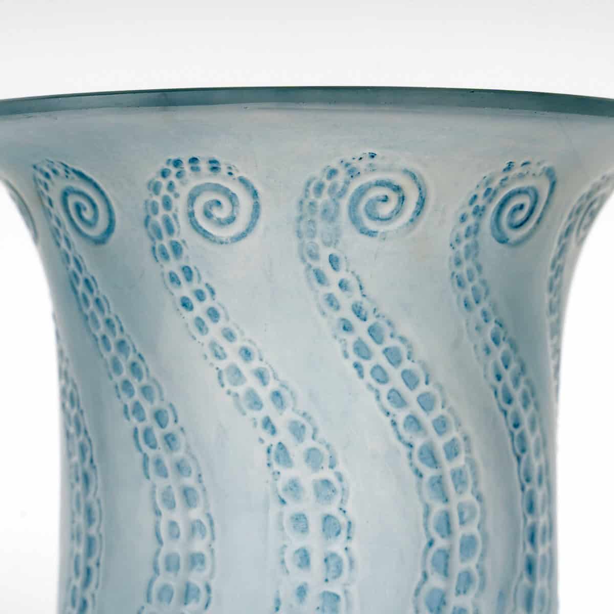 Vase « Méduse » en verre blanc patiné bleu de René Lalique créé en 1921.