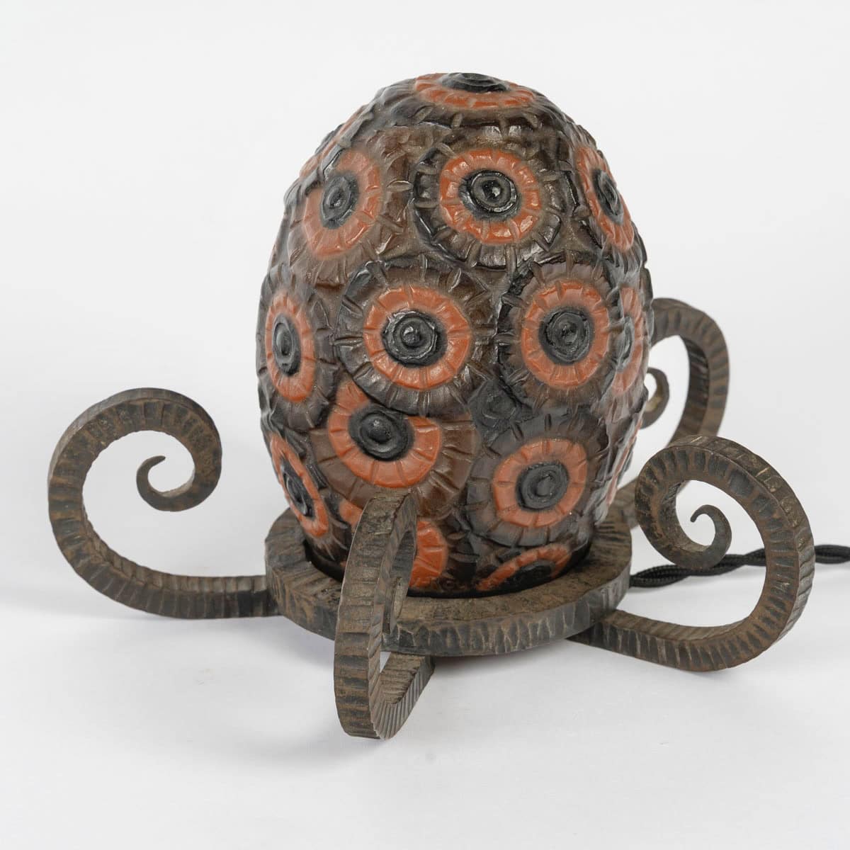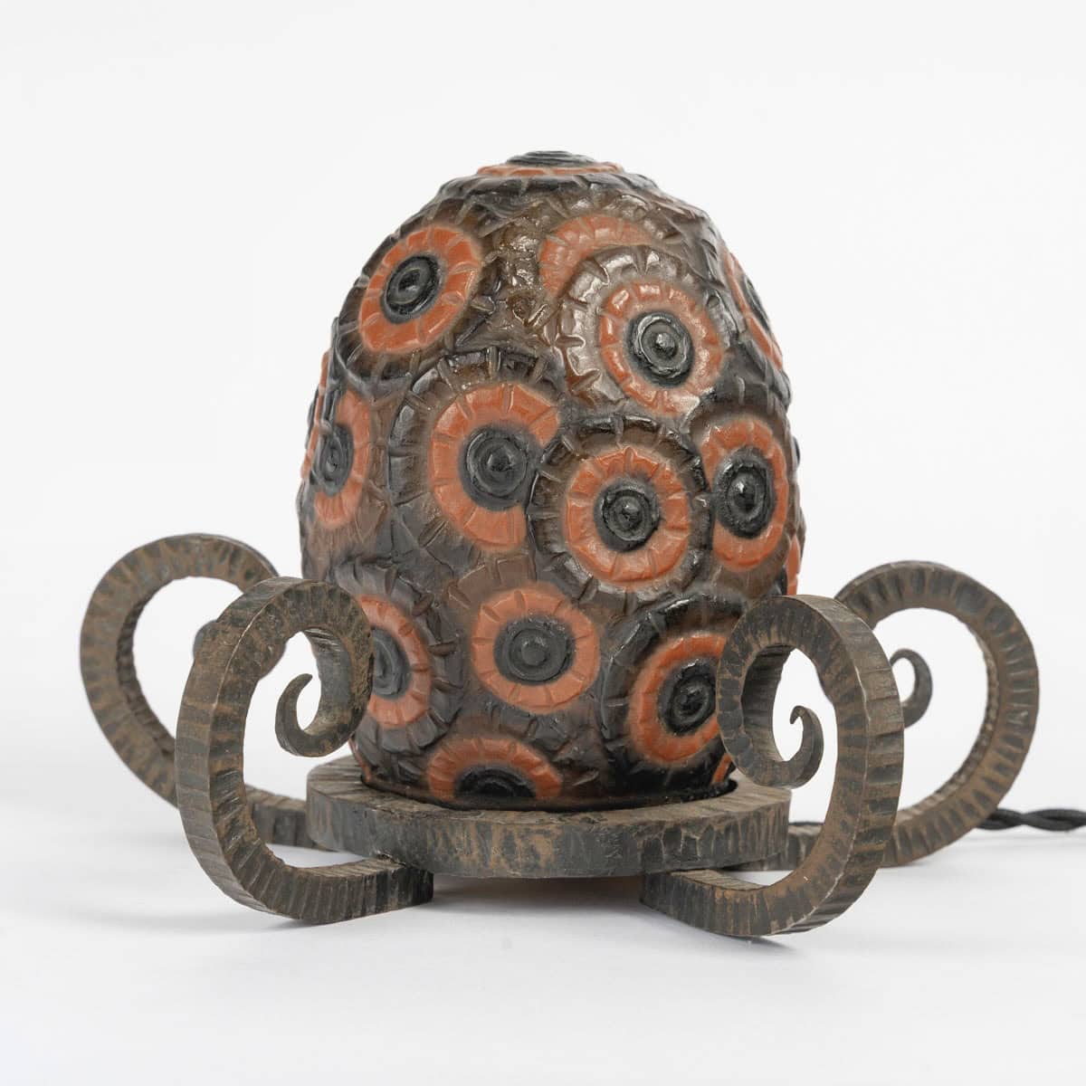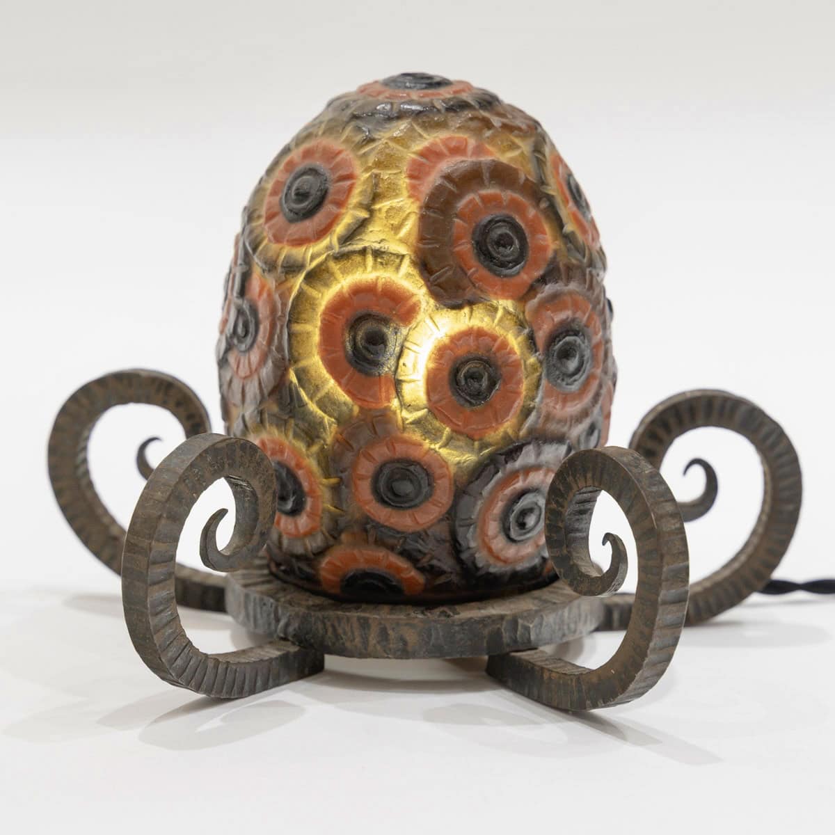 Veilleuse « Bouquet de Fleurs » en pâte de verre rouge, noir et jaune créée par Gabriel Argy-Rousseau en 1923.