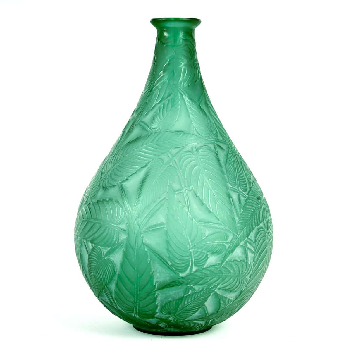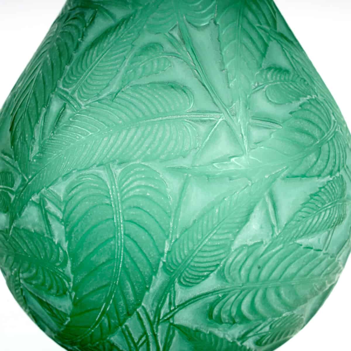 Vase « Sauges » en verre vert émeraude patiné blanc de René Lalique créé en 1923.
