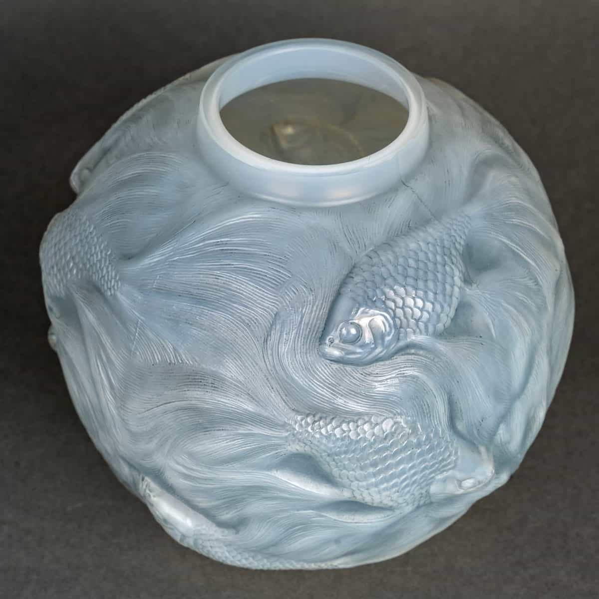 Vase « Formose » en verre opalescent double couche patiné bleu de René Lalique créé en 1924.