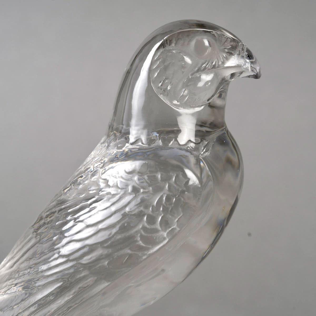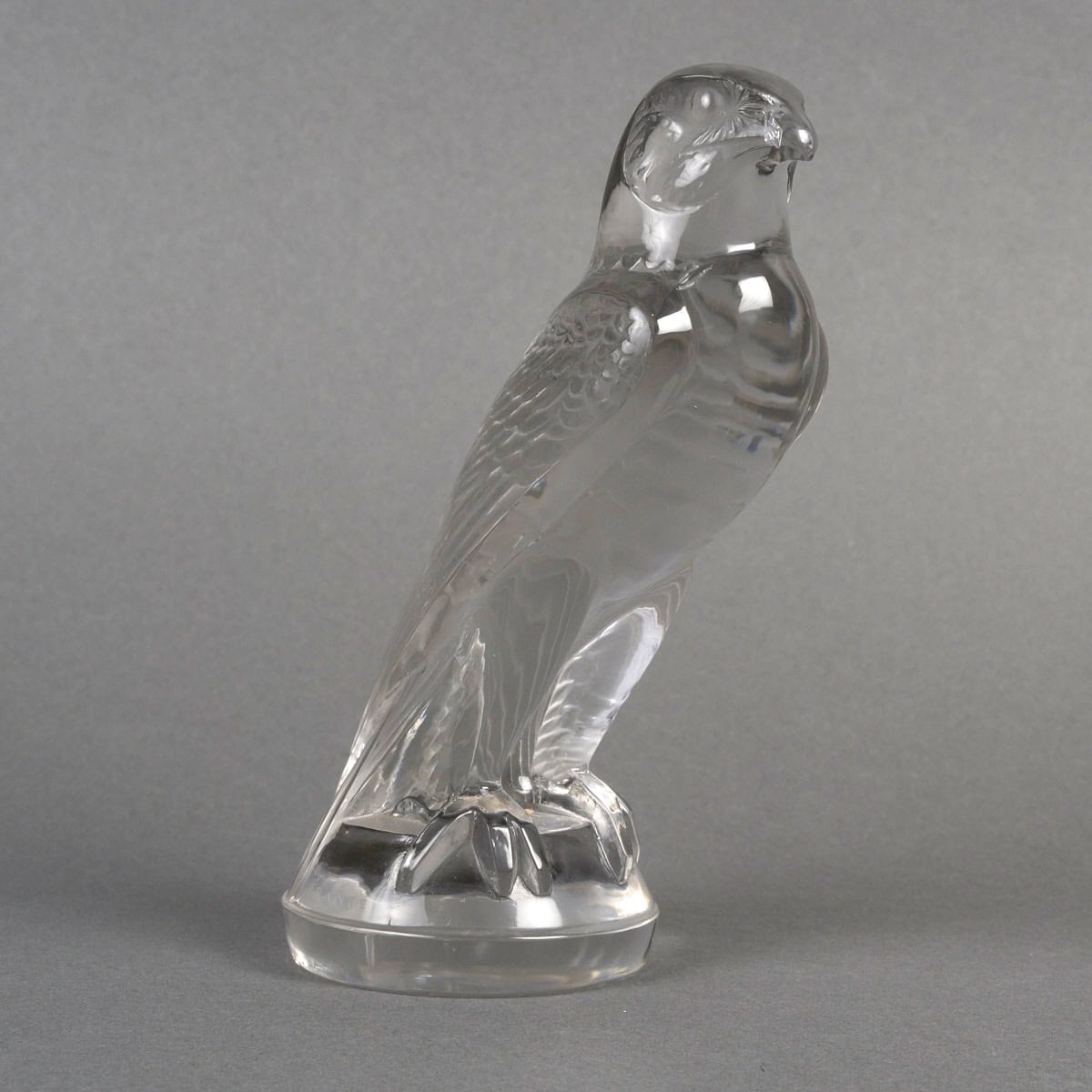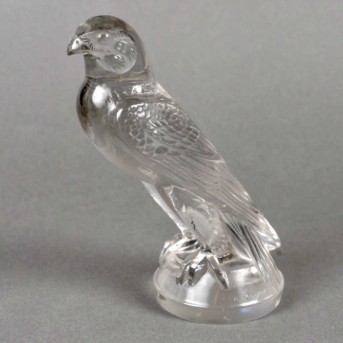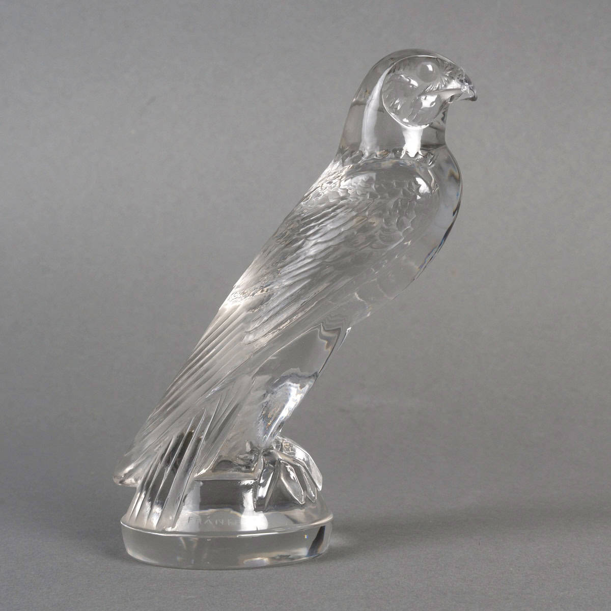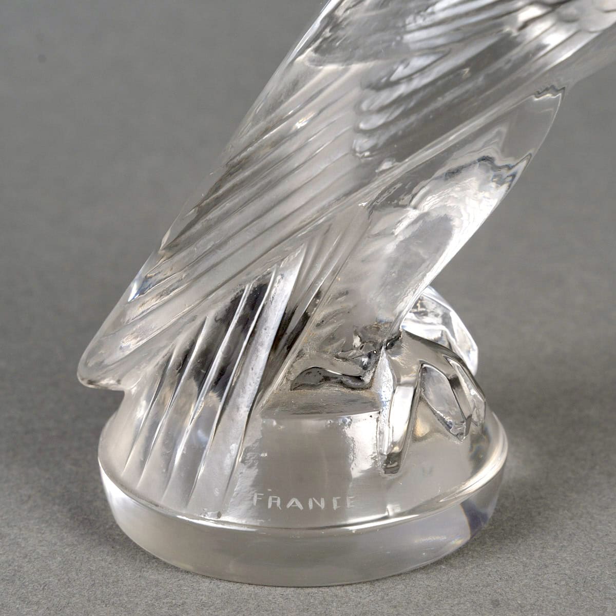 Mascotte Automobile Statuette « Faucon » en verre blanc de René Lalique créée en 1925.