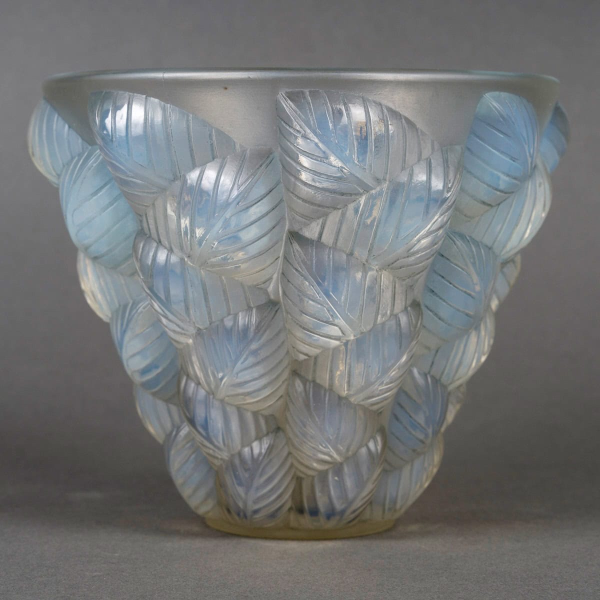 Vase « Moissac » en verre opalescent patiné bleu créé par René Lalique en 1927.