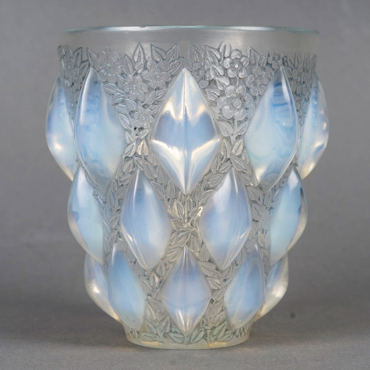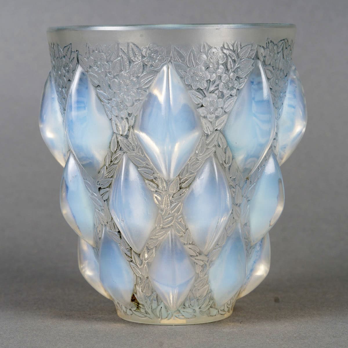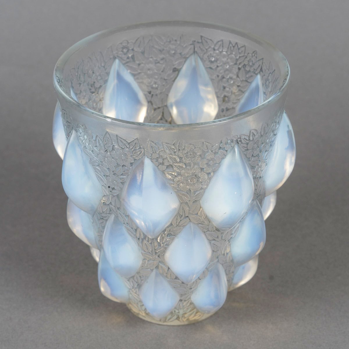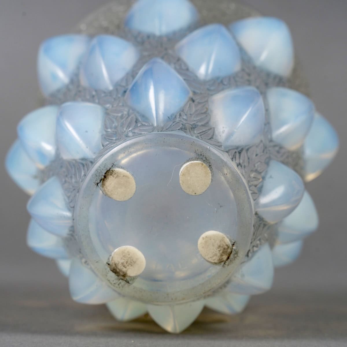 Vase « Rampillon » en verre opalescent patiné bleu créé par René Lalique en 1927.