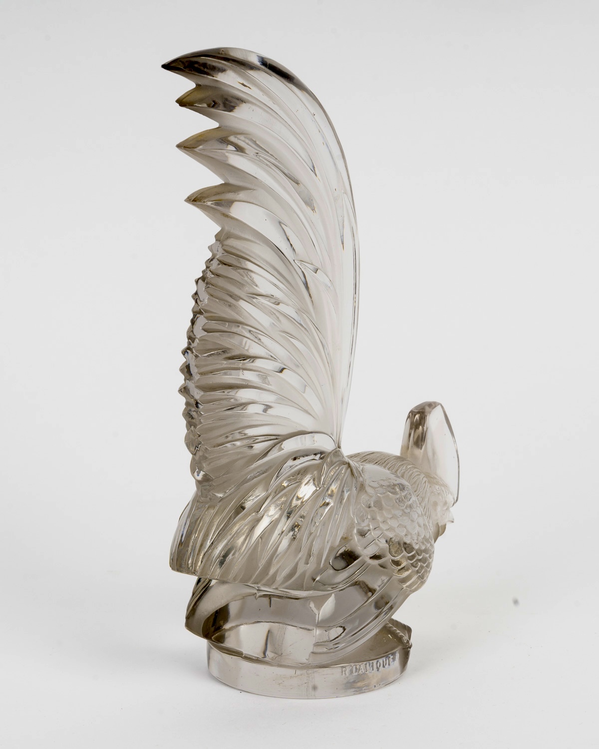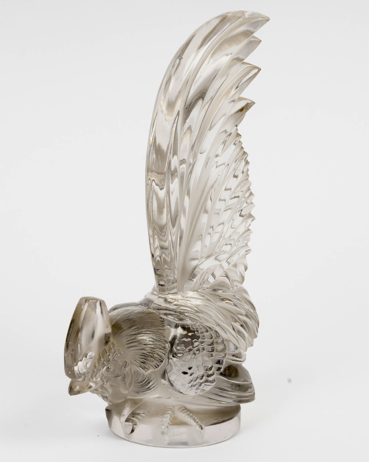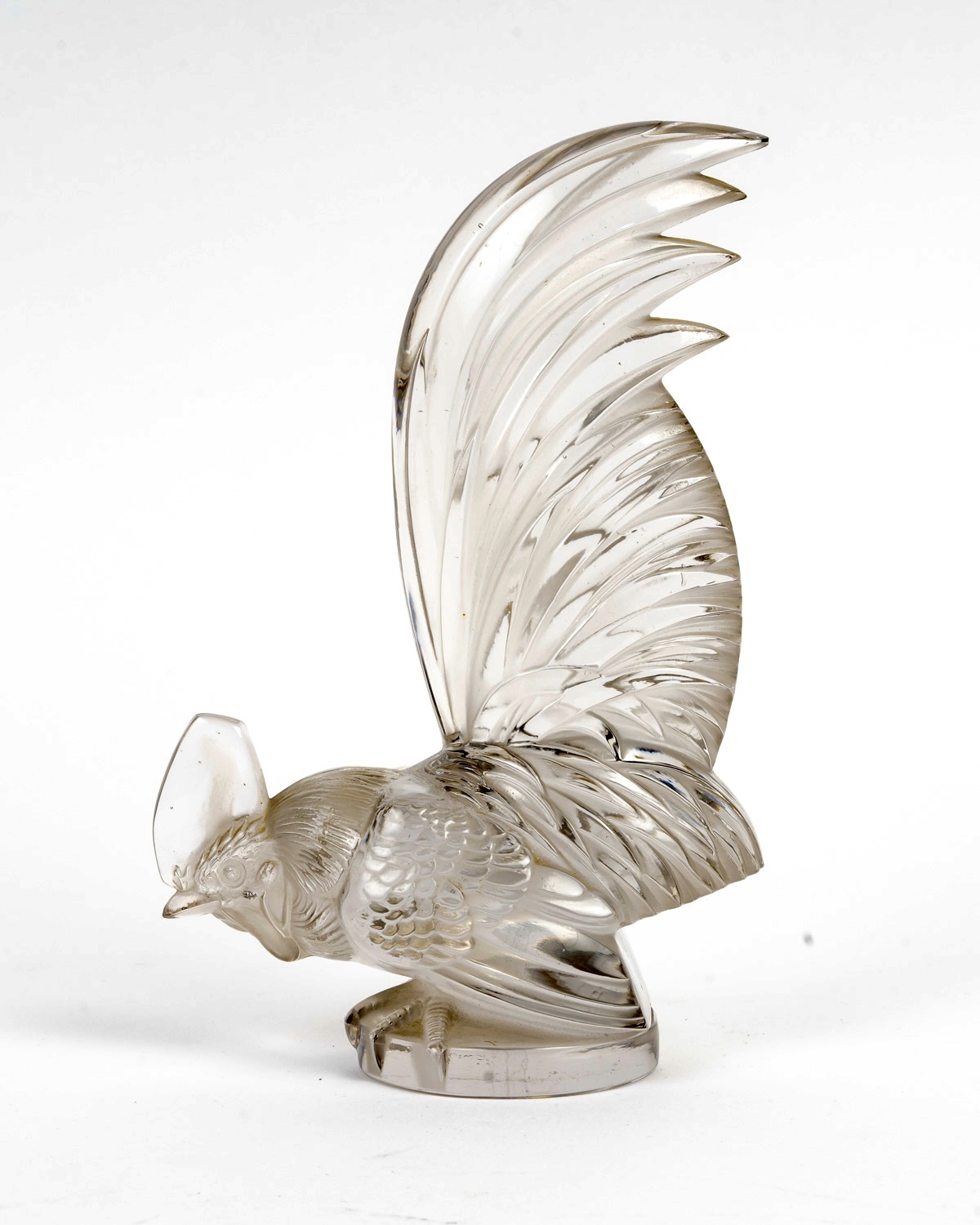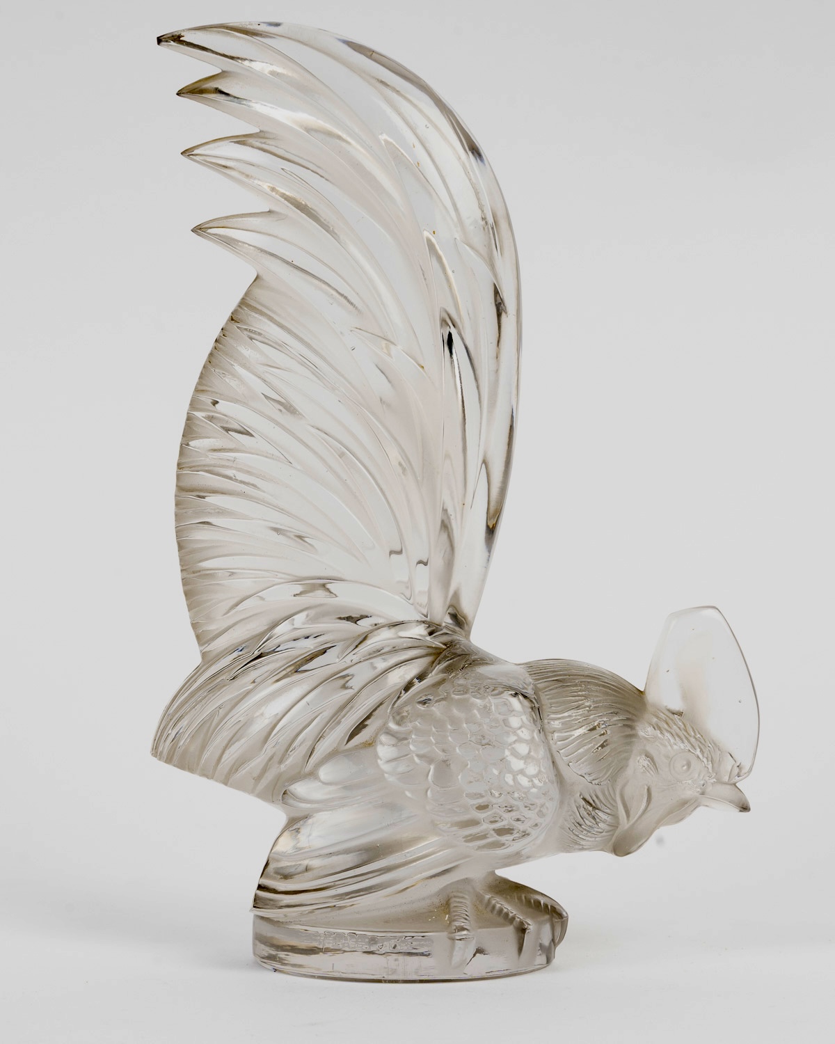 Mascotte Automobile « Coq Nain » en verre blanc créé par René Lalique en 1928.