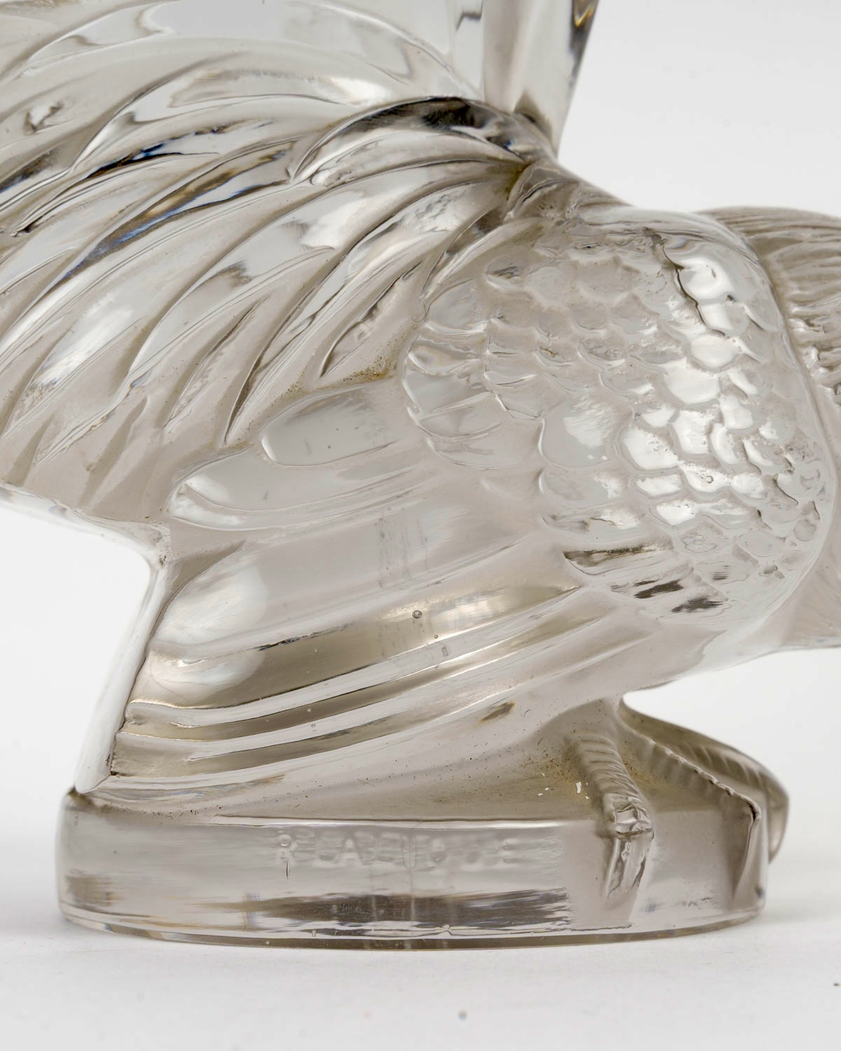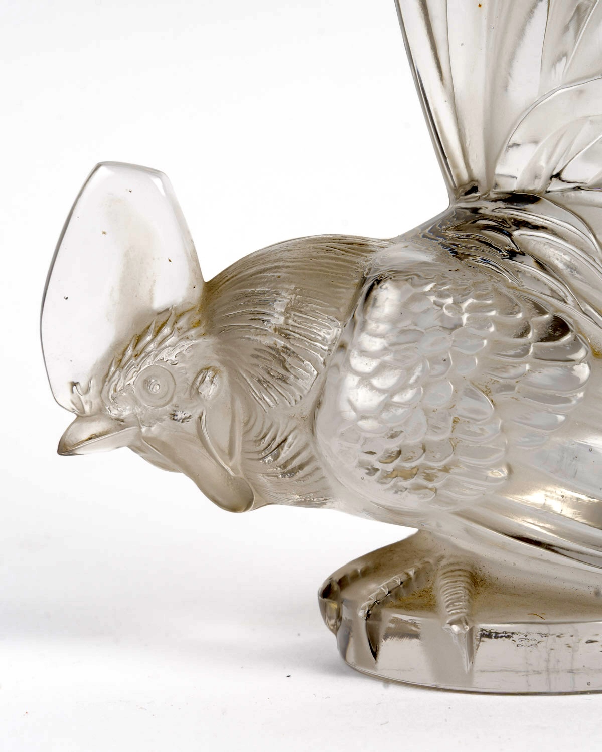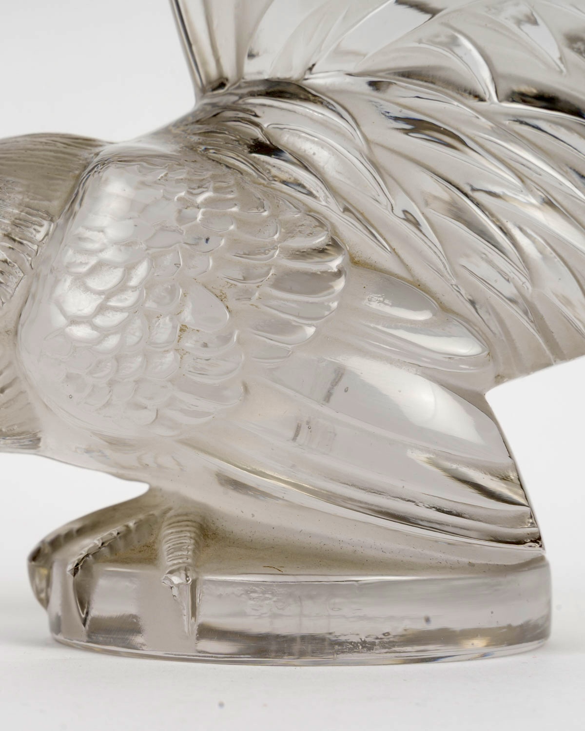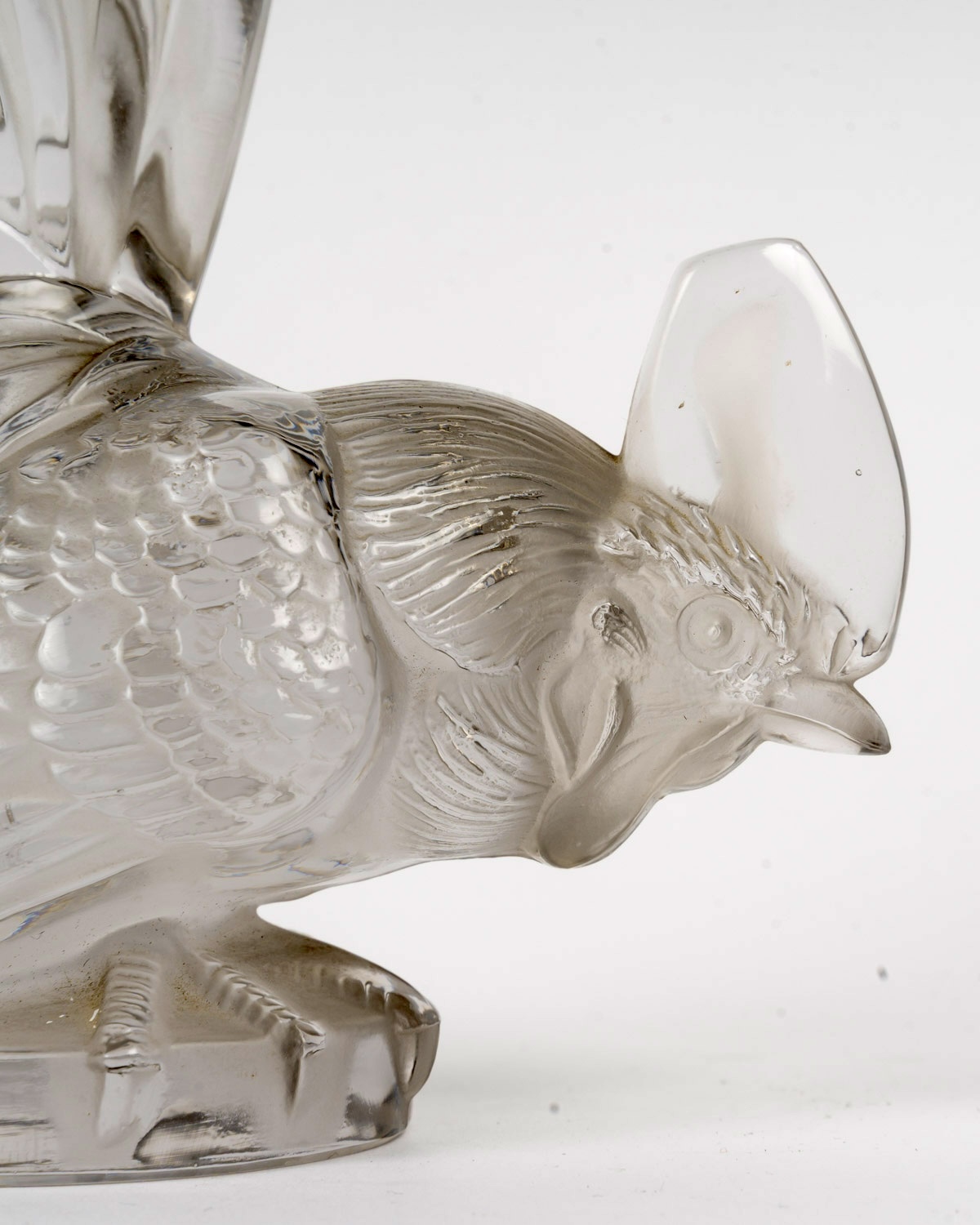 Mascotte Automobile « Coq Nain » en verre blanc créé par René Lalique en 1928.