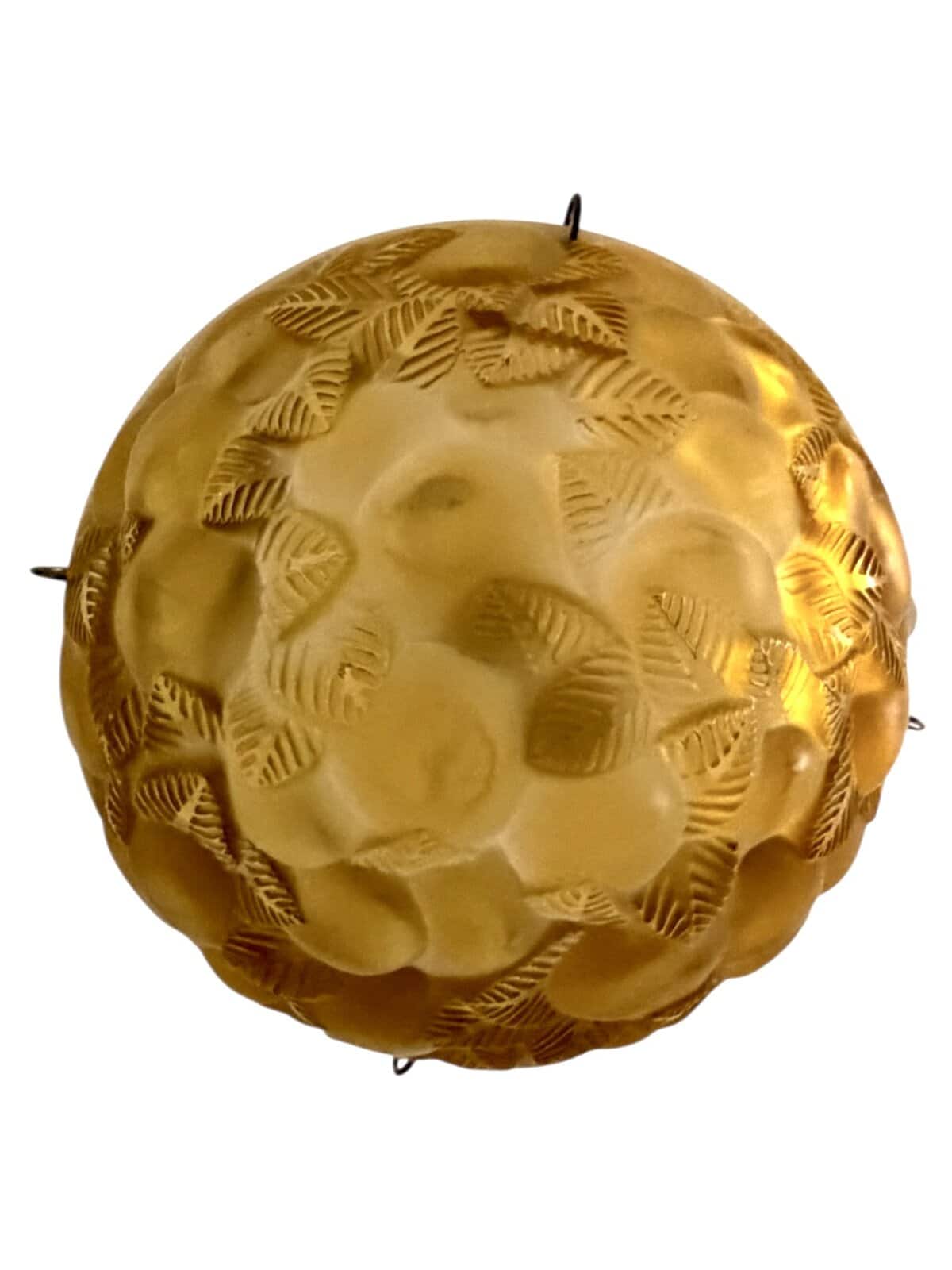 1929 René Lalique – Suspension Plafonnier Lustre Lausanne Verre Jaune Ambré