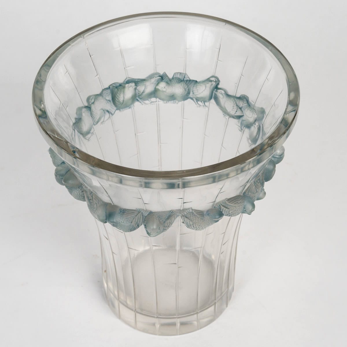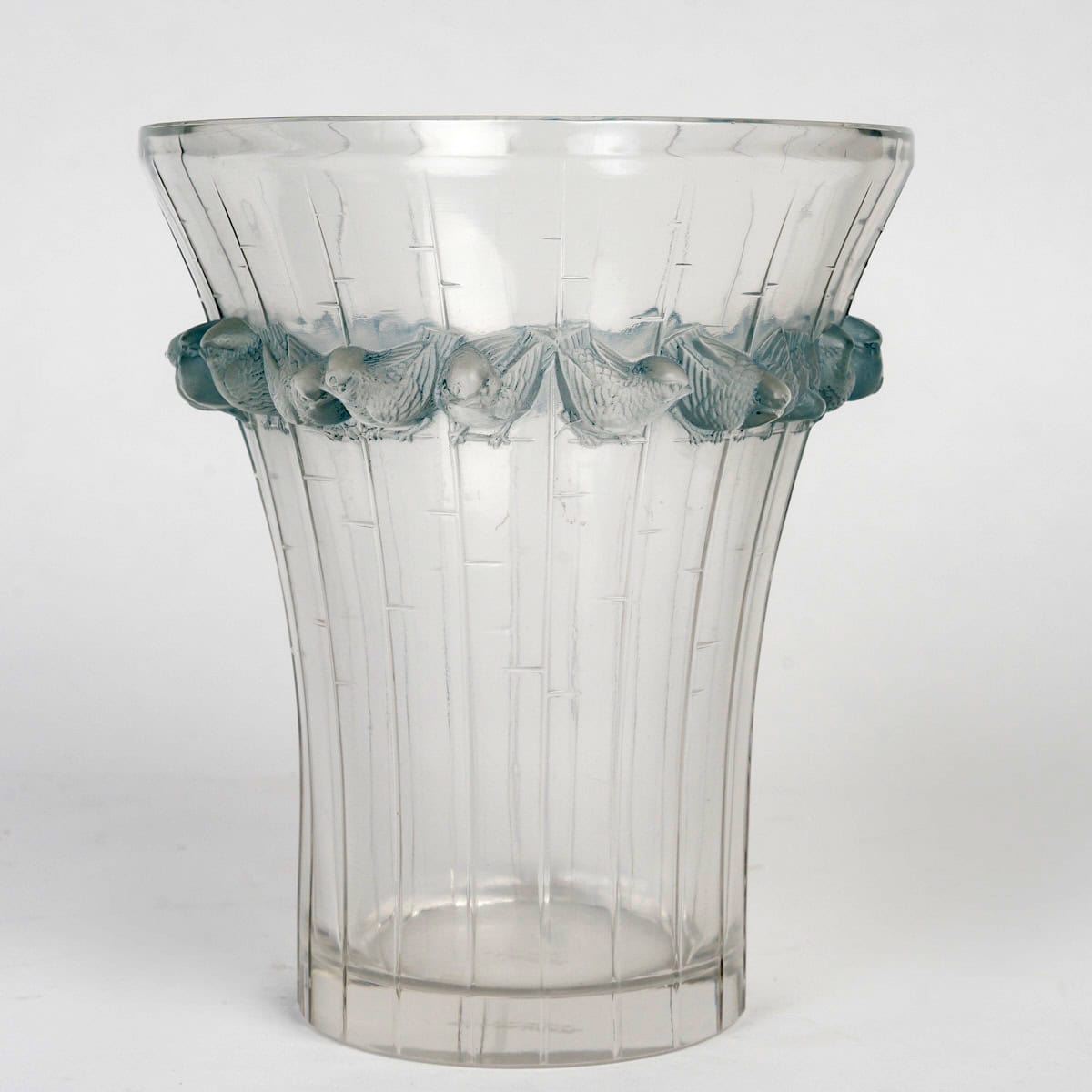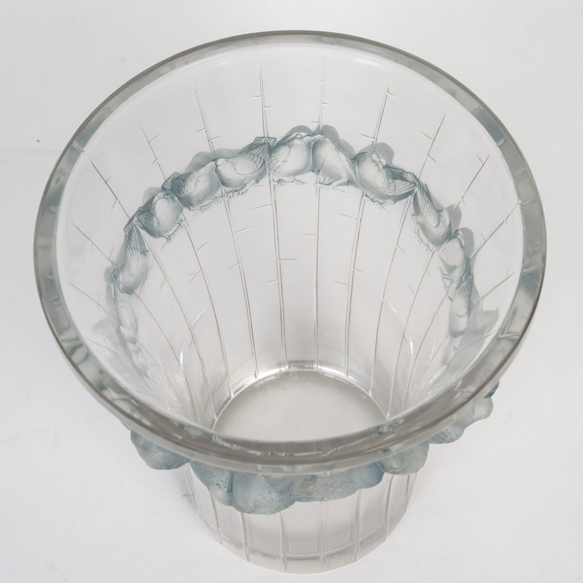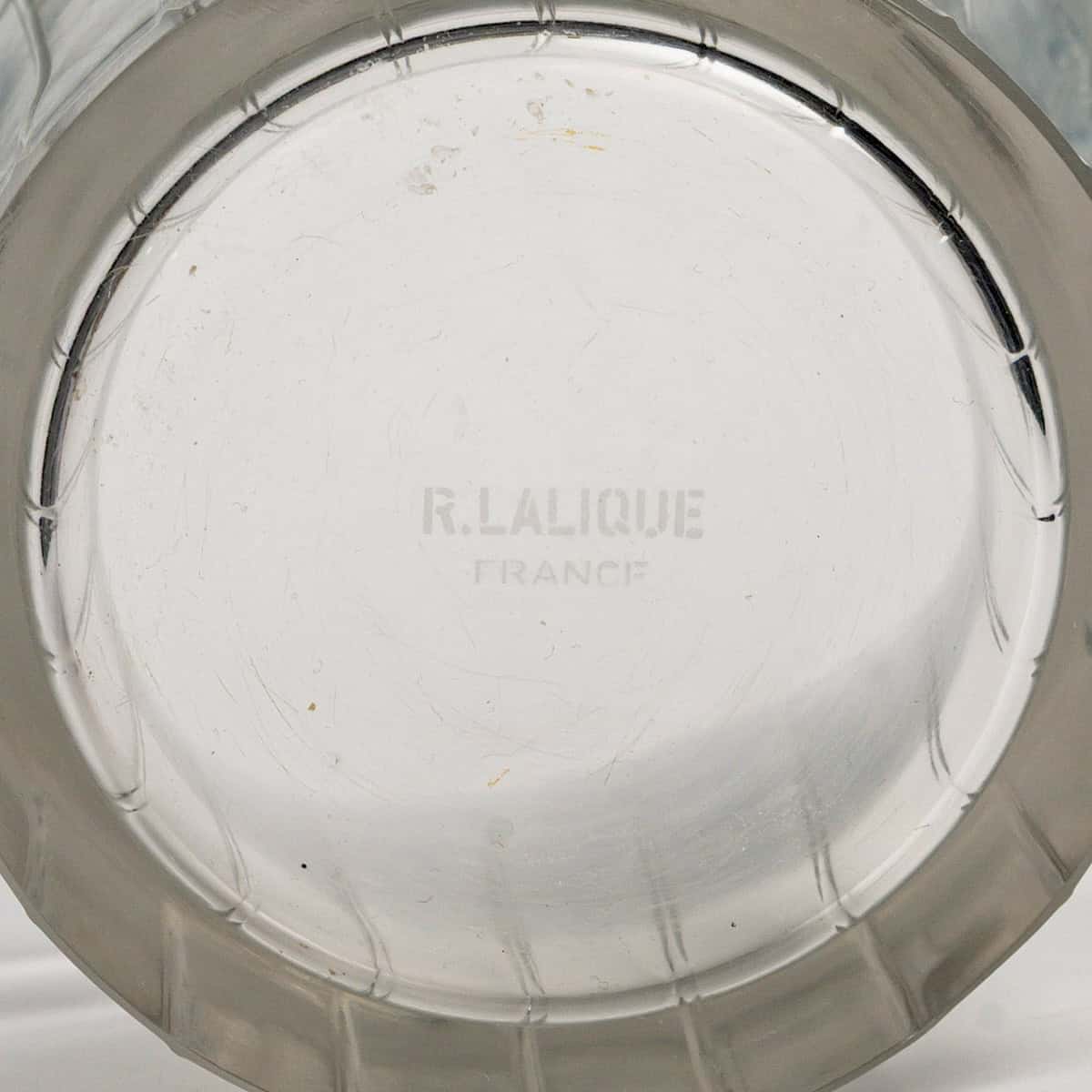 Vase « Boulouris » en verre blanc patiné bleu de René Lalique créé en 1933.