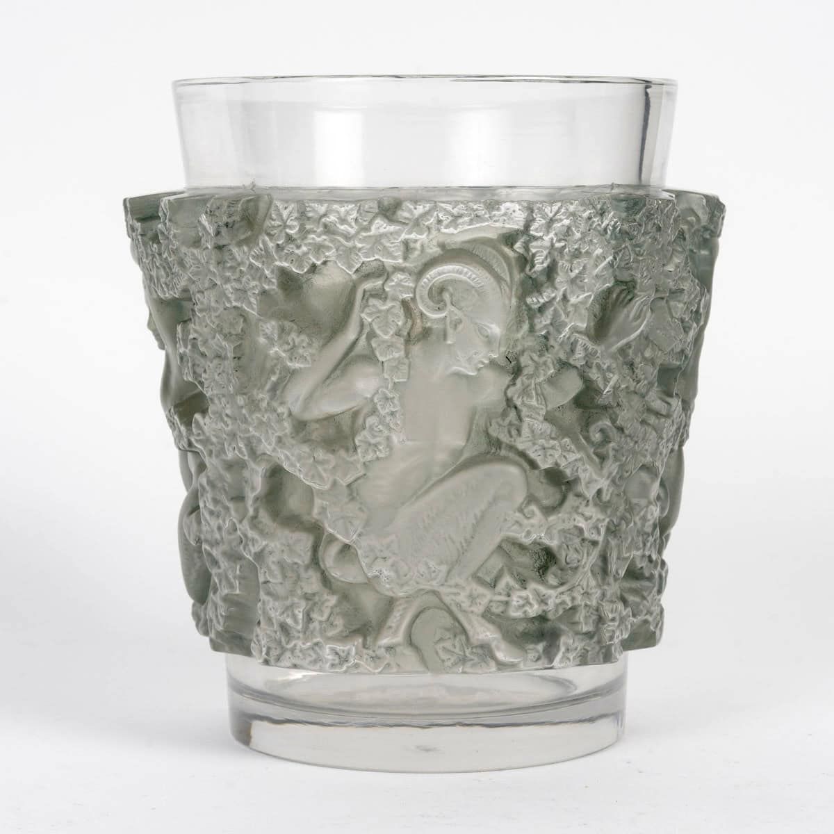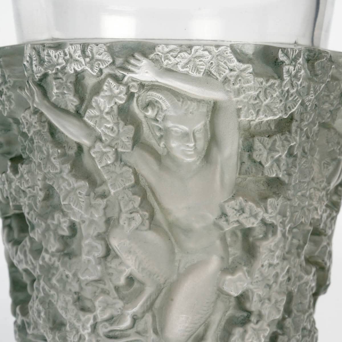 Vase « Bacchus » en verre blanc patiné bleu de René Lalique créé en 1938.