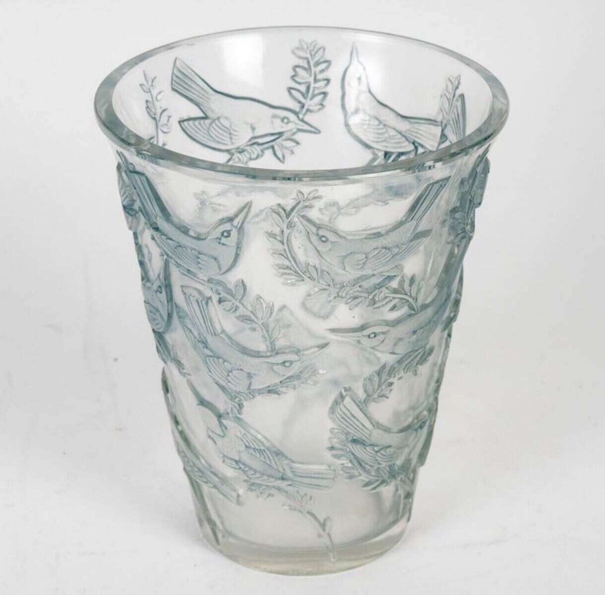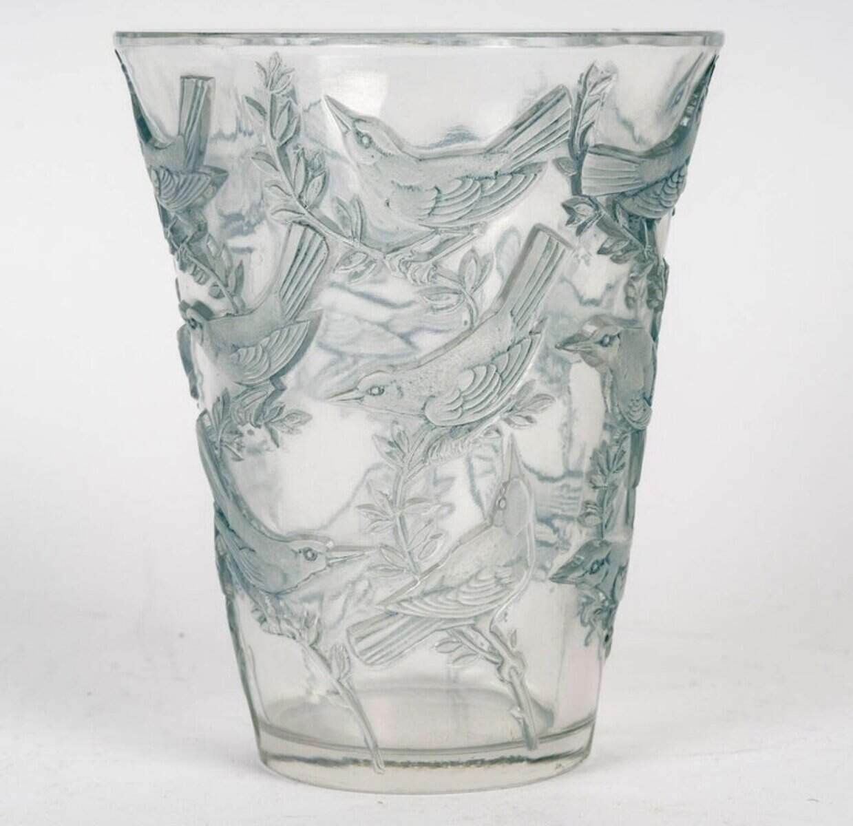 Vase « Grives » en verre blanc patiné bleu de René Lalique créé en 1938.