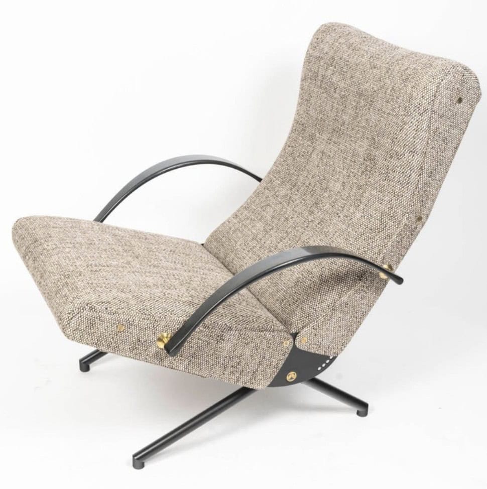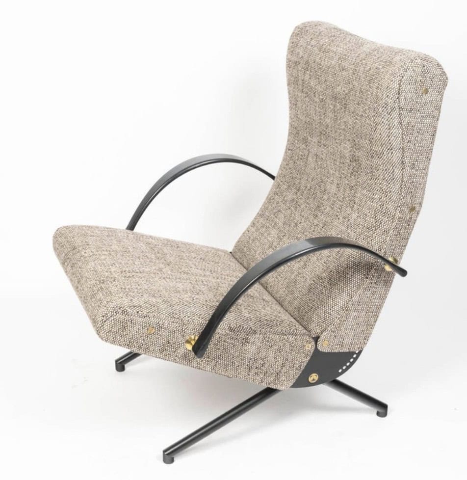 Composé d’une large base oblongue reposant sur un piédestal rond légèrement incurvé vers l’extérieur et vers l’intérieur au centre. À la base du pied se trouve une sphère surmontée de deux chapiteaux en bois sculpté. Au sommet du pied, la décoration en forme de chapiteau se répète, juste au-dessus de laquelle une demi-sphère soutient la tige en laiton qui maintient l’abat-jour. Sur le côté, une clé en bois sculptée à la main permet de régler la hauteur de l’abat-jour.