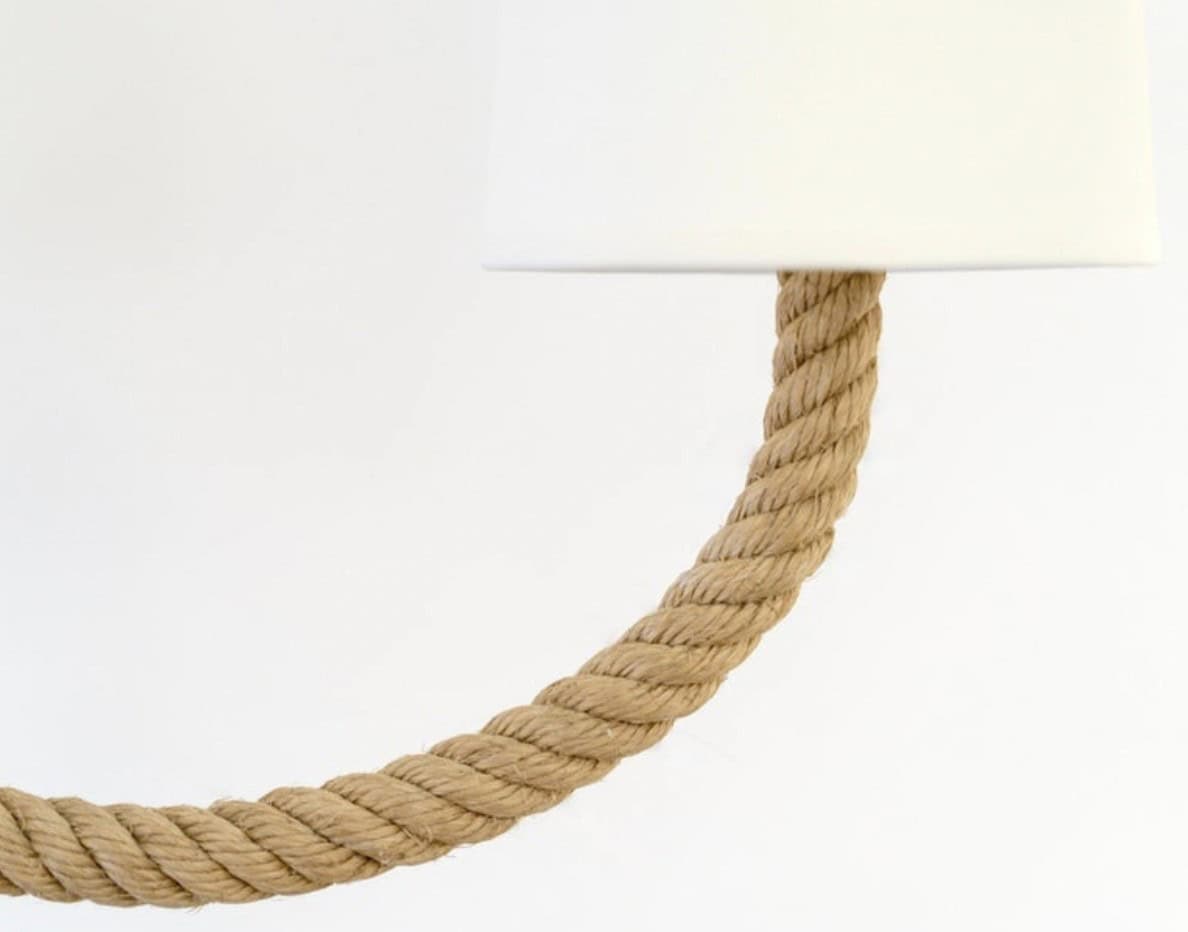 Chaque bras est équipé d’un abat-jour trapézoïdal identique en coton blanc cassé.