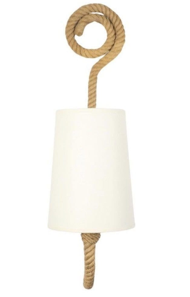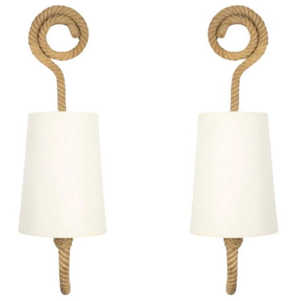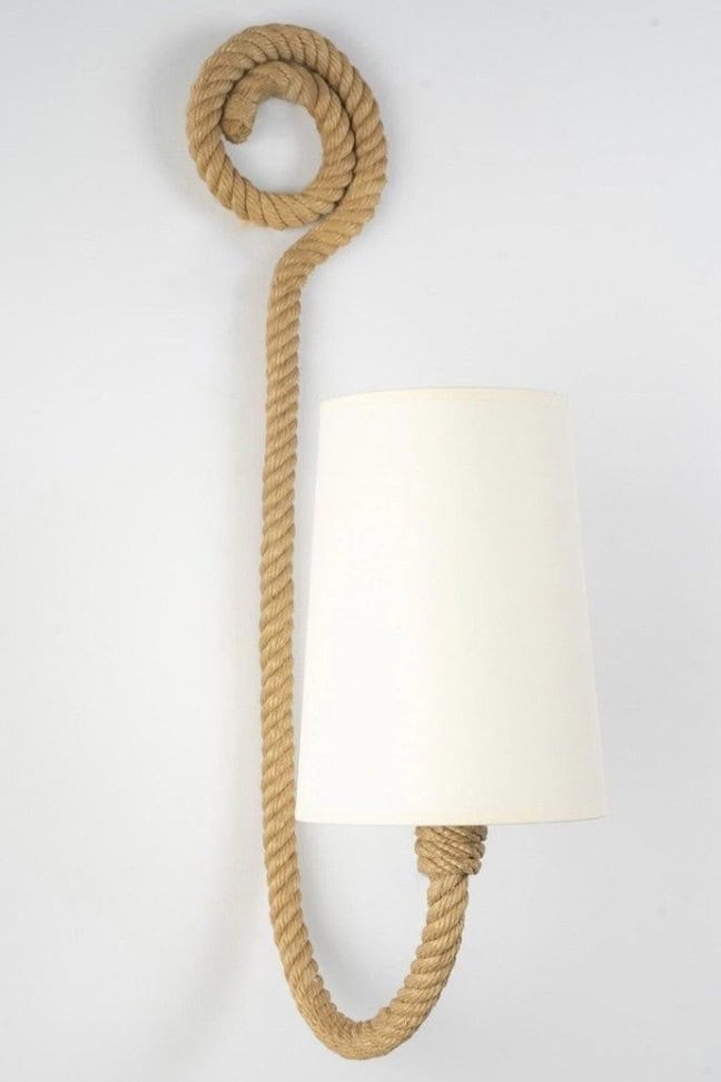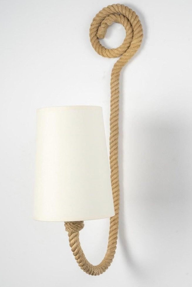 Composées d’un bras en corde qui s’incurve vers l’avant dans sa partie inférieure et est recouvert d’un abat-jour conique en coton blanc cassé retravaillé pour s’harmoniser avec l’ensemble.