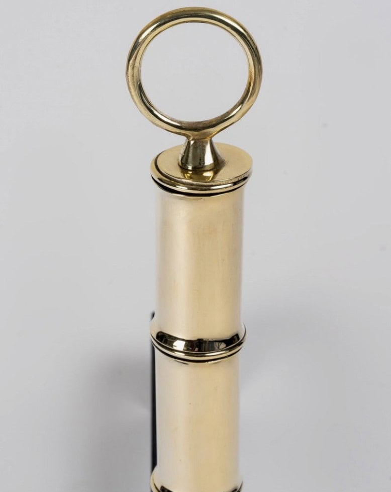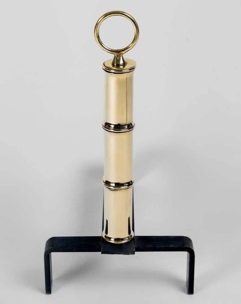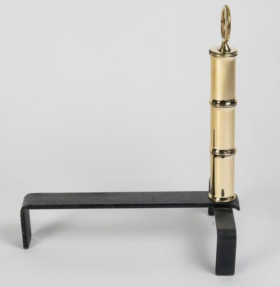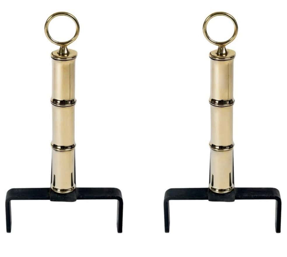Ils sont composés d’éléments en laiton empilés selon un motif rappelant le bambou, se terminant par des anneaux, avec une base en fer forgé.