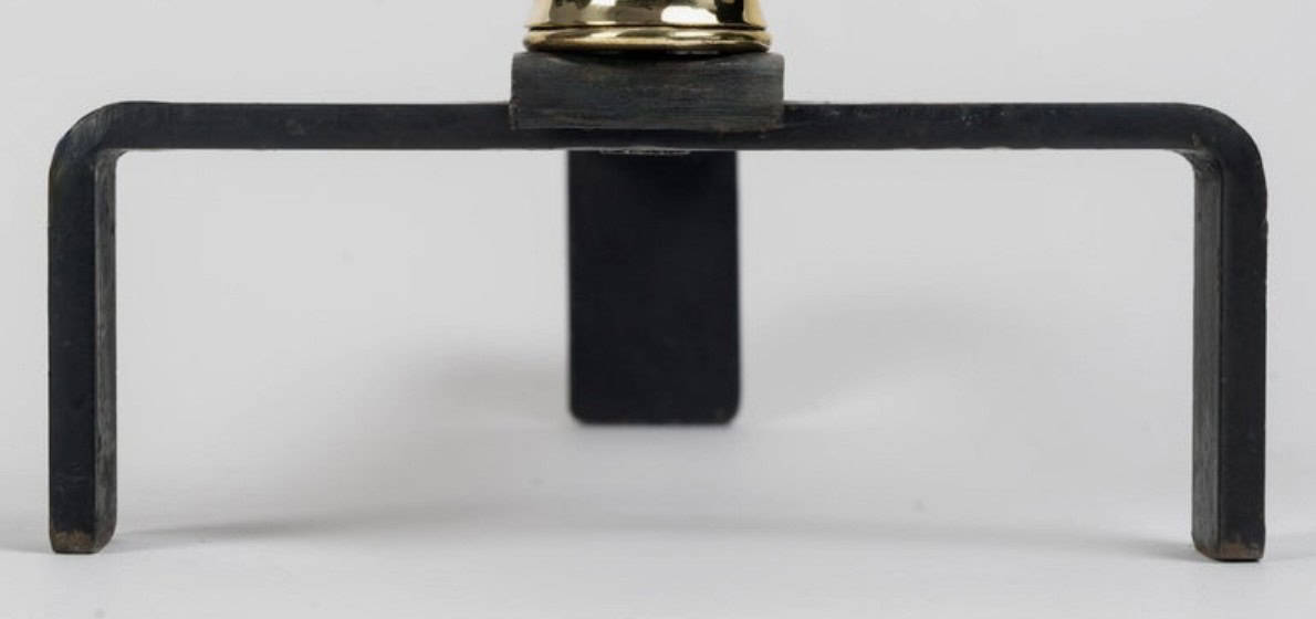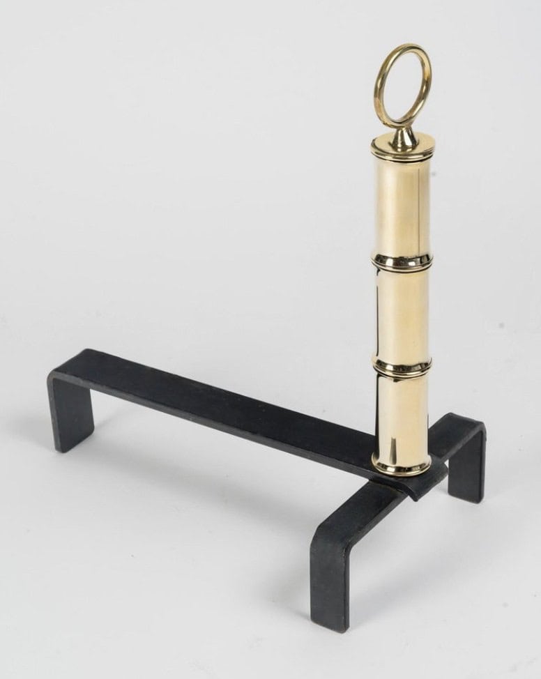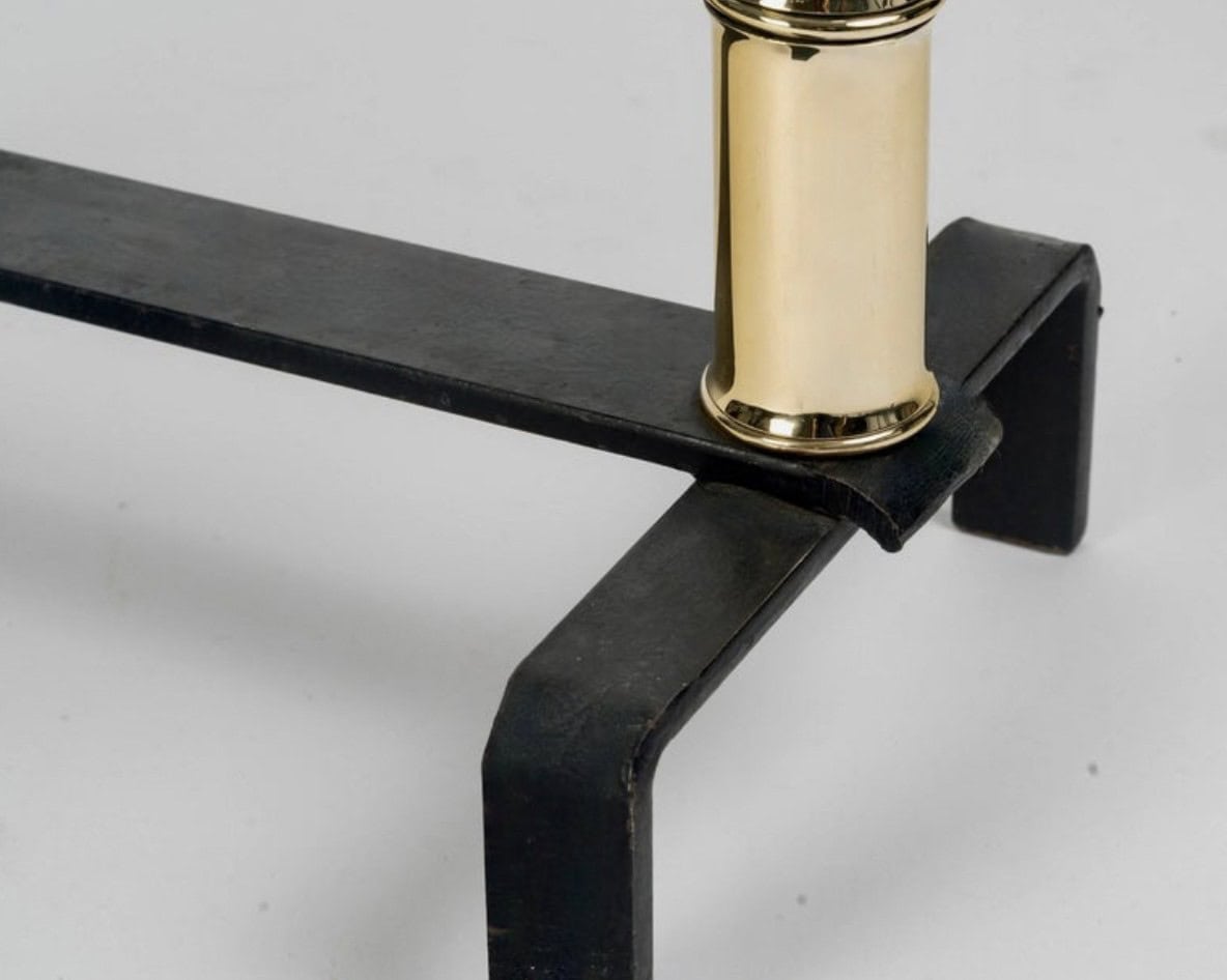 Paire de chenets en fer forgé et laiton, modèle Bambou par Jacques Adnet.