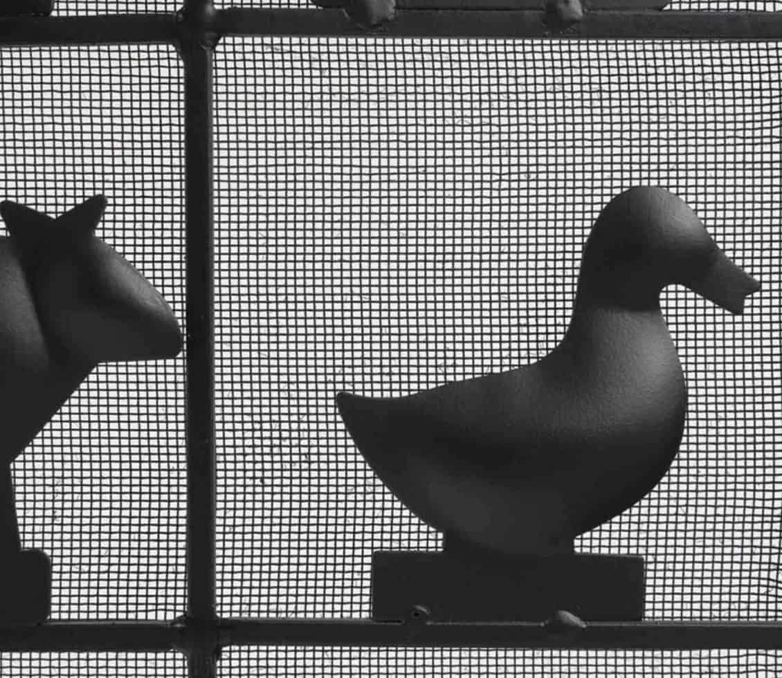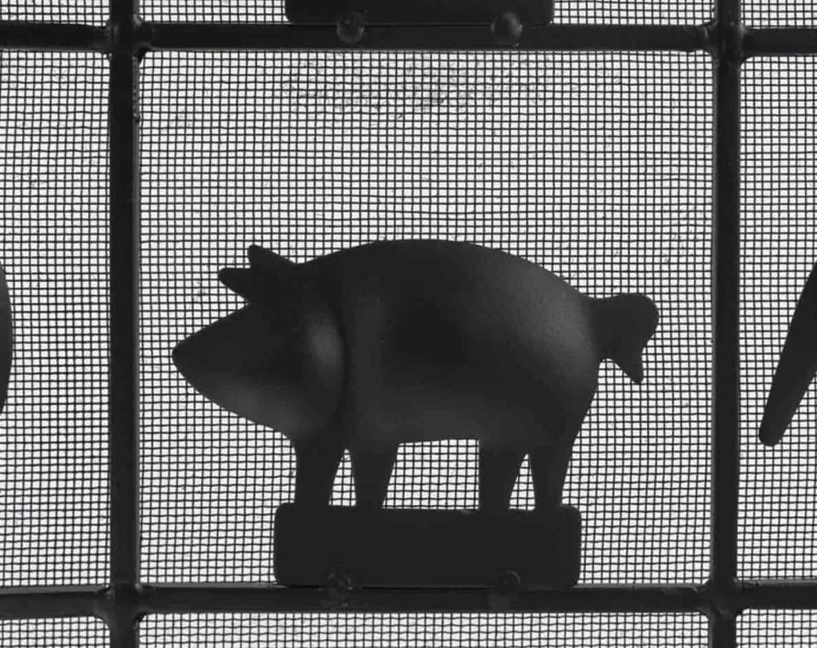 Magnifique travail artisanal représentant des animaux de la ferme tels que des canards, des vaches, des coqs et des cochons.