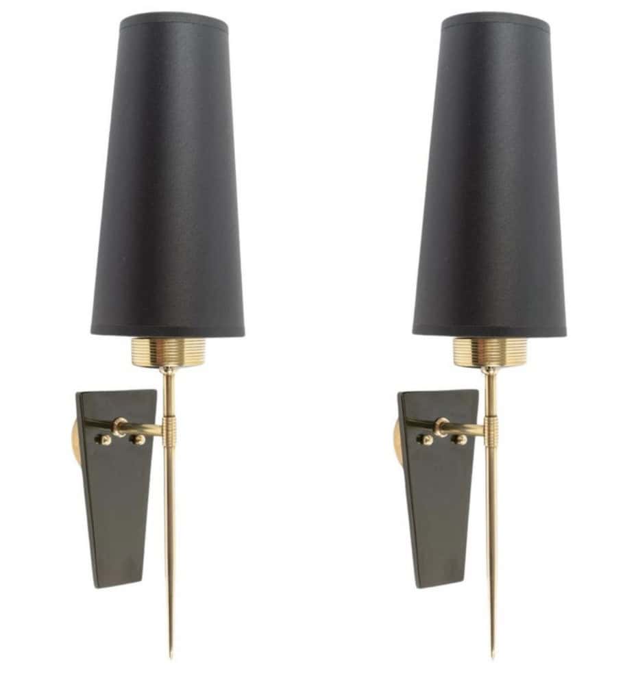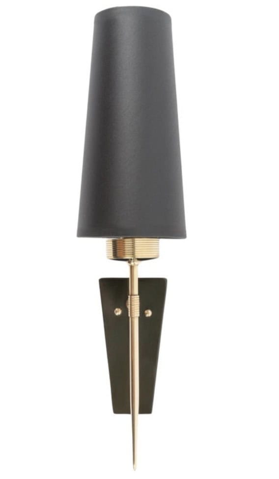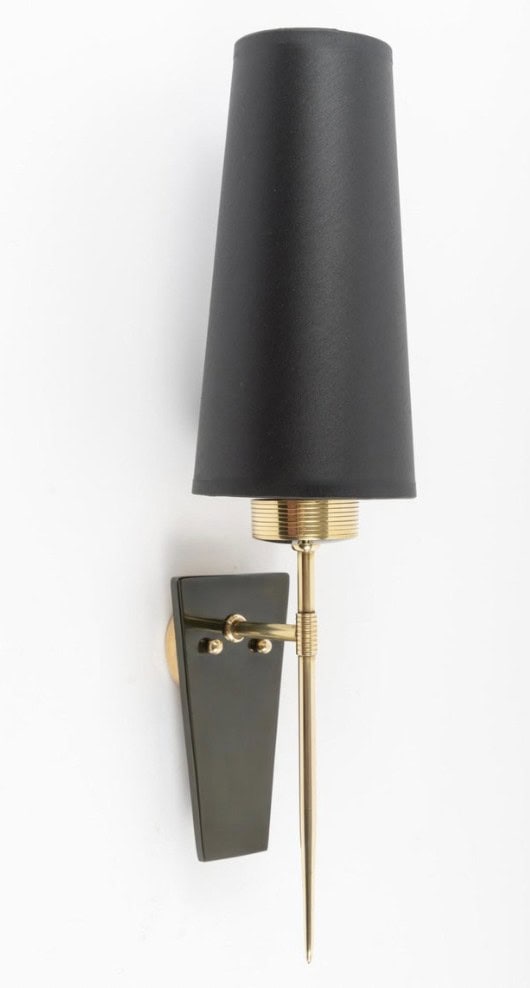 Dans sa partie supérieure, l’applique est recouverte d’un abat-jour noir à l’extérieur et doré à l’intérieur.