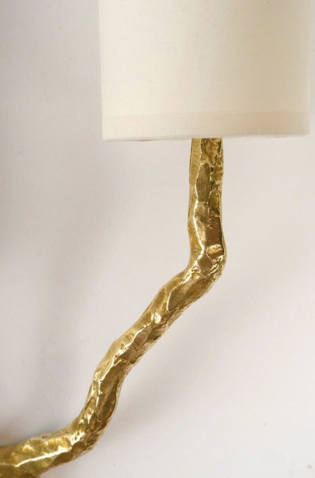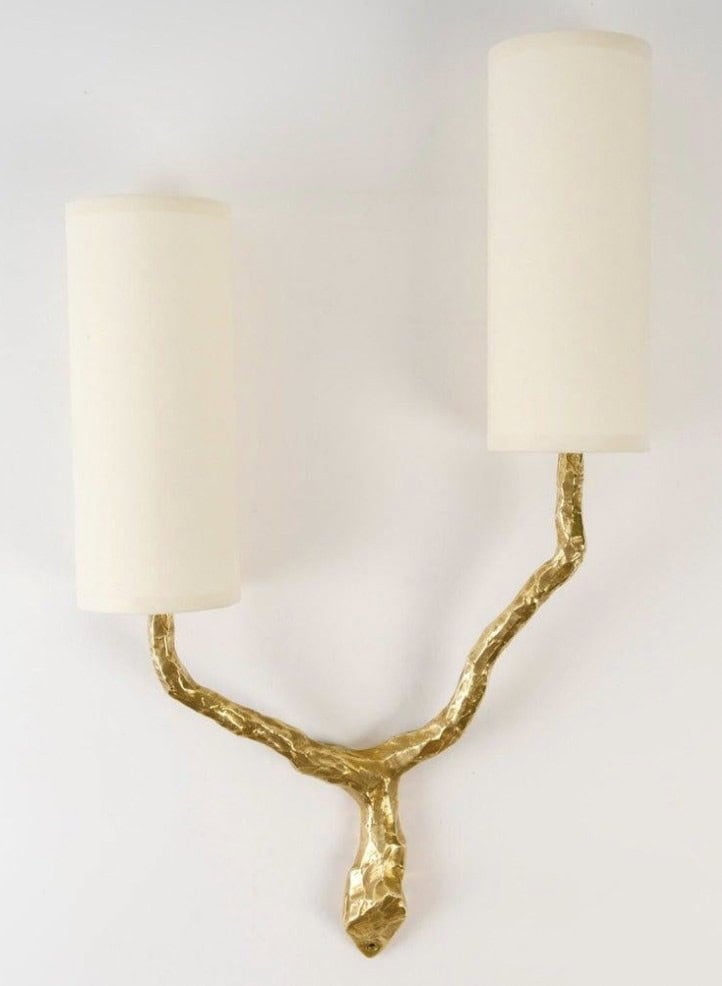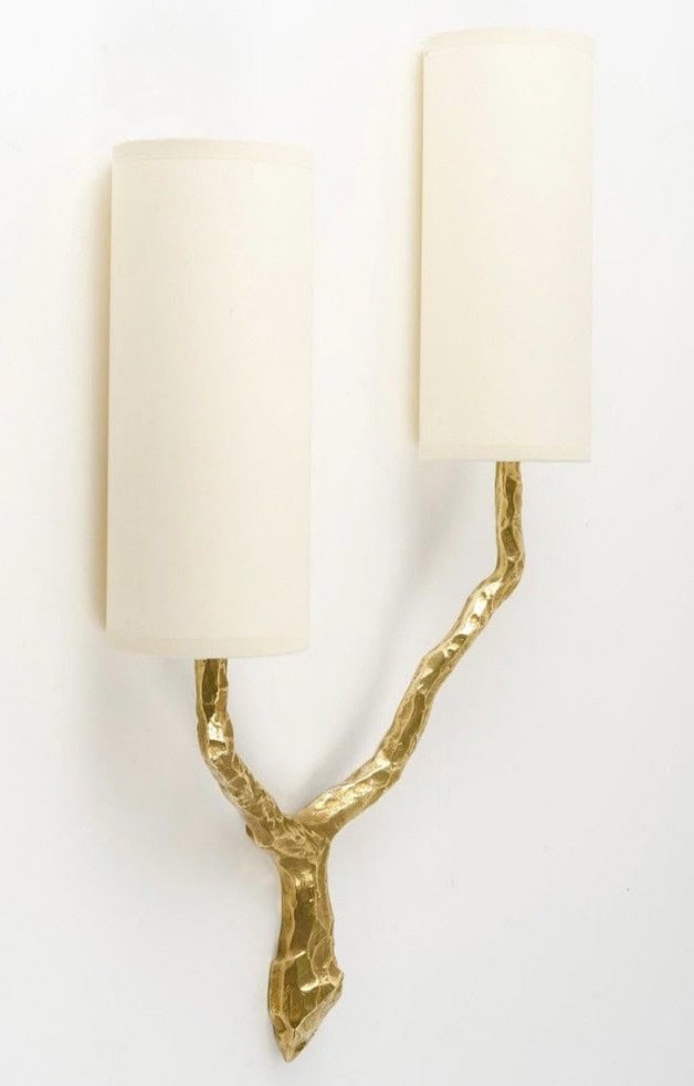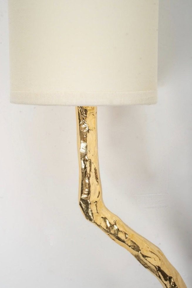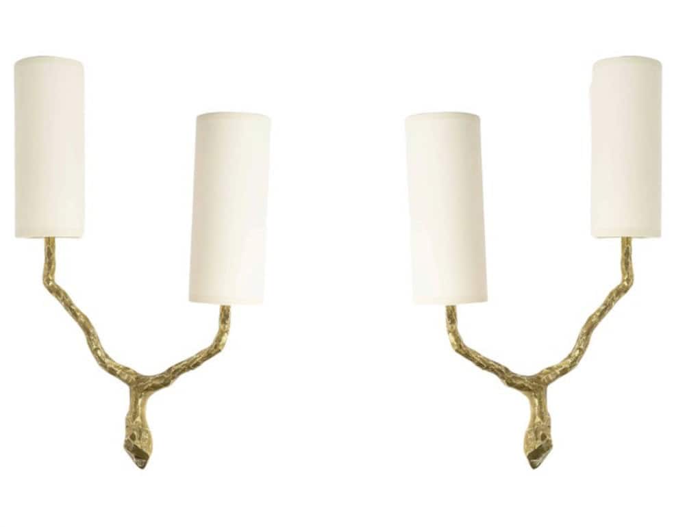 Composées d’une tige centrale inspirée d’une branche d’arbre, s’évasant et se séparant au sommet pour former deux branches lumineuses en bronze doré. Les deux bras lumineux en bronze doré.