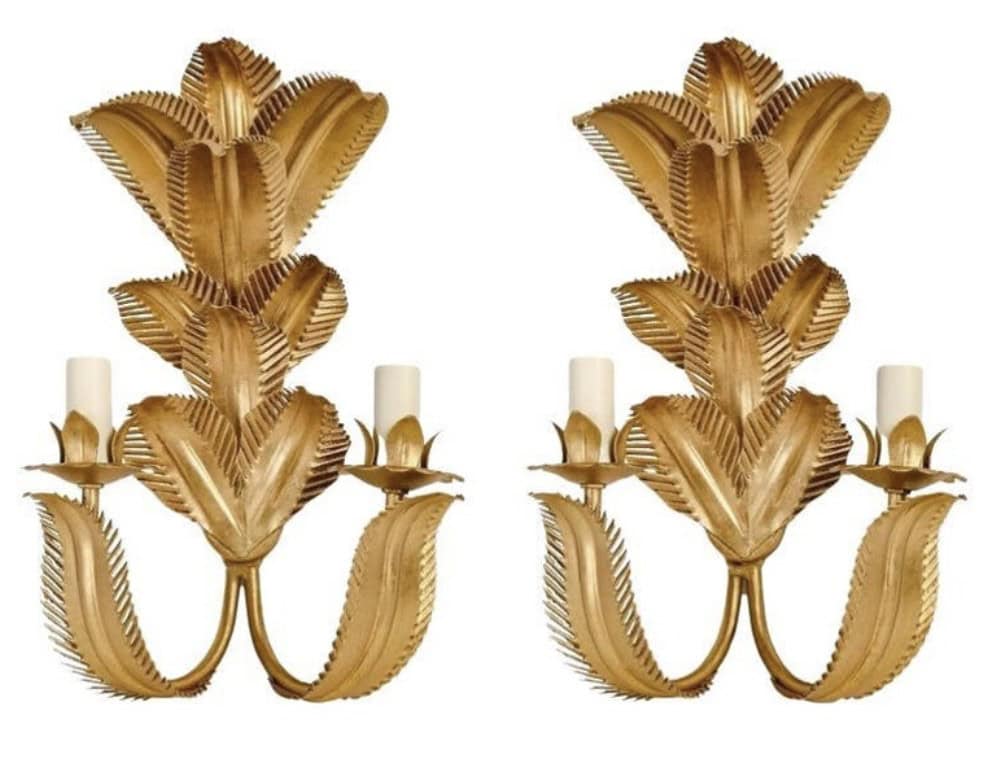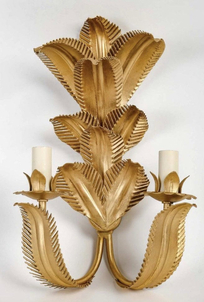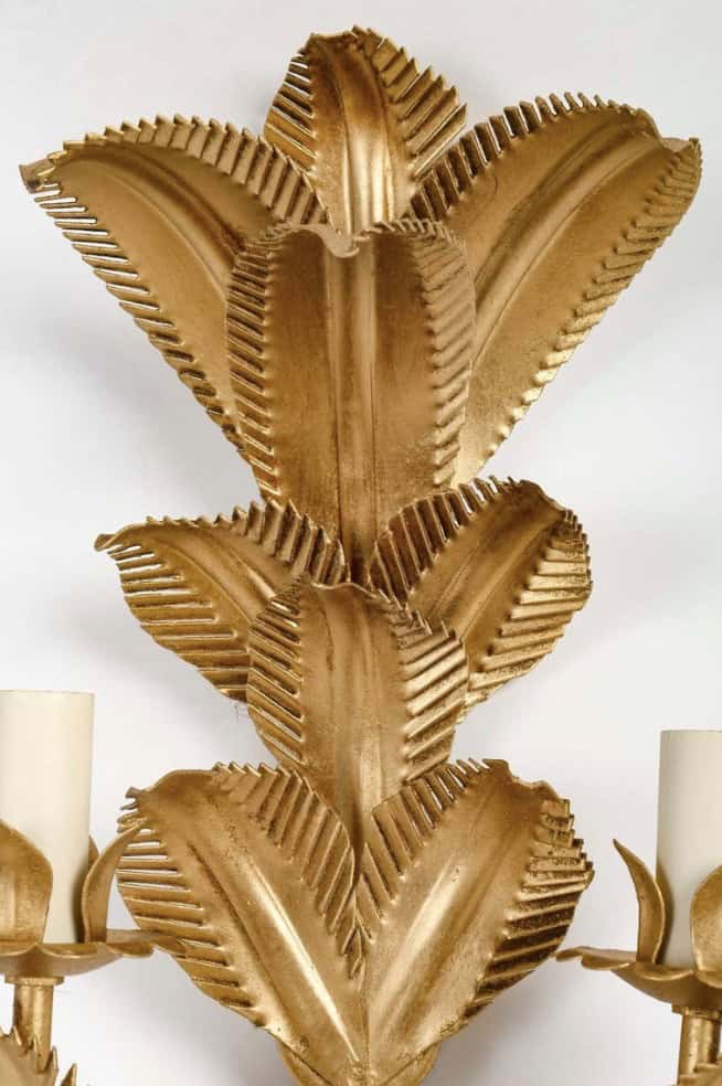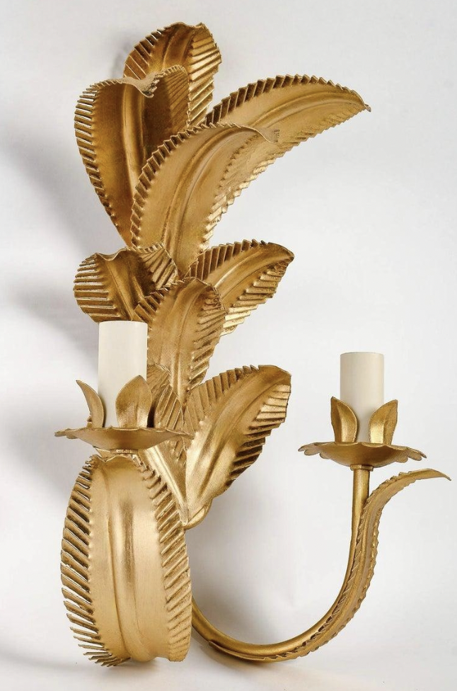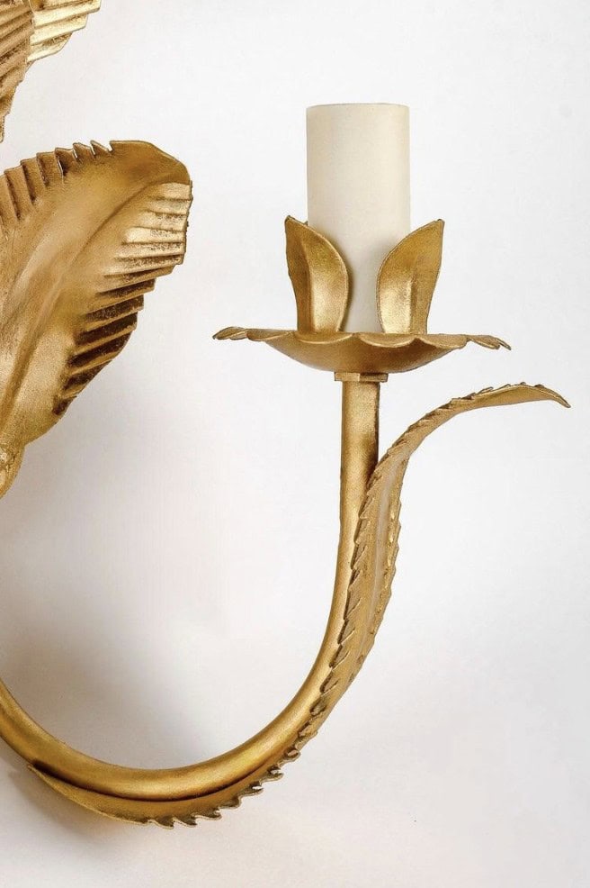 Composées de feuilles de palmier disposées à trois hauteurs différentes en métal doré formant le support mural.