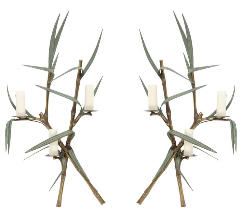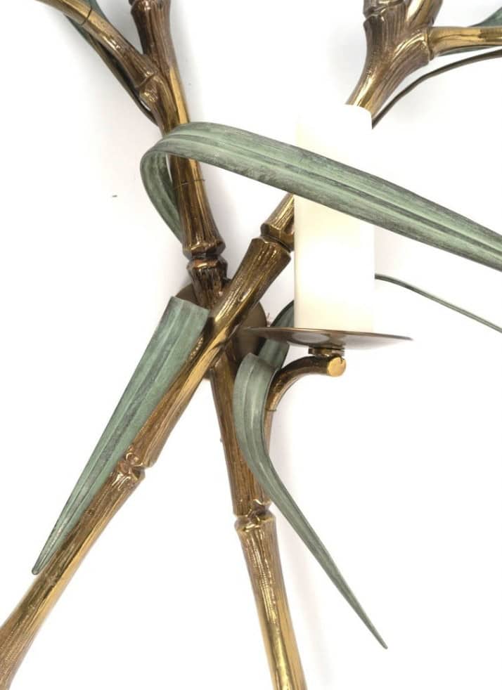 Paire rare d’appliques murales en bronze imitant le bambou par la Maison Charles, datant des années 1960/1970, signées
