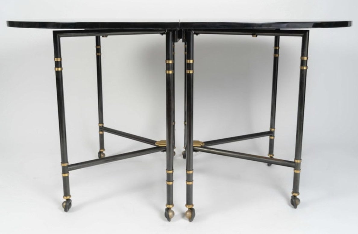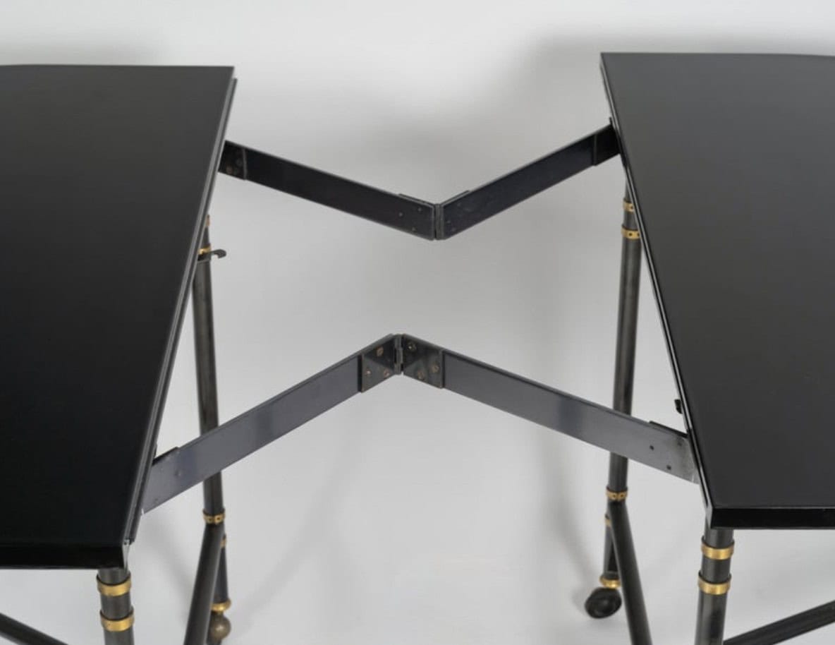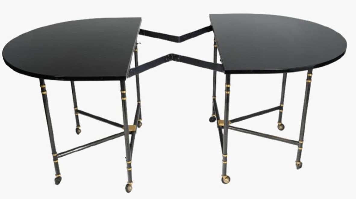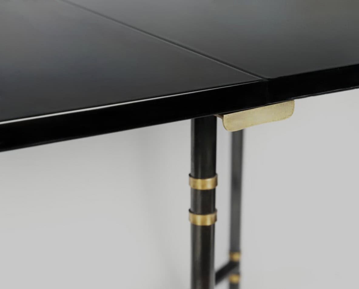 Table avec plateau et rallonge laqués noirs.
