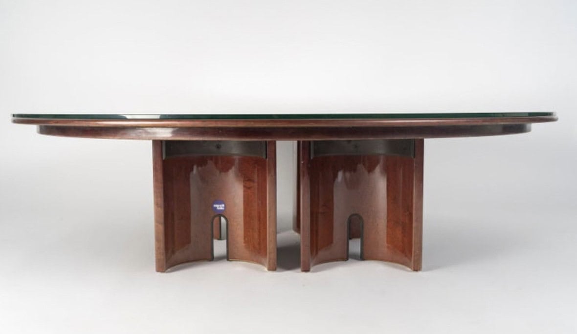 1980 Grande table basse par Giovanni Offredi pour Saporiti en placage d’érable moucheté.
