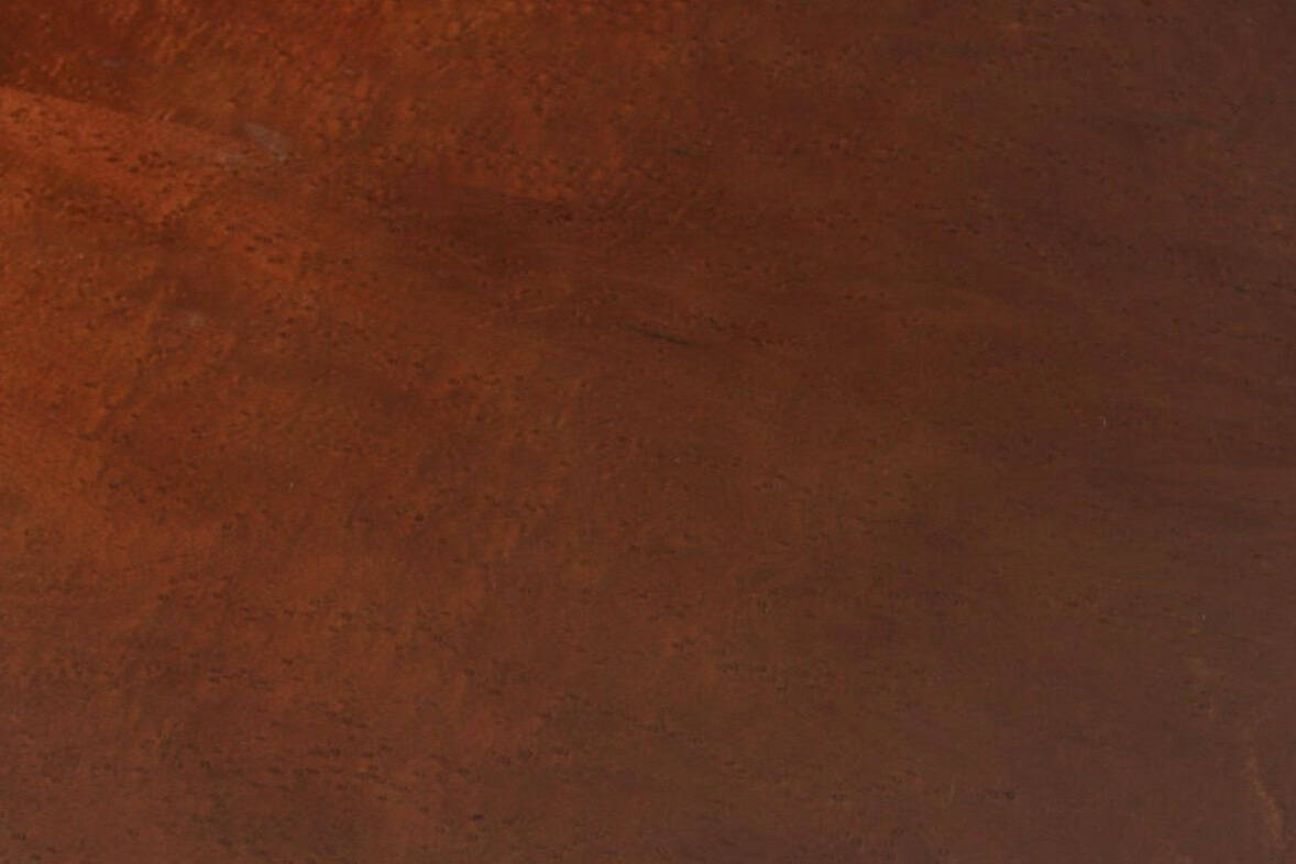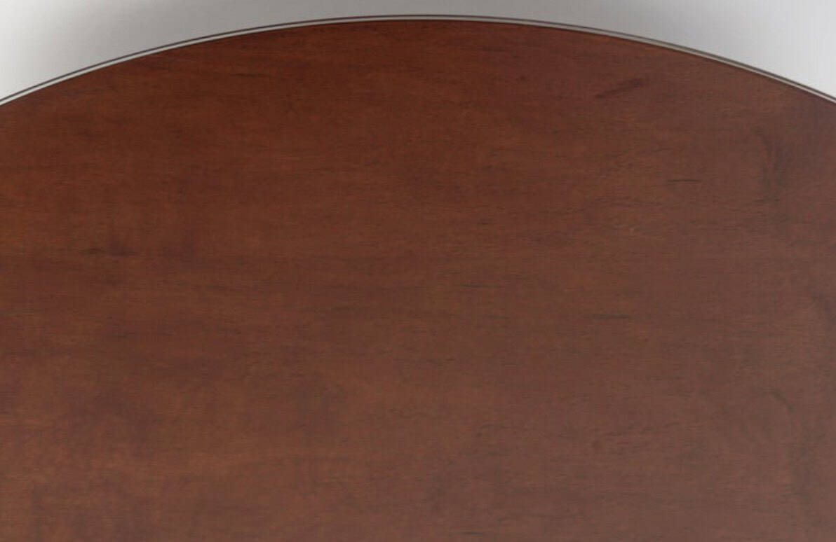 Composée d’un grand plateau en placage d’érable moucheté aux bords arrondis.