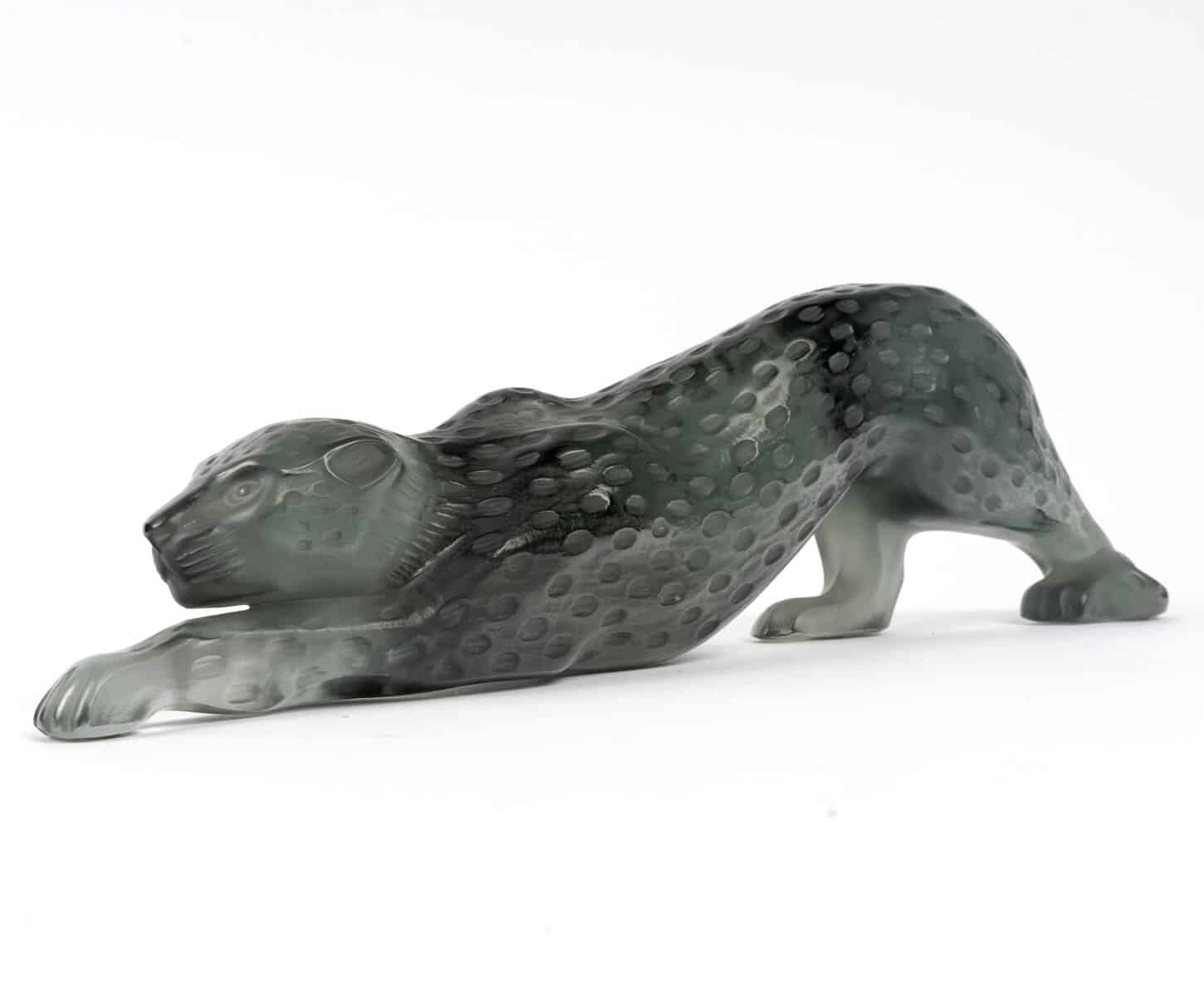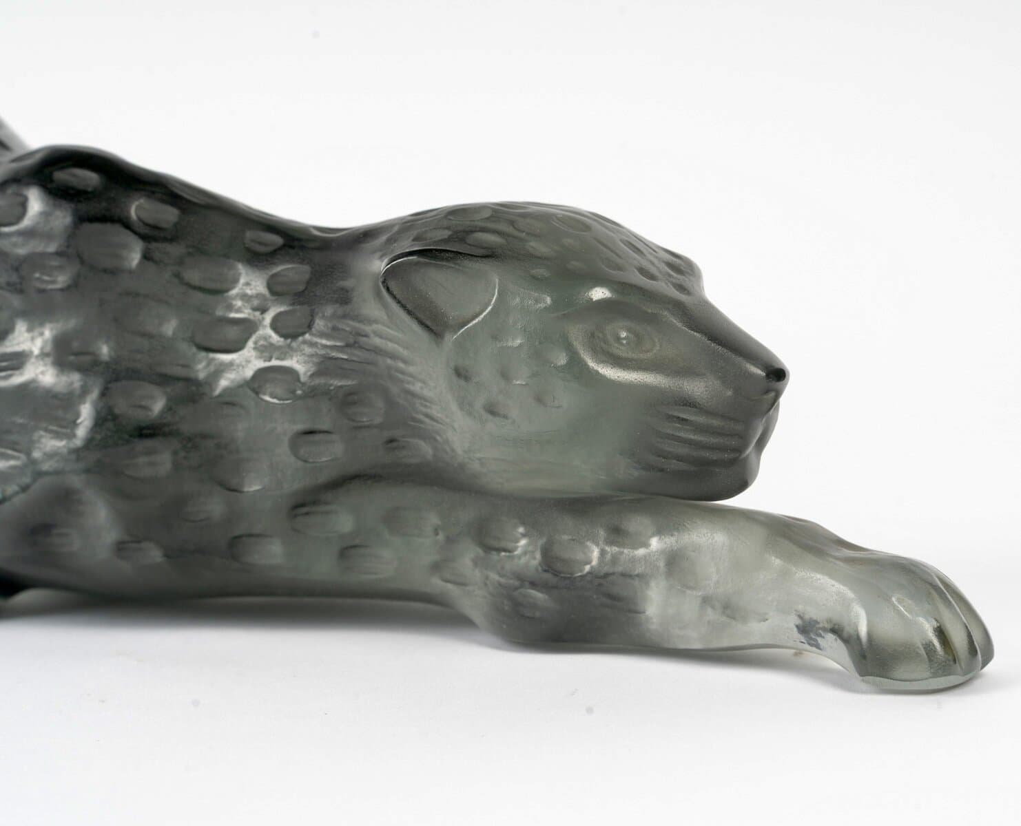Sculpture « Panthère Zeila » en cristal gris créée par Marie-Claude Lalique en 1990.