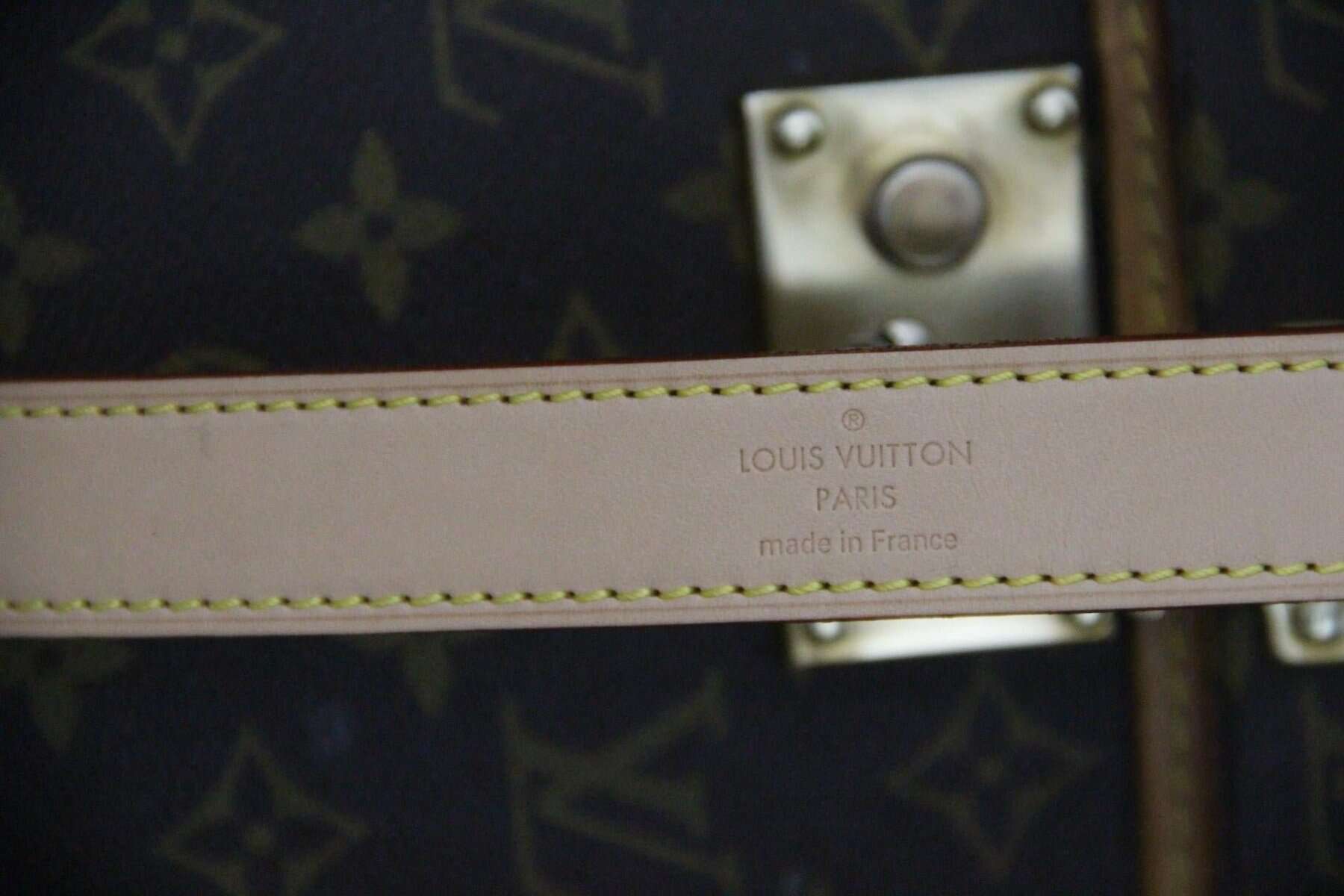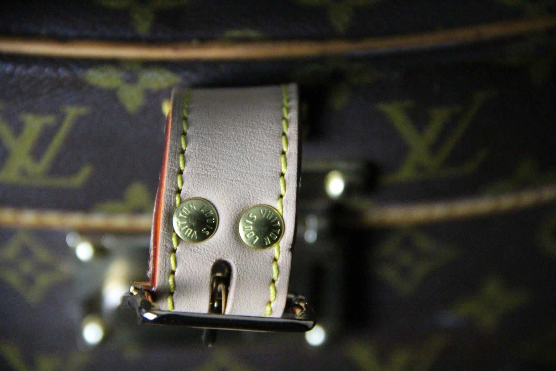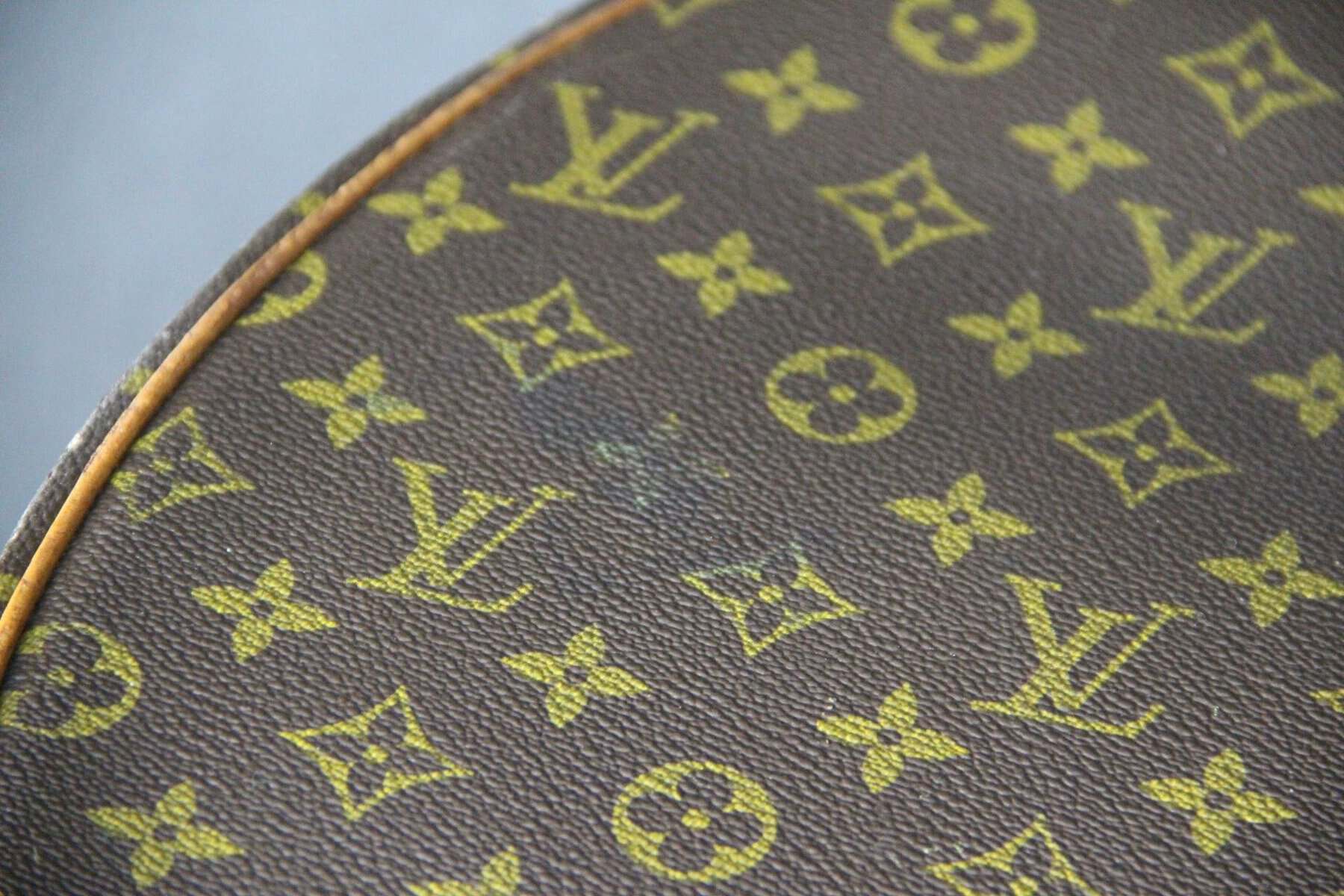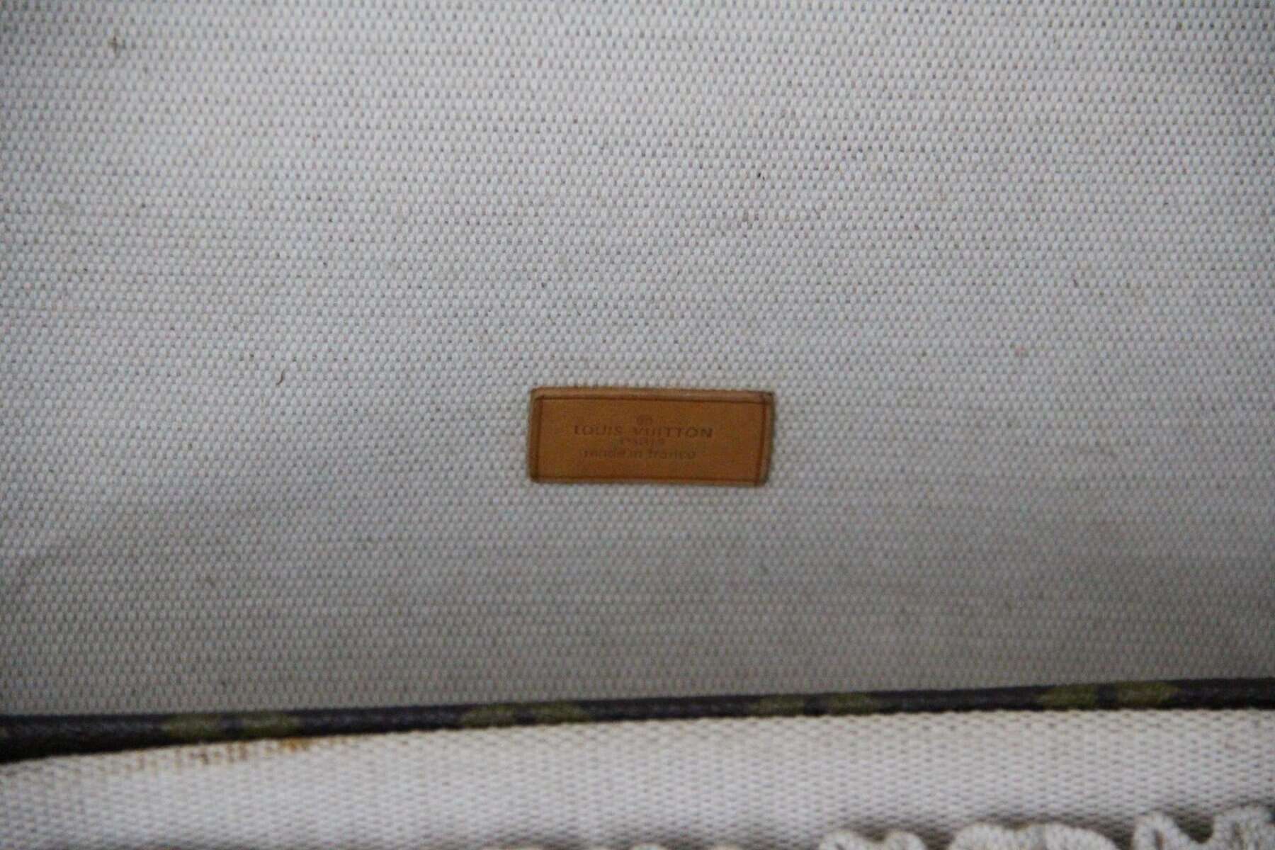 État : Bon état d’usure conforme à l’âge et à l’utilisation. Veuillez noter que sa bandoulière en cuir a été refaite récemment par Louis Vuitton, ainsi que les coutures à l’arrière. Son état est correct, mais veuillez noter que, comme le montrent les photos, sa surface supérieure est légèrement ondulée.