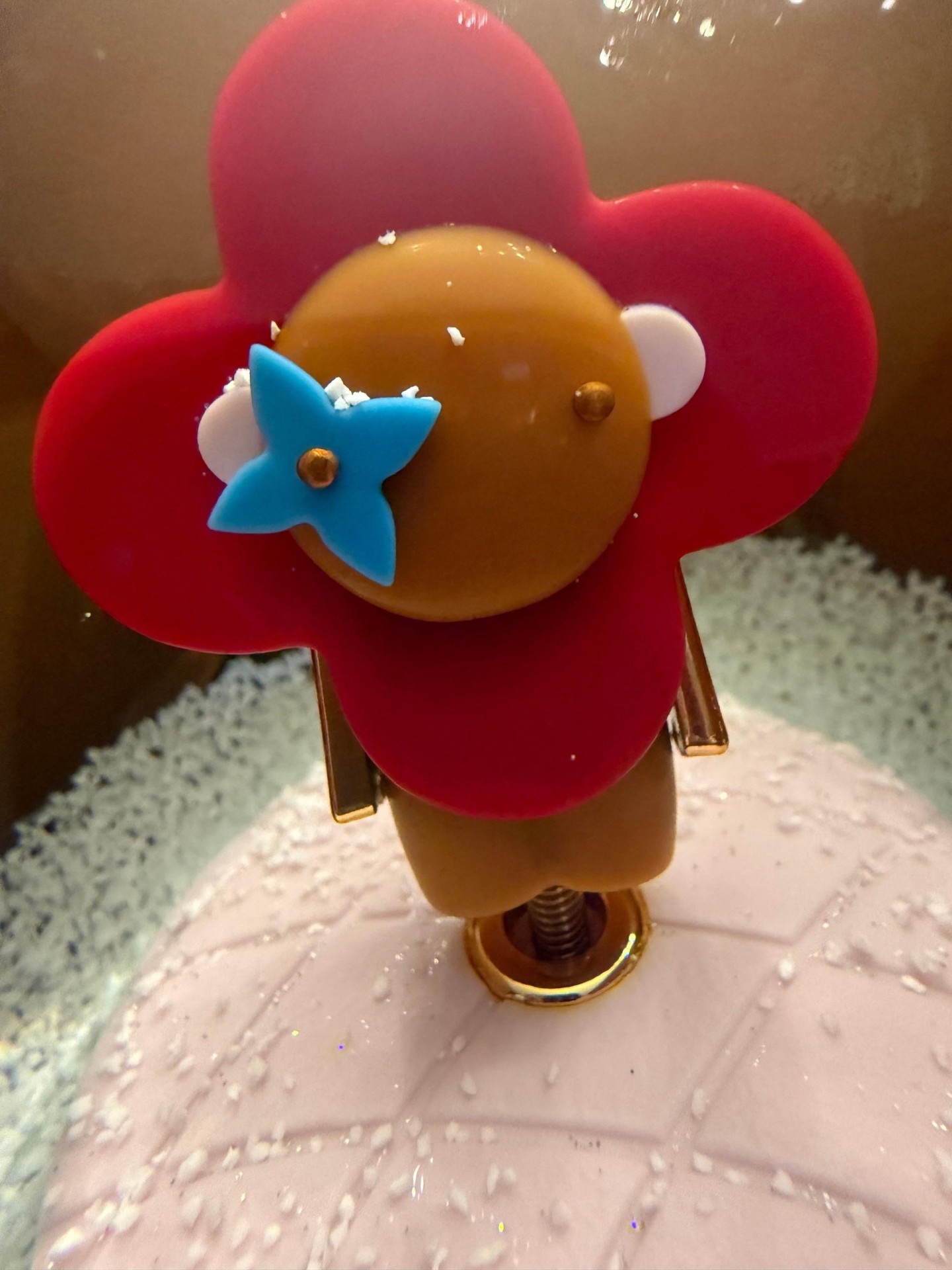 Elle a été utilisée comme objet de décoration, accessoire de sac, puis même comme icône de la haute joaillerie. Cette boule à neige Louis Vuitton Vivienne Doll avec boîte à musique est un objet luxueux et de collection. Elle est vêtue d’une tenue marron et rouge, avec des flocons de neige qui virevoltent tout autour pour ajouter une touche poétique. Cette boule repose sur une malle monogrammée Vuitton. Elle est dotée de coins et d’une serrure dorés. Pour remonter la boîte à musique, il suffit de tourner un bouton en forme de fleur LV. La boîte à musique ajoute une touche de magie, ce qui en fait un cadeau unique et ravissant. Elle apporte une touche élégante et raffinée à tout décor intérieur.