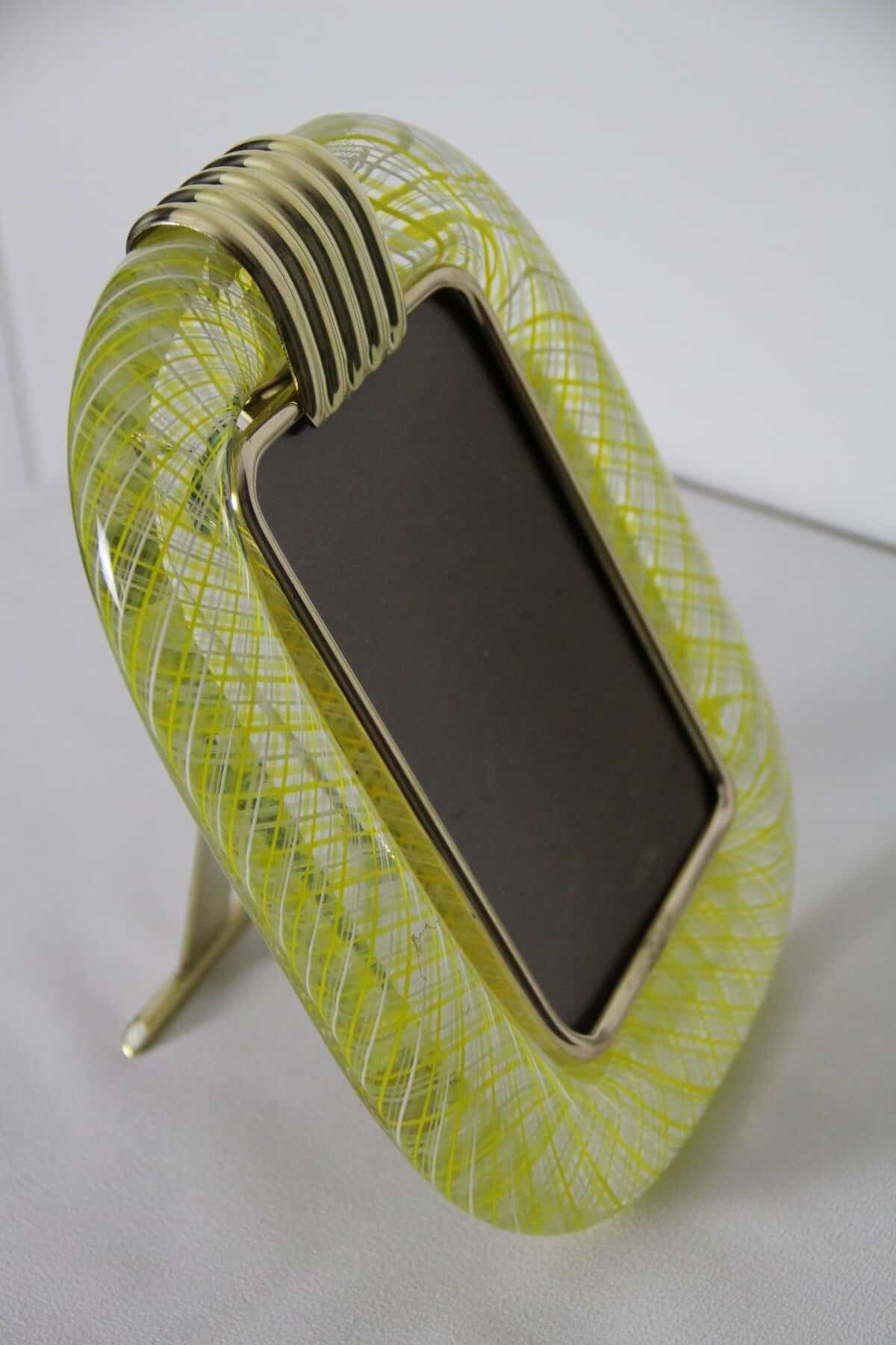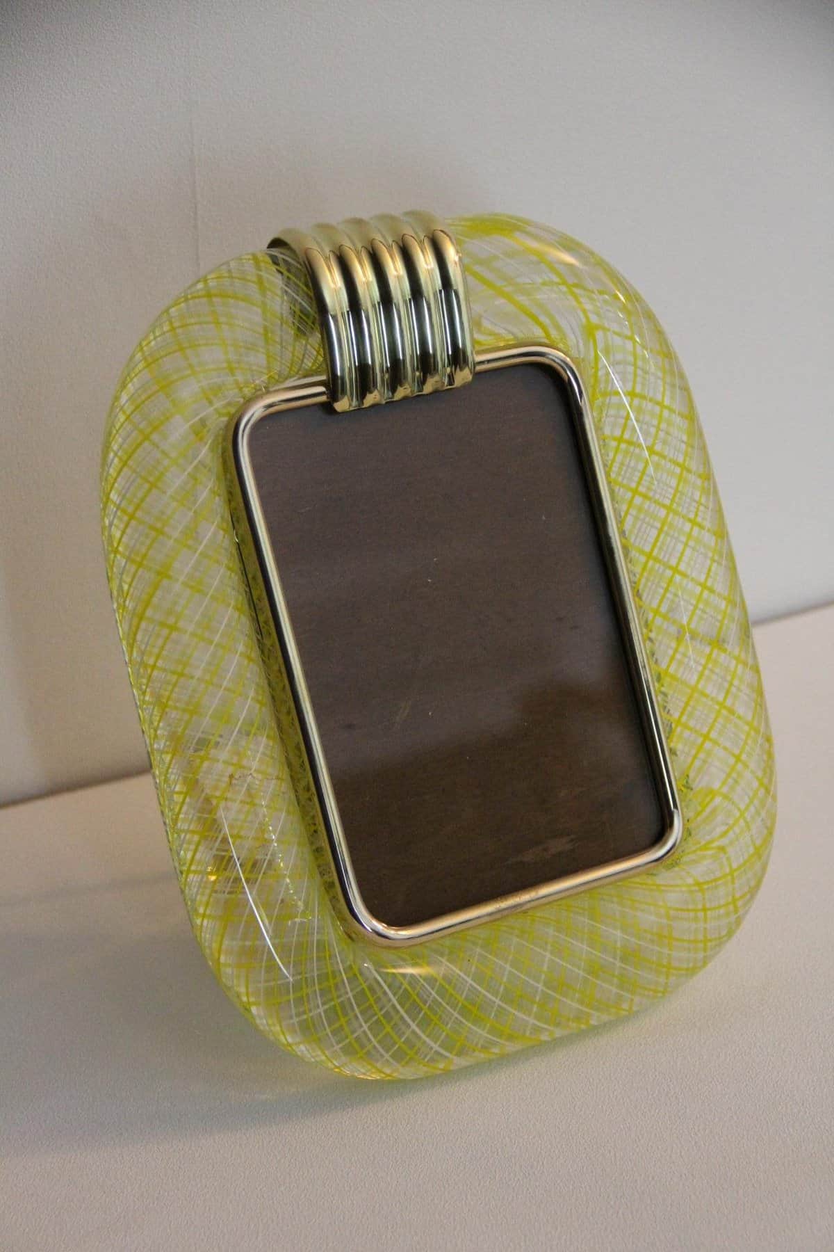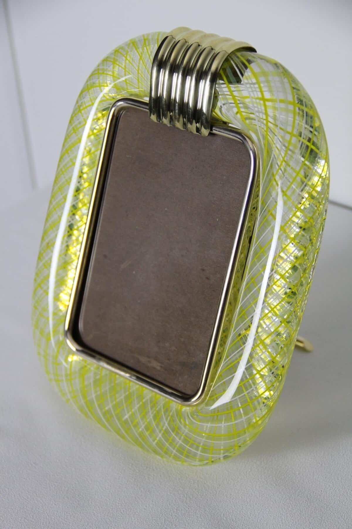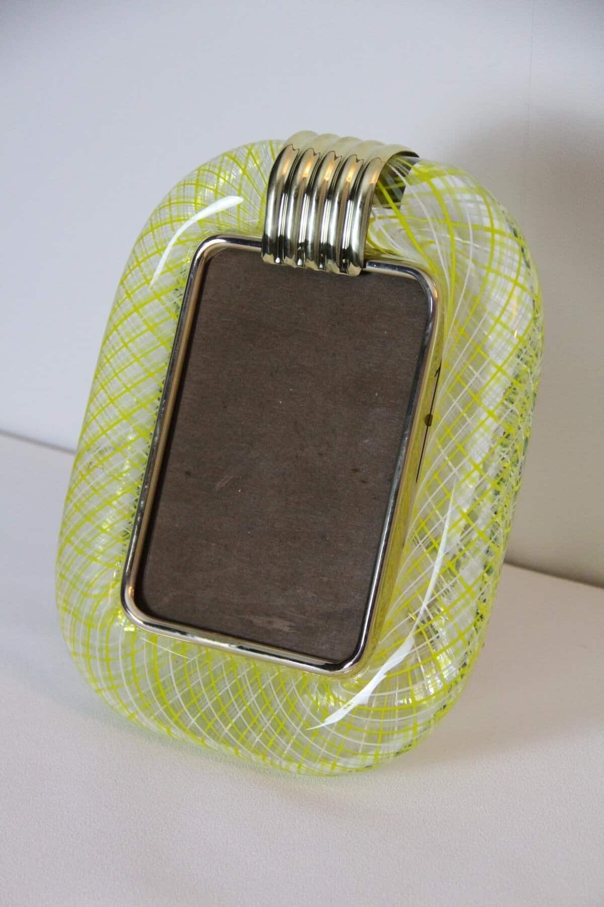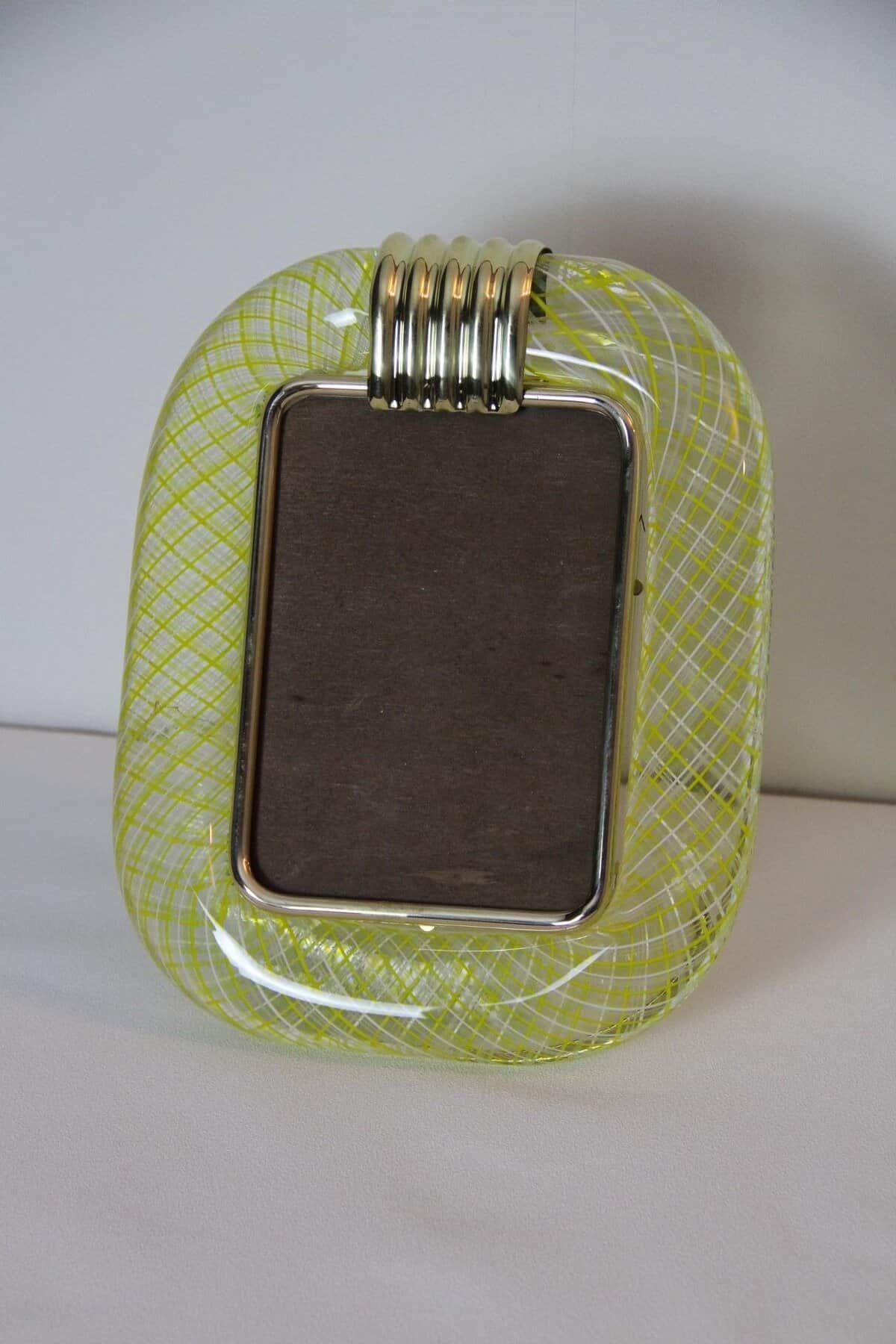 Cadre en verre de Murano jaune en filigranes