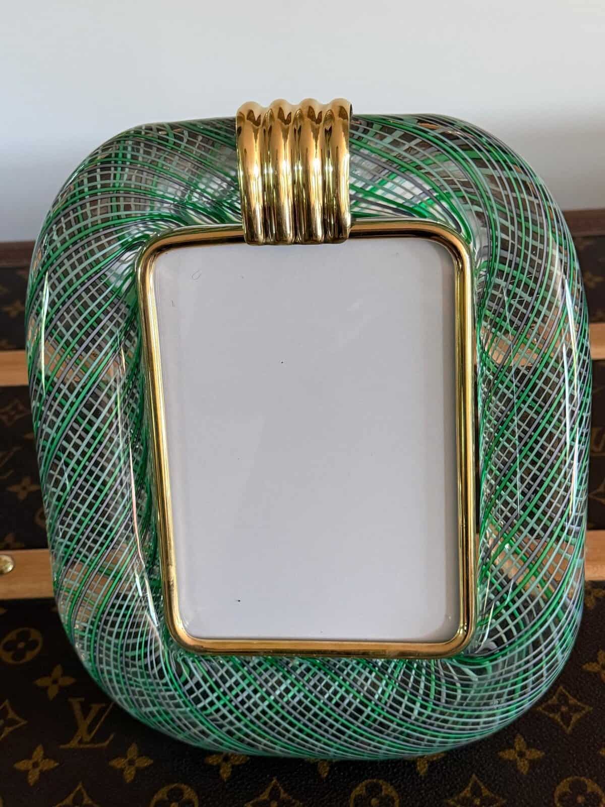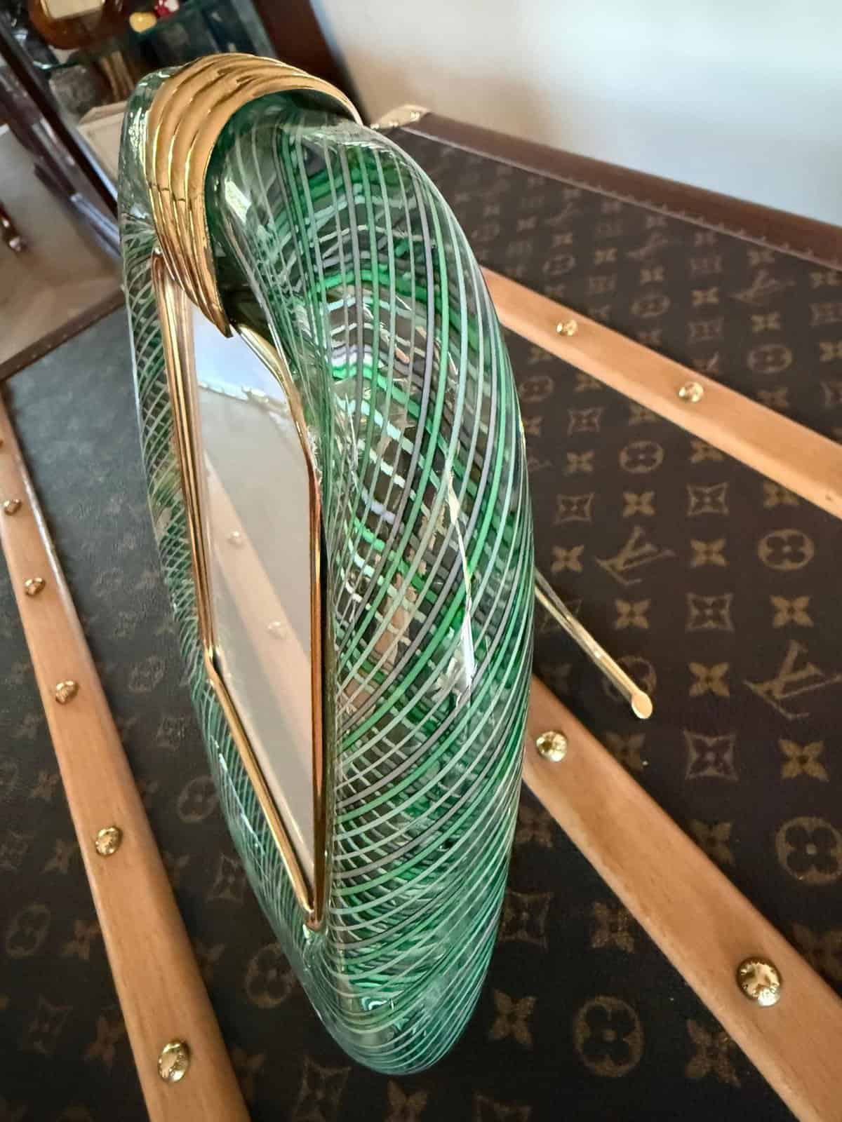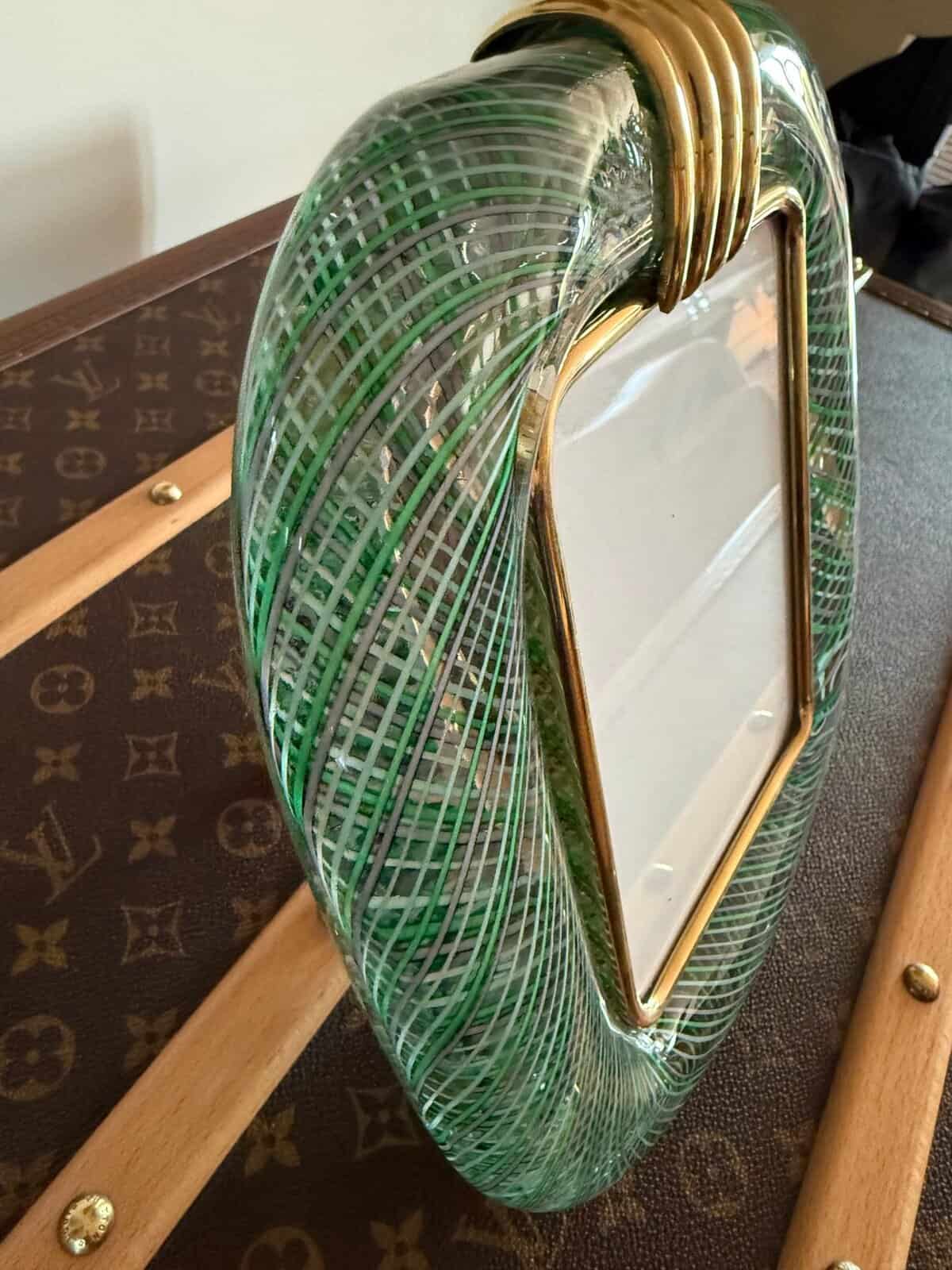 Cadre en verre de Murano vert clair filigrane