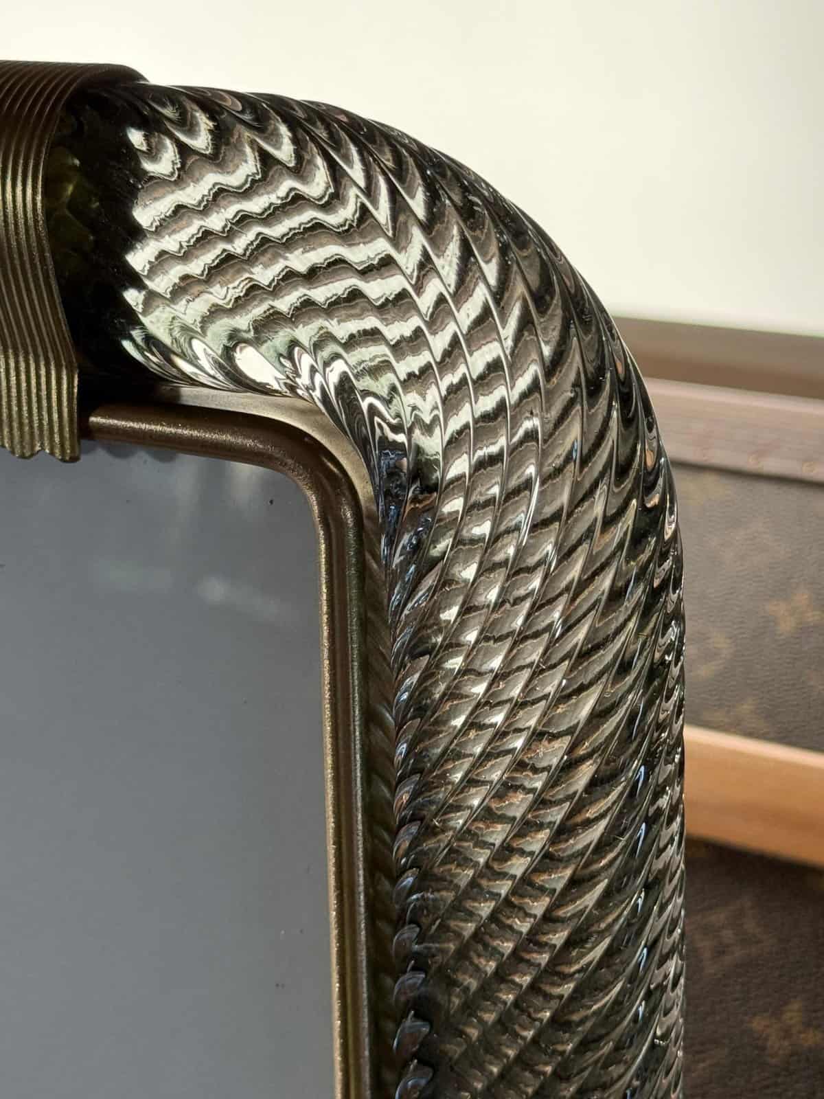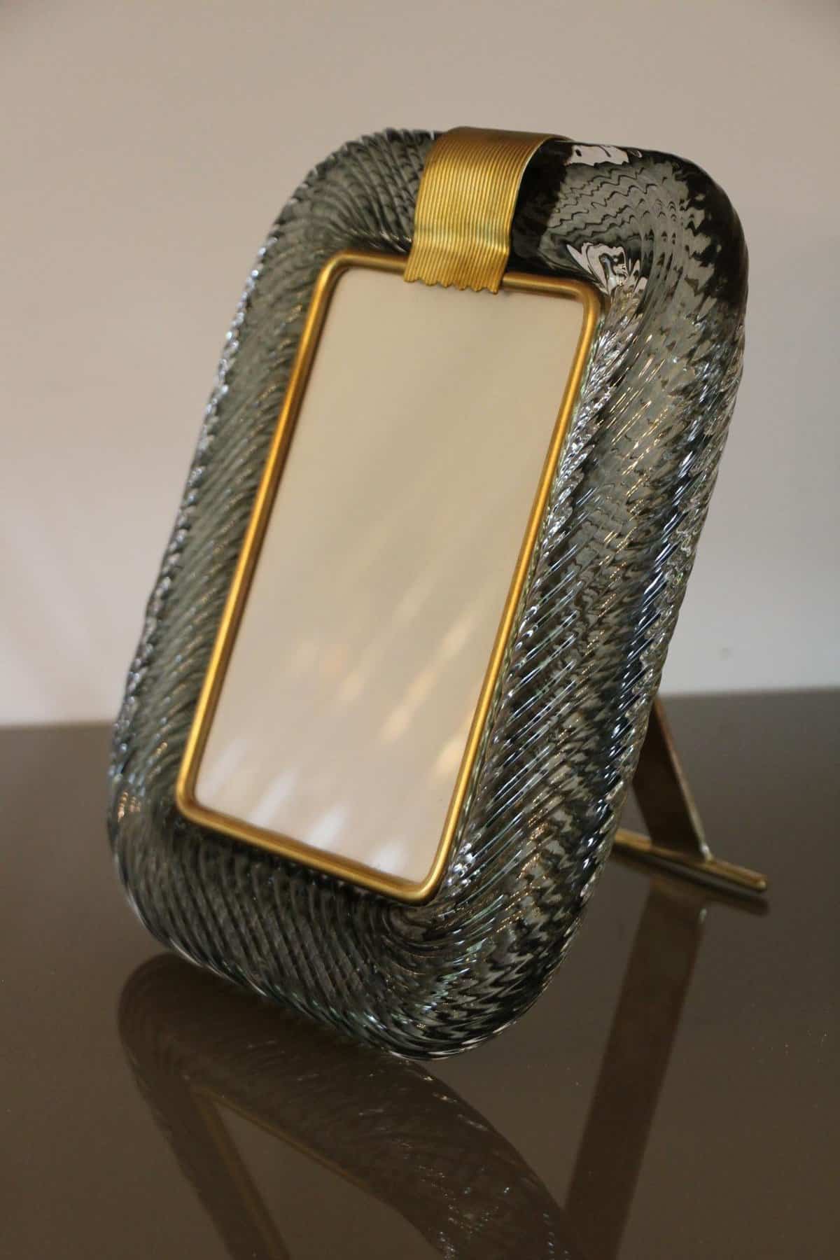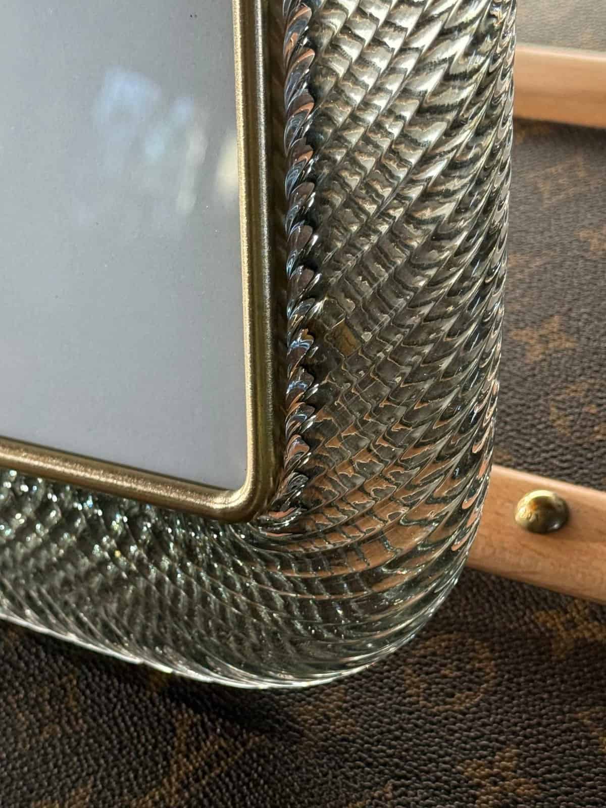 Ce magnifique cadre photo vertical est purement dans la tradition de la fabrication du verre vénitien. La technique utilisée pour obtenir ce riche effet de corde torsadée est appelée « torciglione » et requiert des artisans hautement qualifiés.