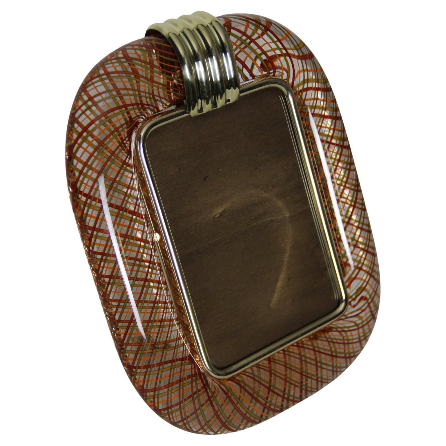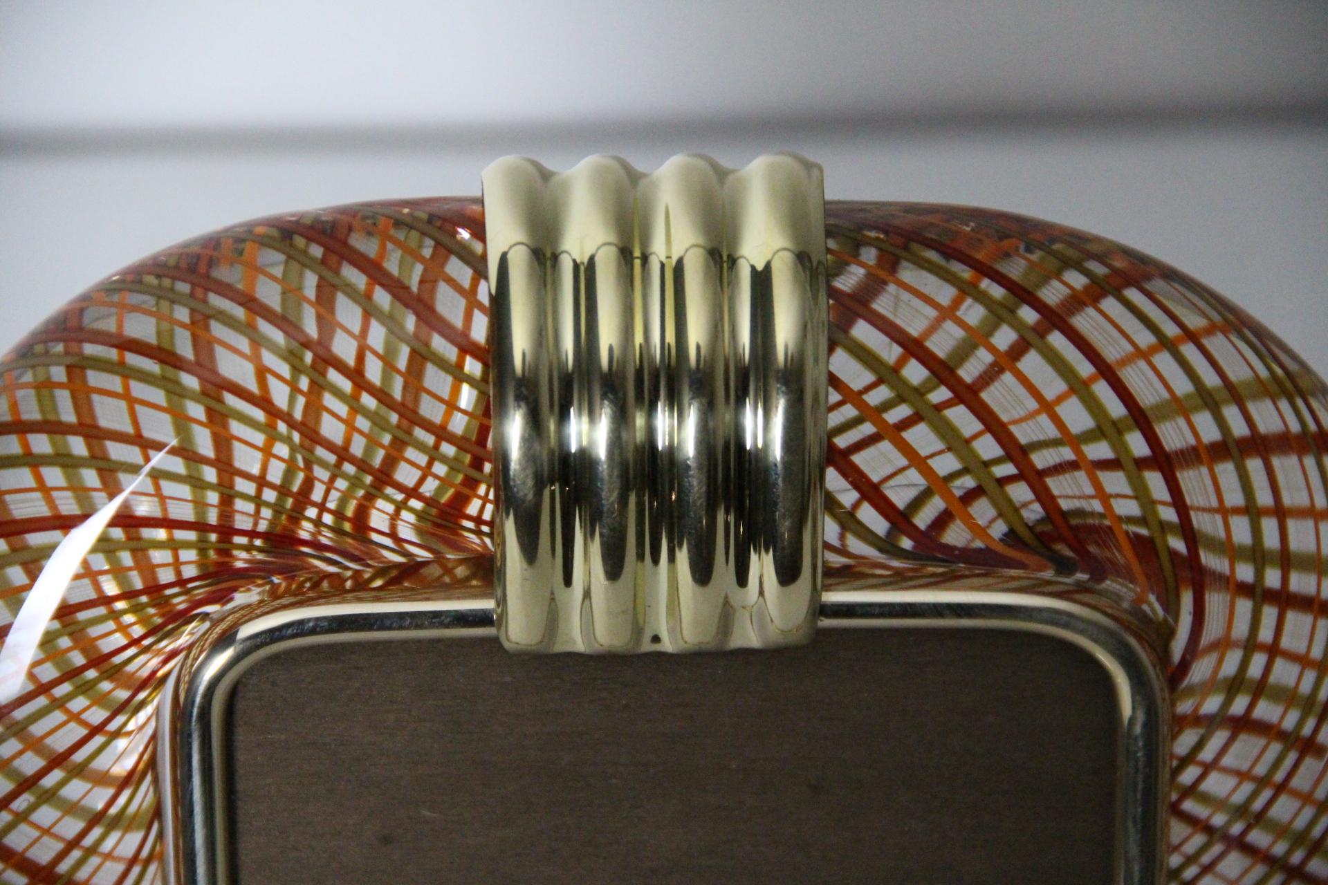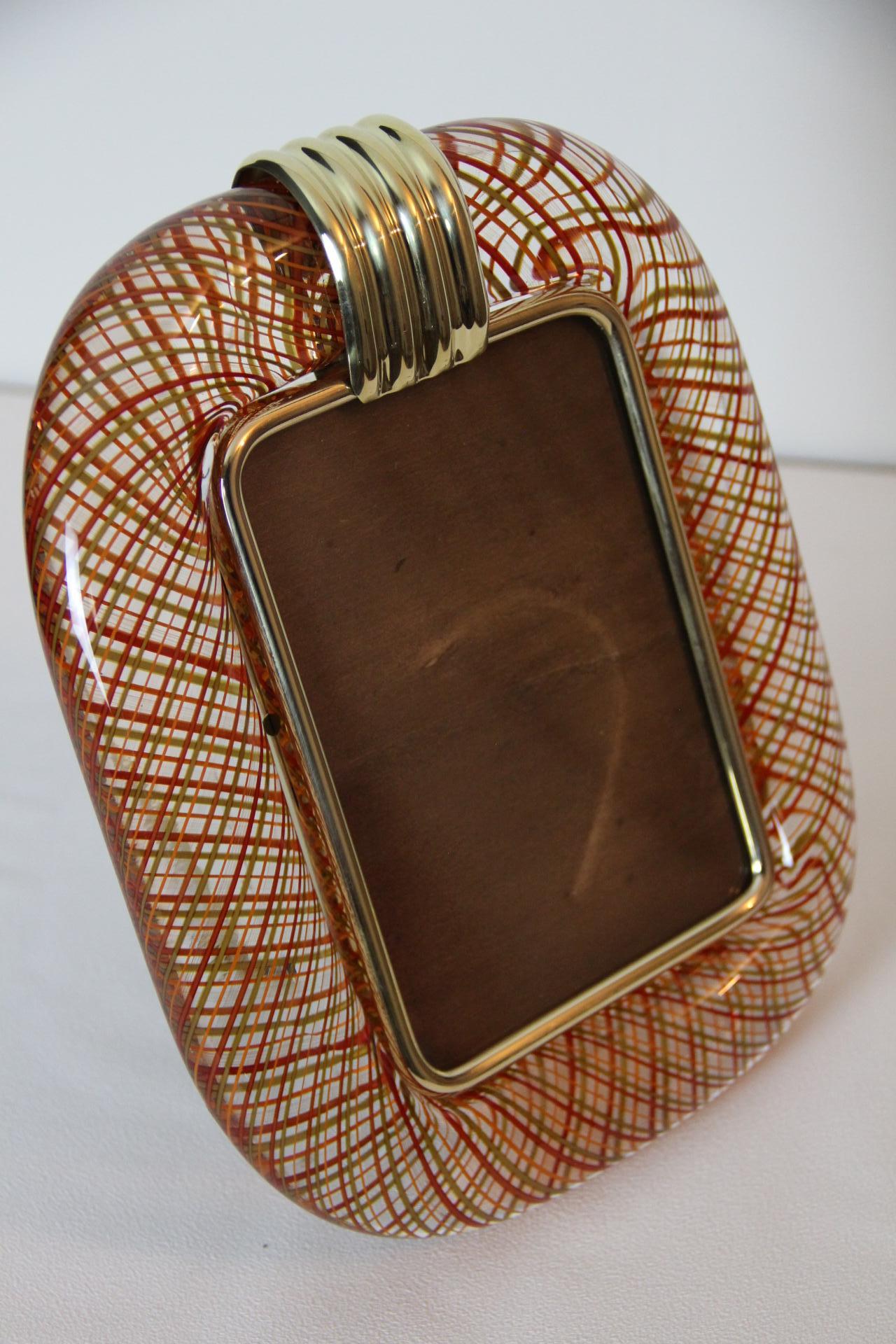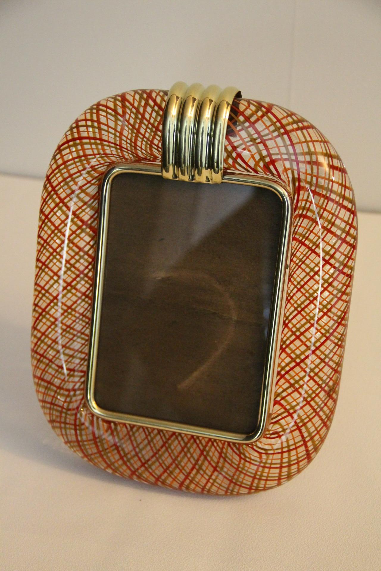Cadre photo Venini verre de Murano rouge filigrané