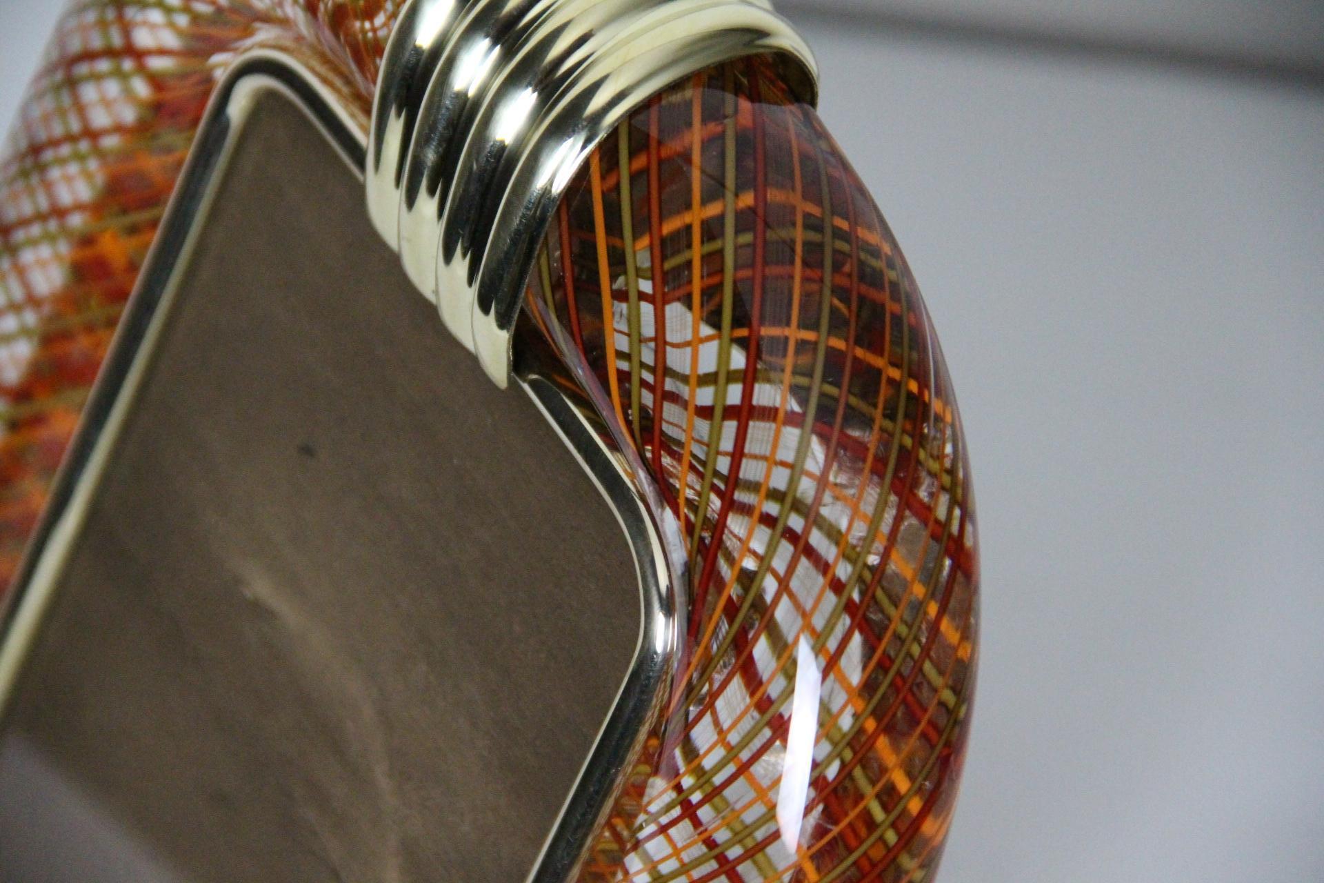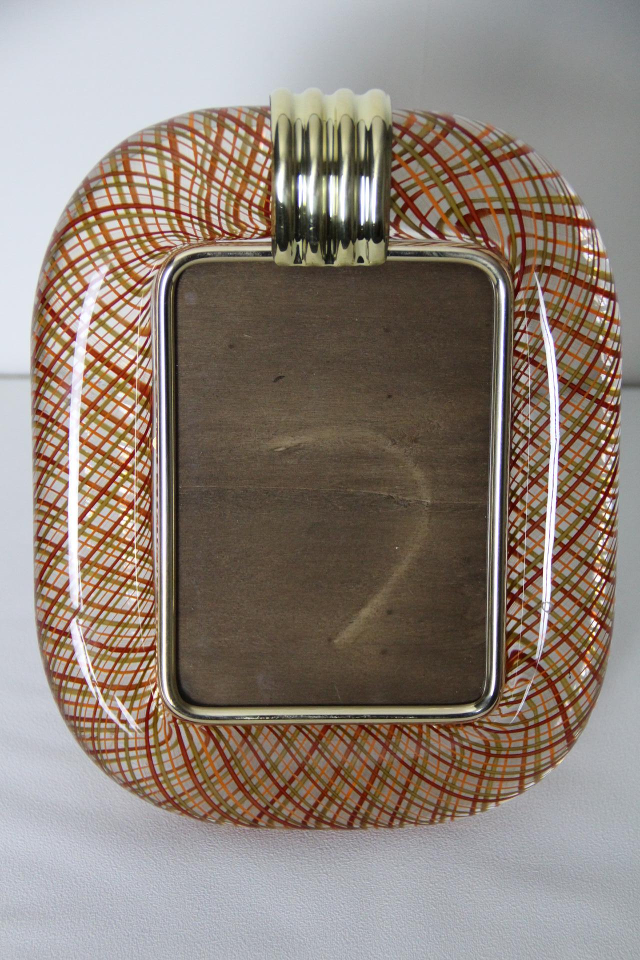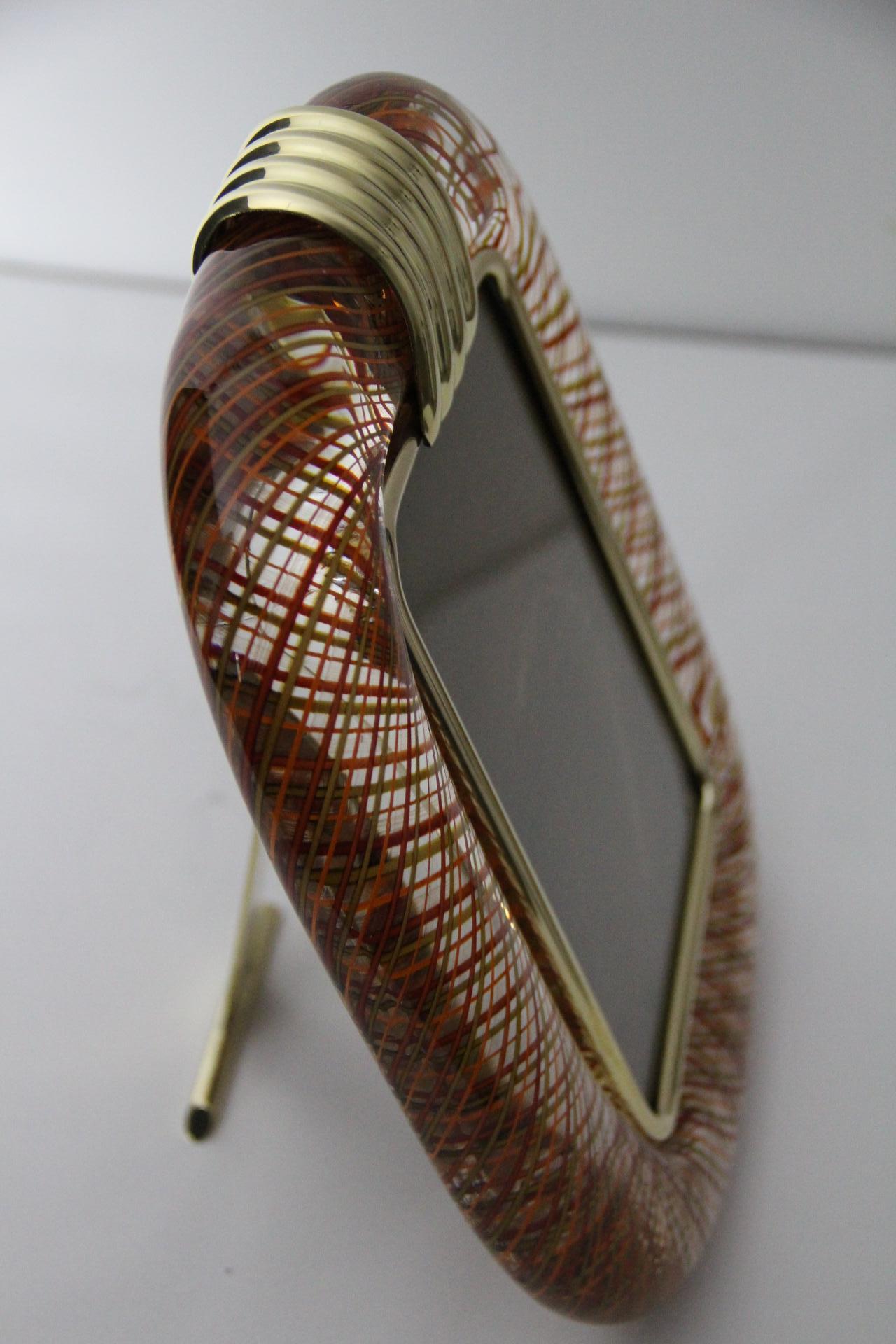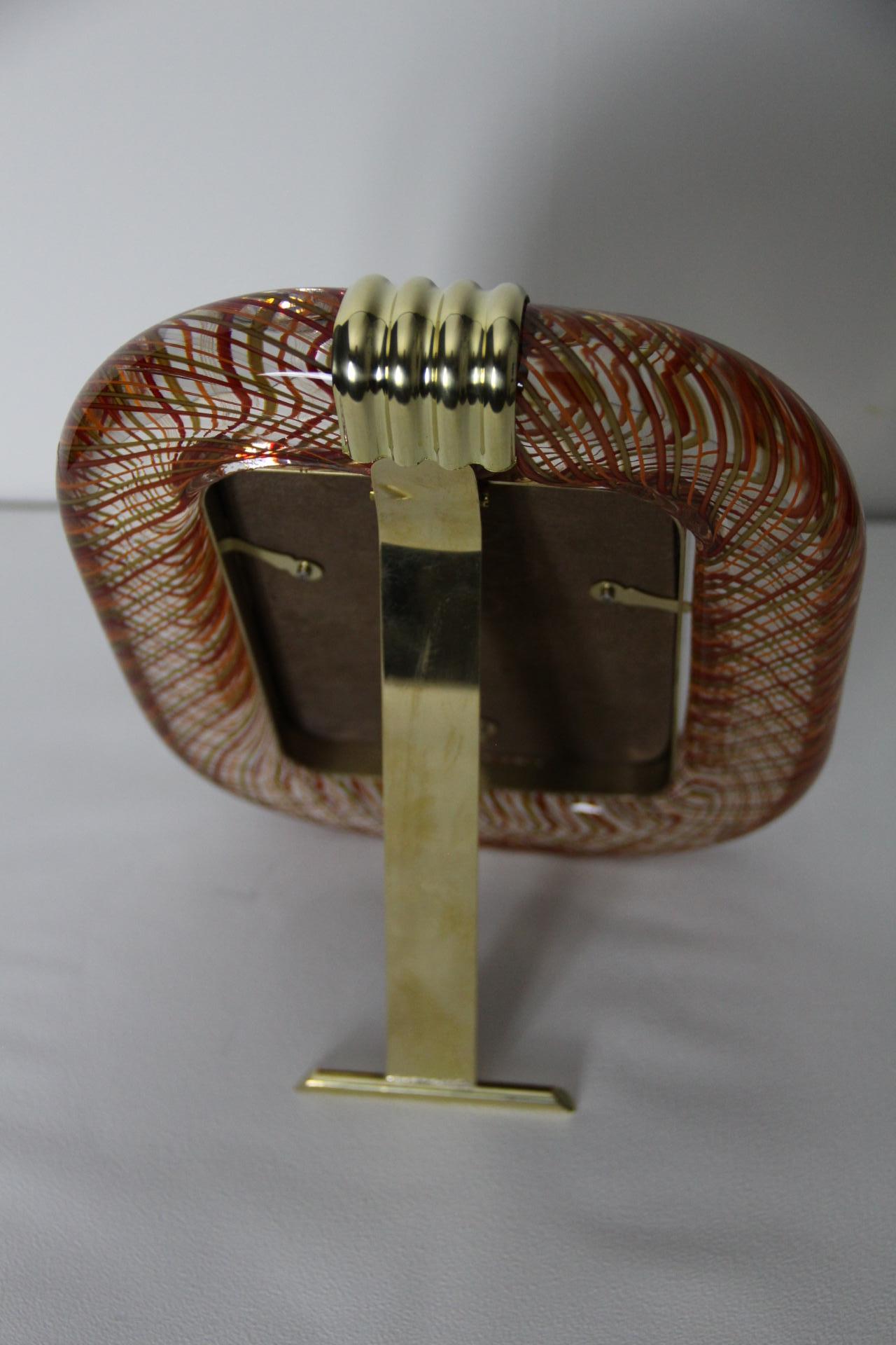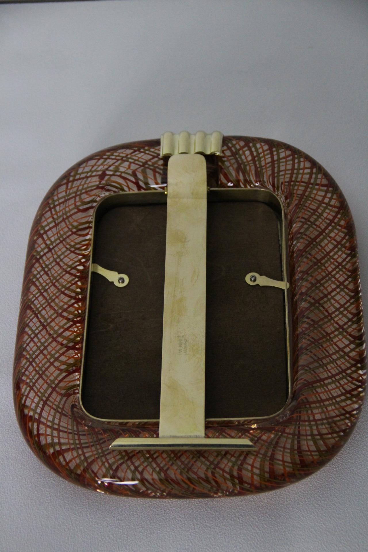 Cadre photo Venini verre de Murano rouge filigrané