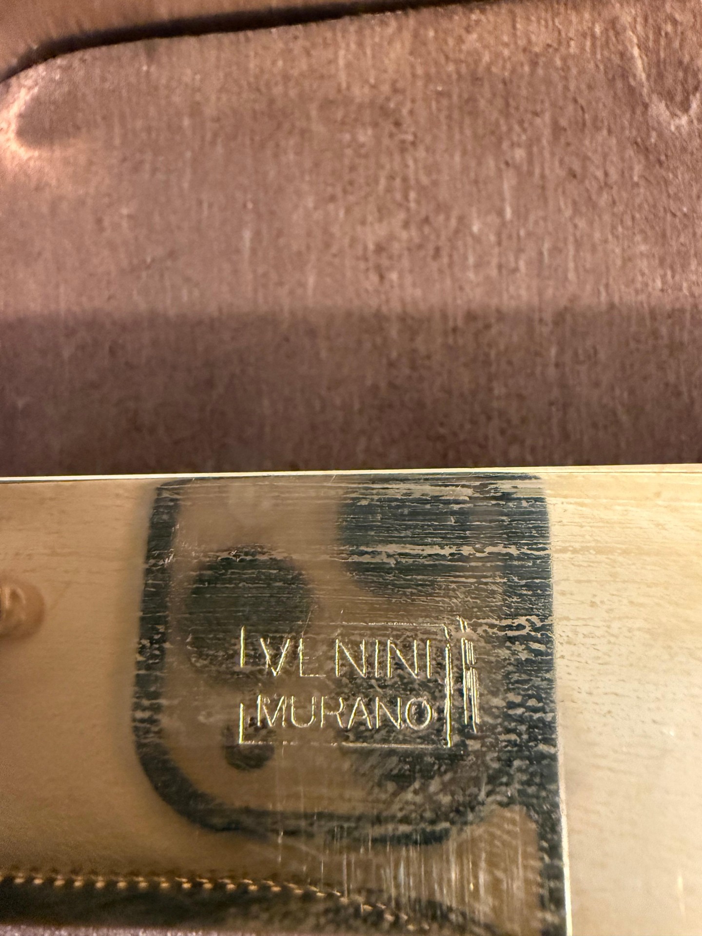 Matériaux et techniques : Verre d’art, Verre brun, Laiton, Verre de Murano, Fait main