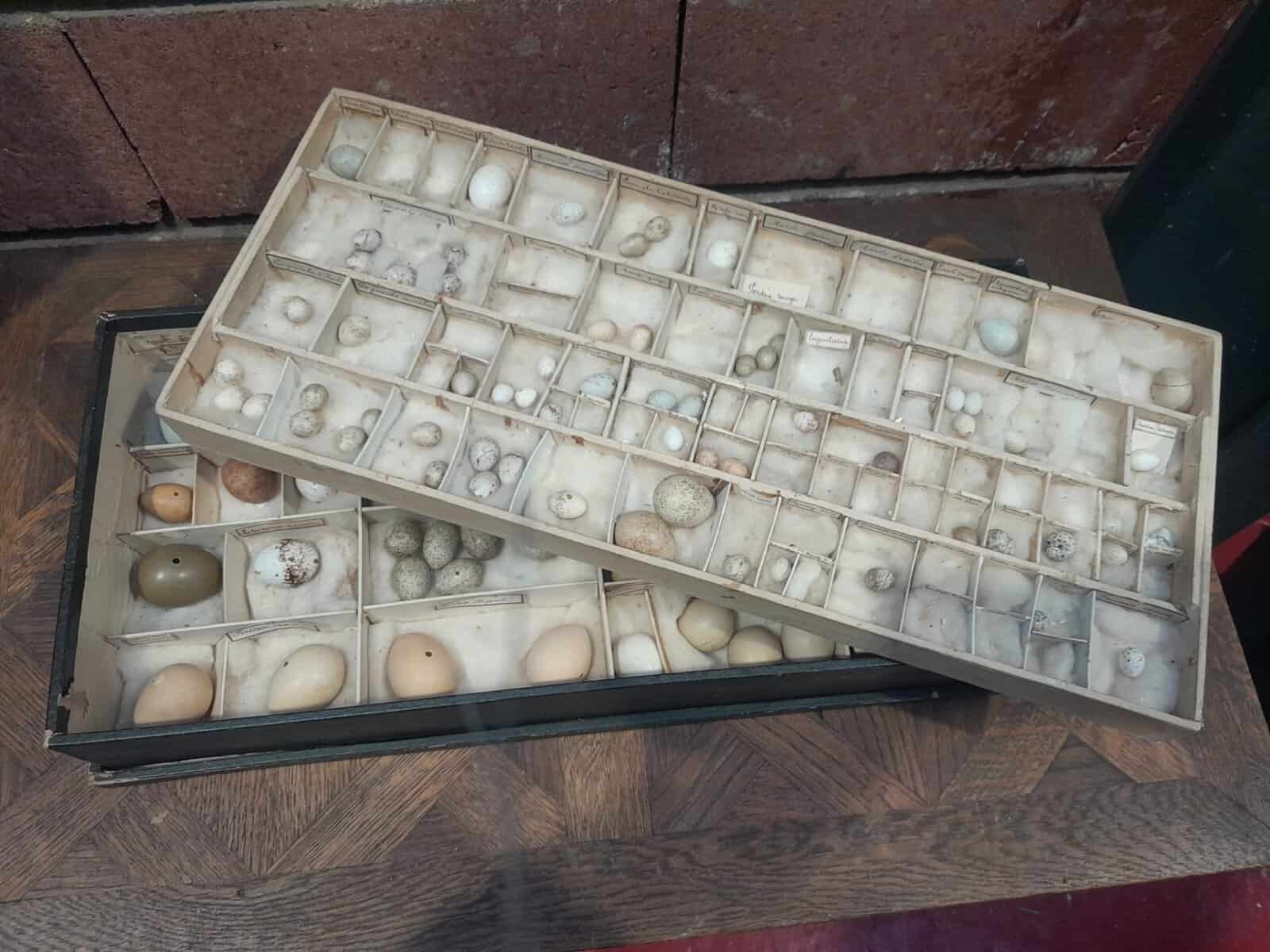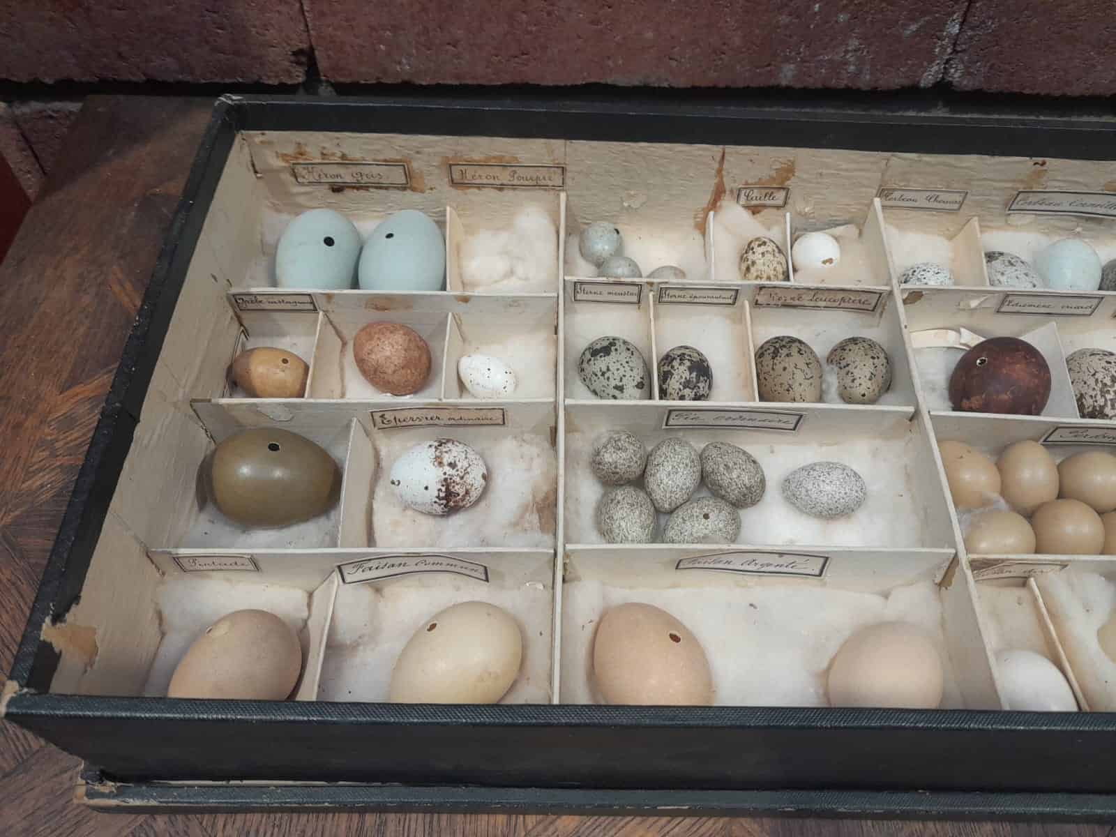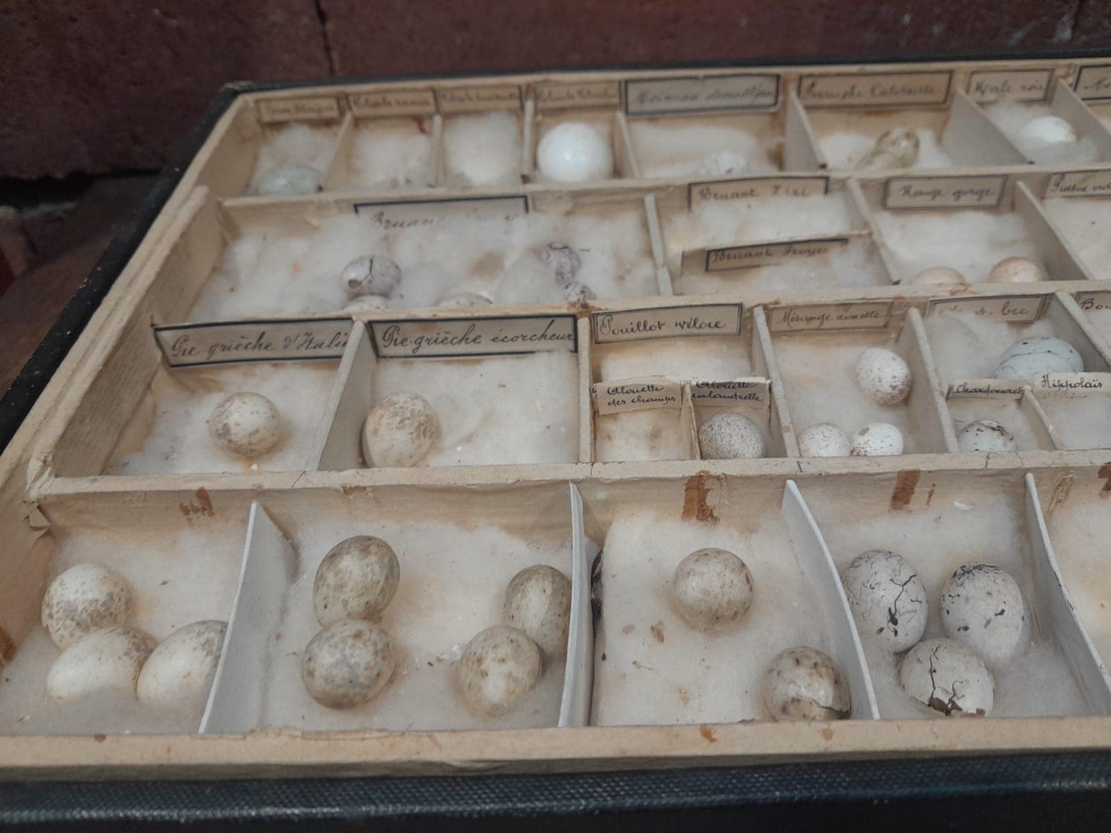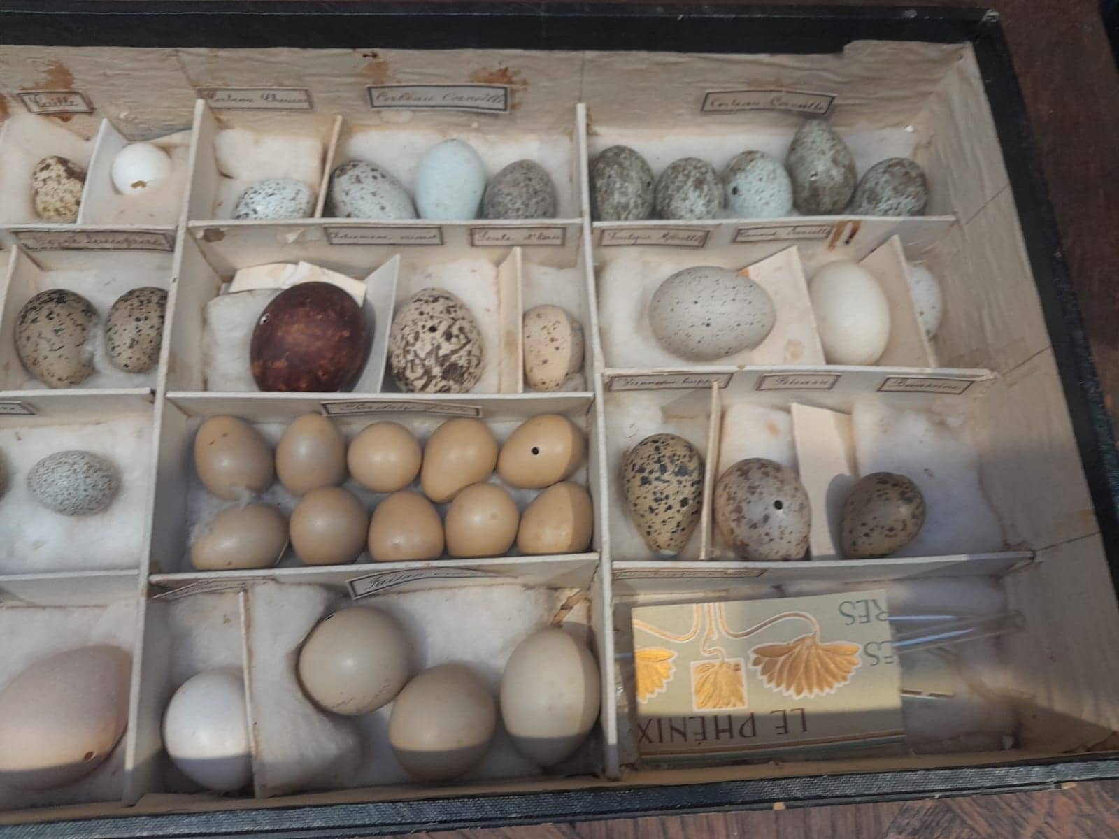 Certains casiers sont vides, dû la fragilité des oeufs, mais 64 espèces d’oiseaux différentes et etiquetées restent intactes.